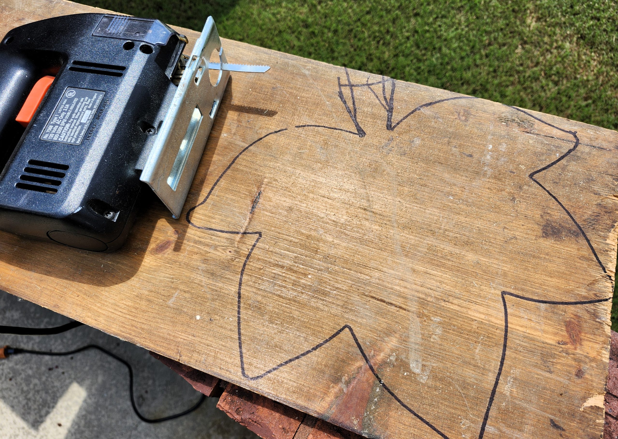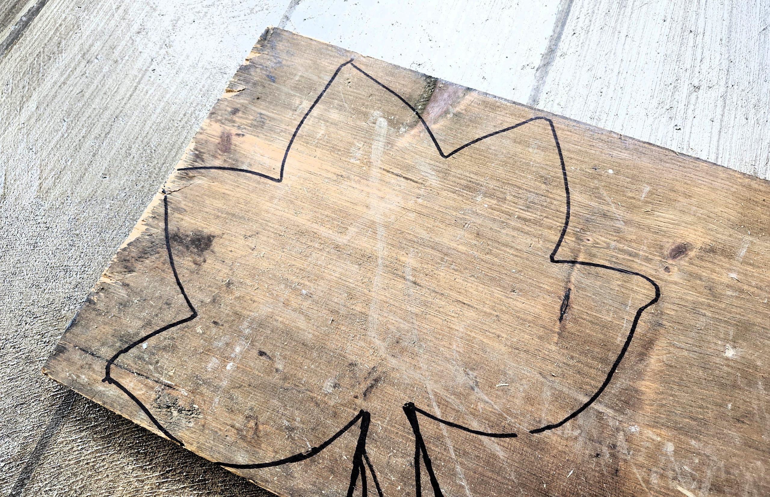 Next, cut the shape out with a bandsaw or jig saw, since this leaf has so many points, be sure to make relief cuts for easy cutting.