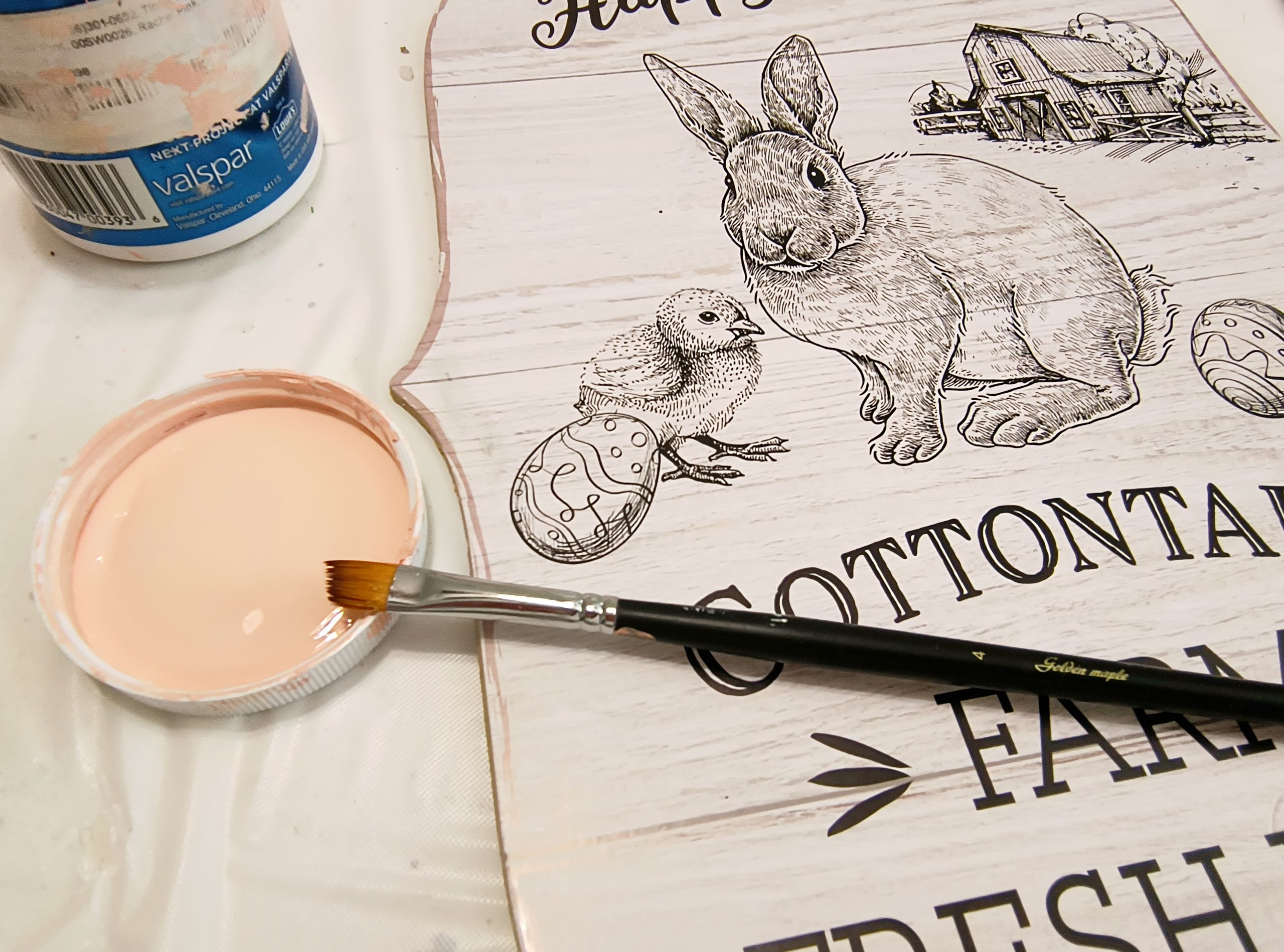Found the cute bunnies in Burke’s Outlet, painting the bottoms pink, of course.