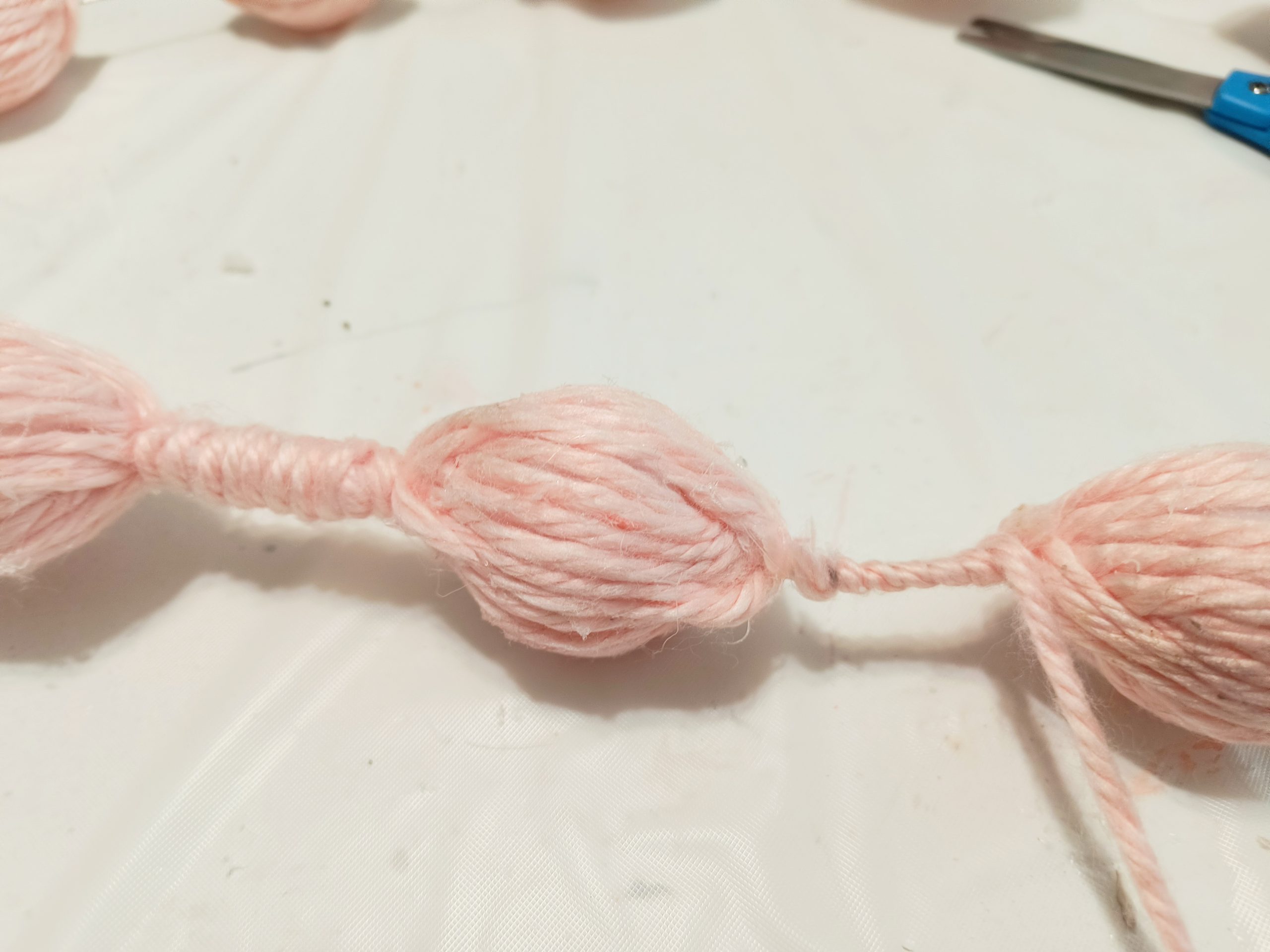 4.  Wrapping the chunky yarn around each ball using hot glue.