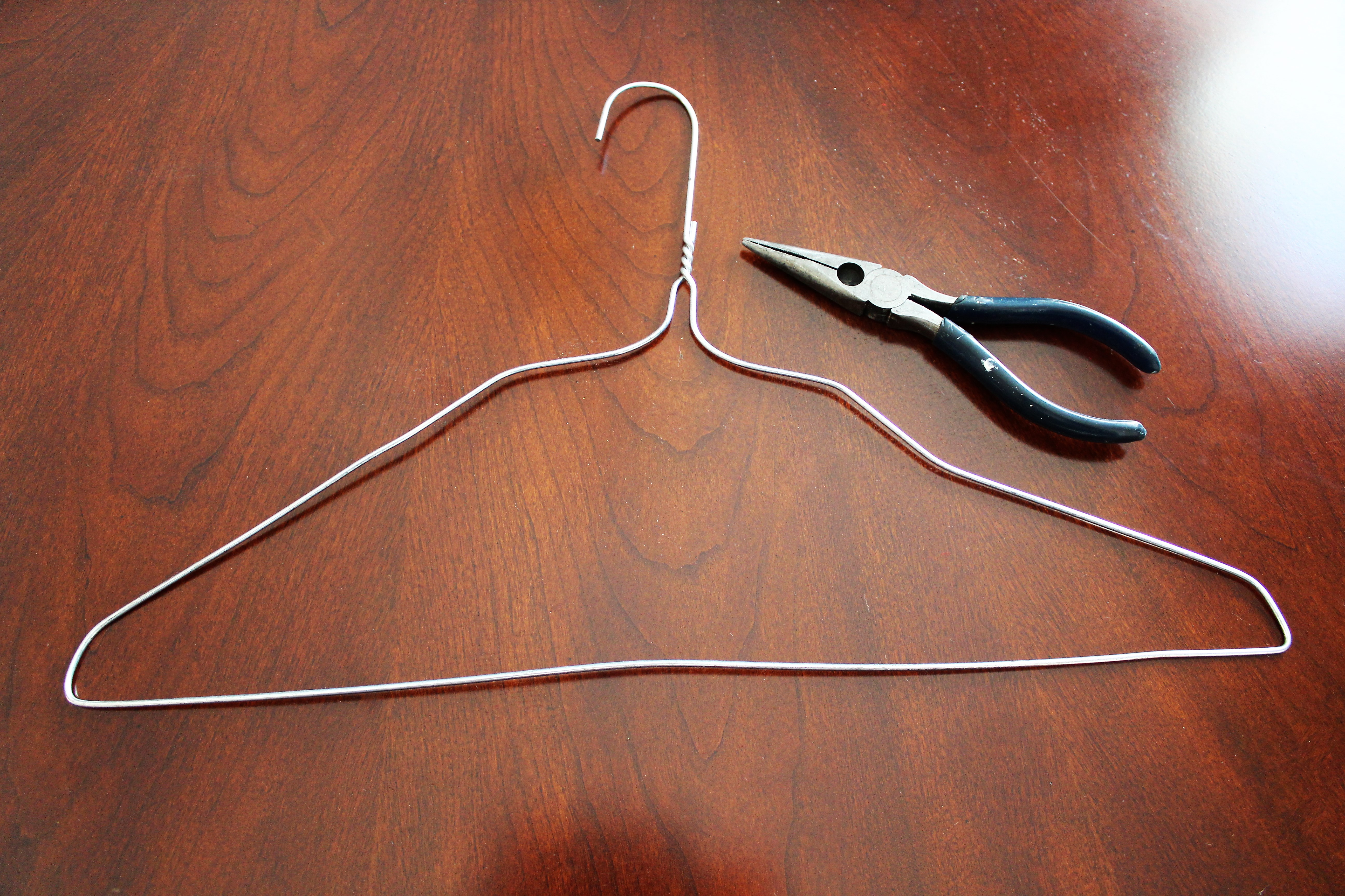 Poke the wire coat hanger down the legs of the ornament. After you have the wire all the way down bend to form to the feet.