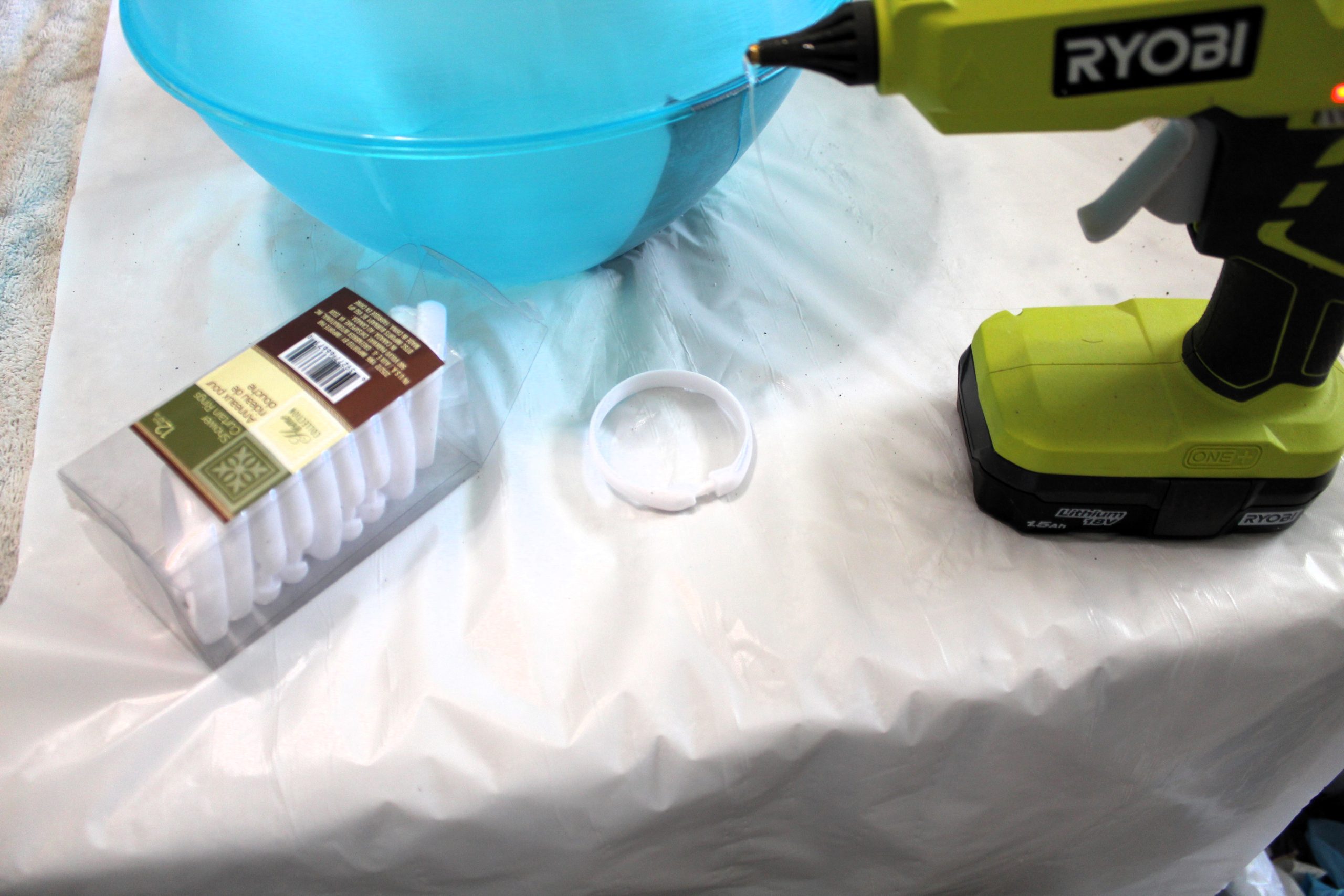 My craft is using two large plastic bowls, a can of tuna and a shower curtain ring all from Dollar Tree! I will link Tammy’s craft down at the end of my tutorial.