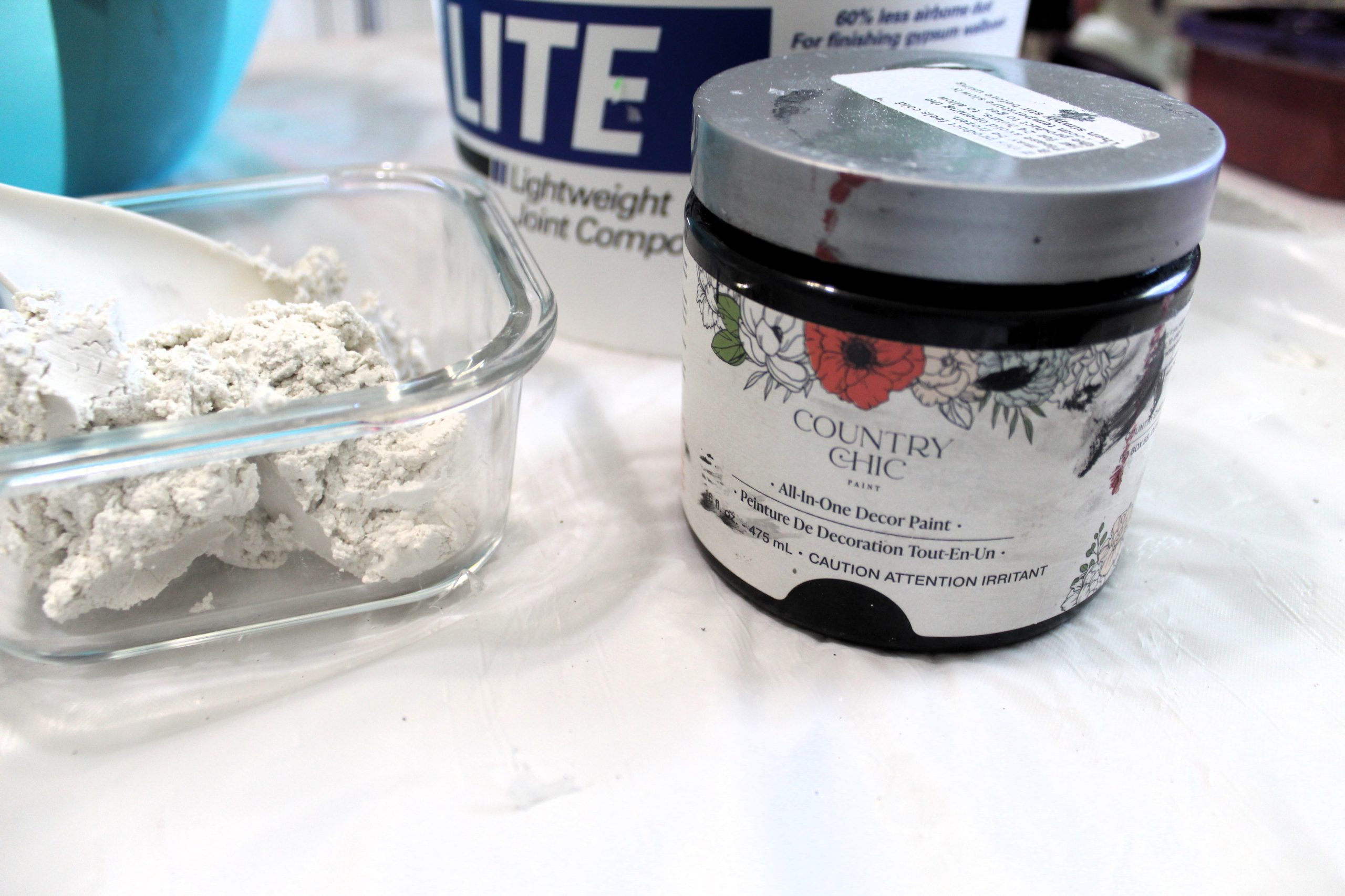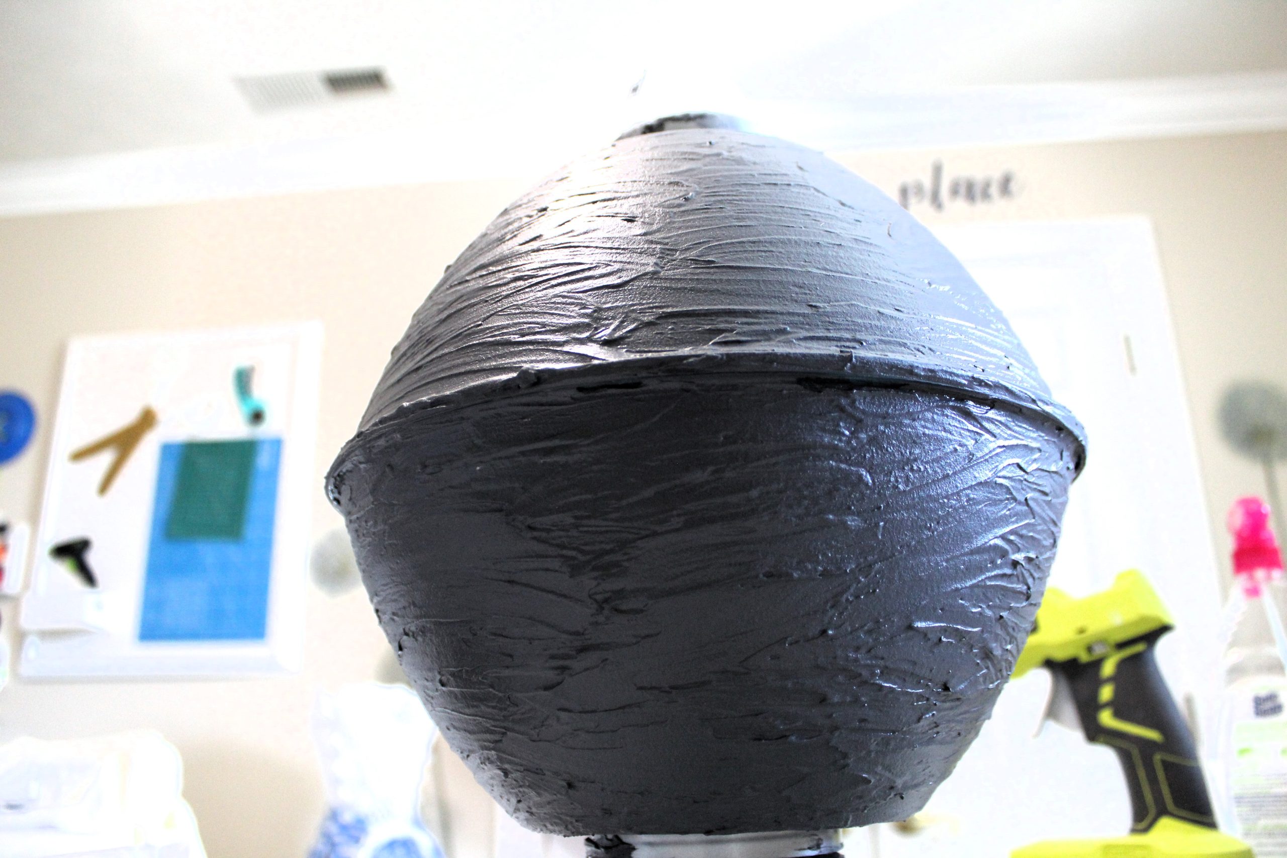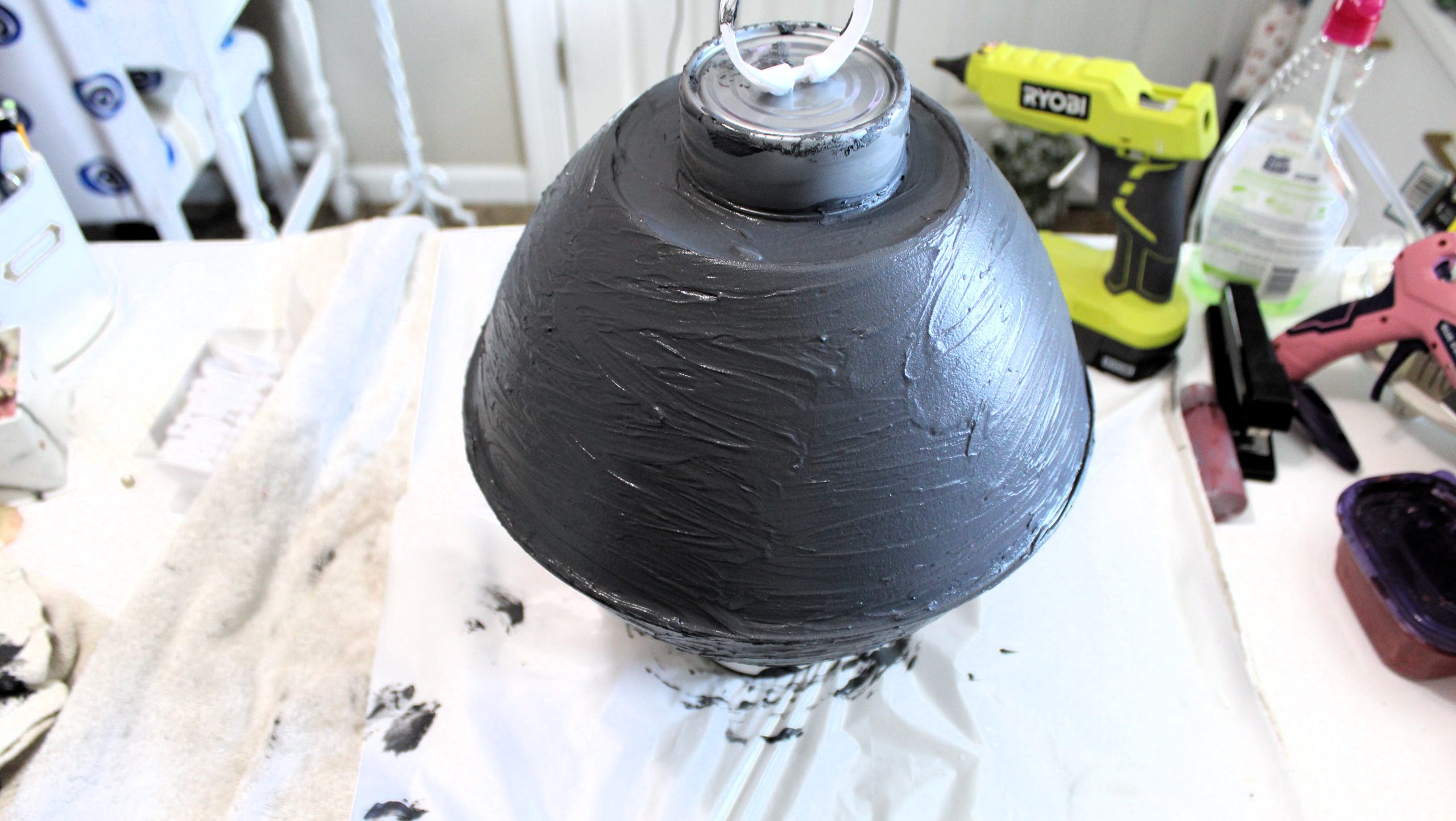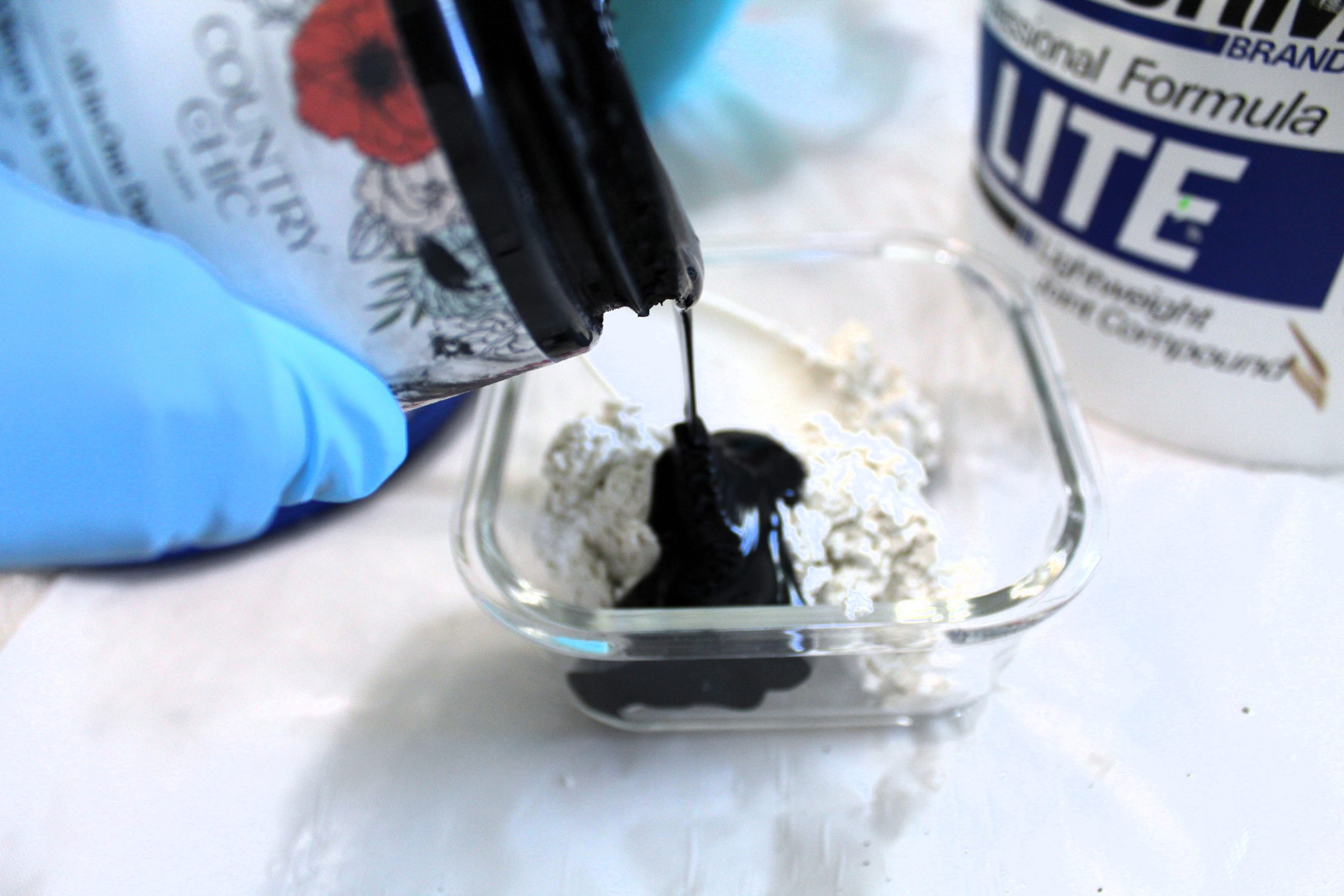 To create a texture vintage bell, I mixed up joint compound and black paint to apply all over the body of my bell. I used about 1 cup of joint compound and 1/2 cup of black paint.