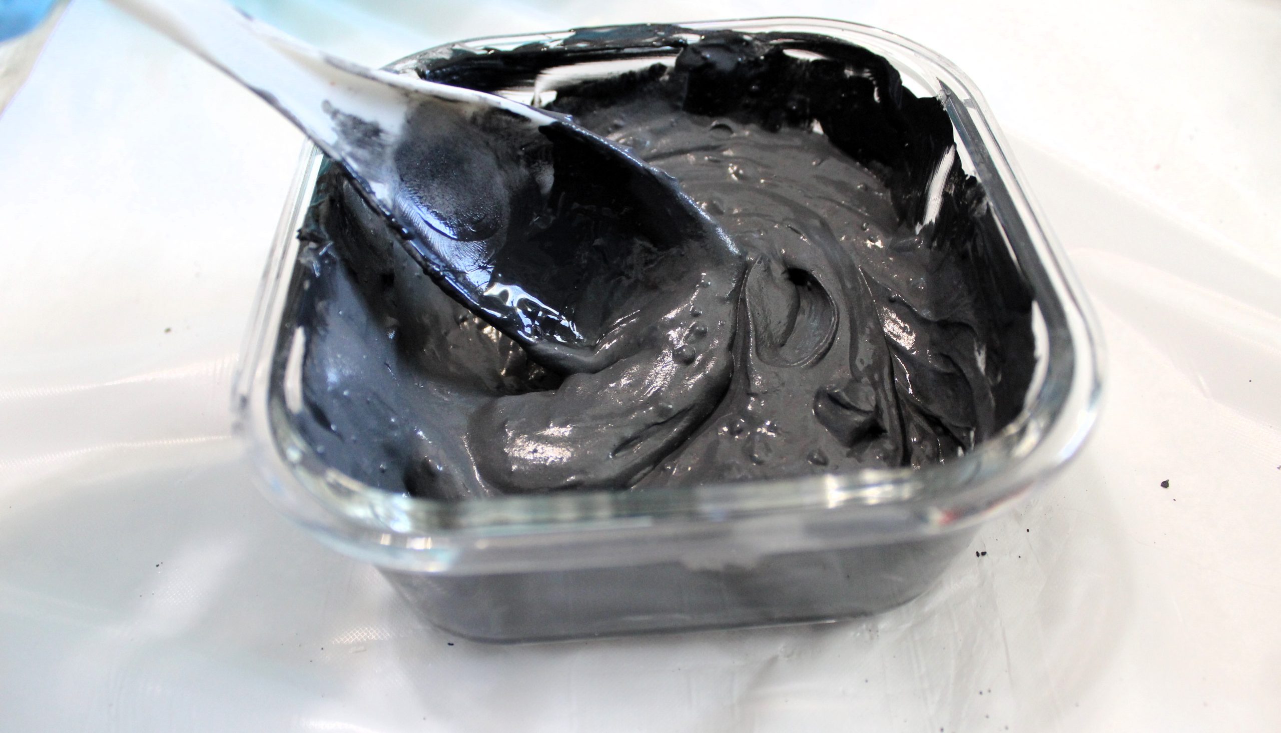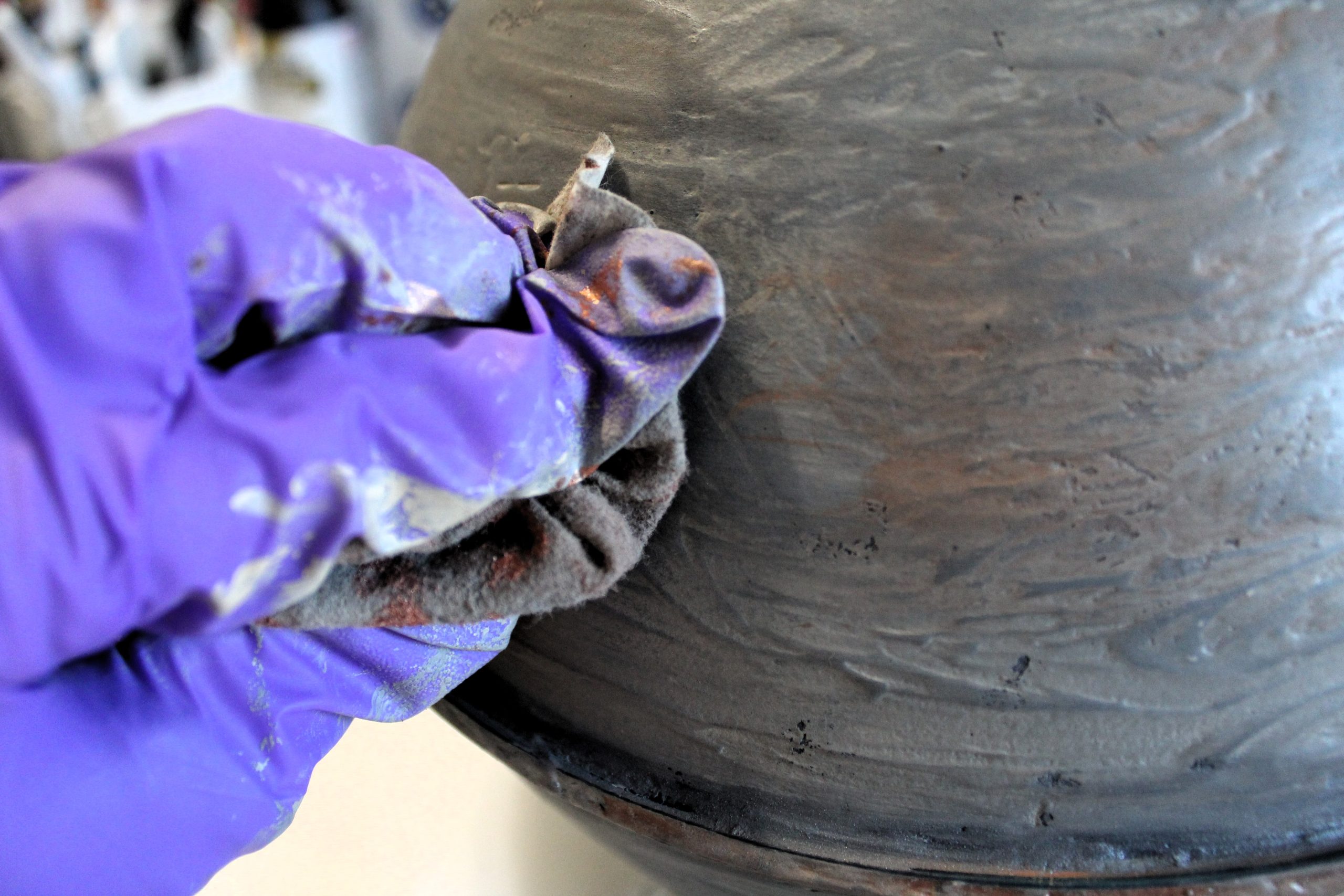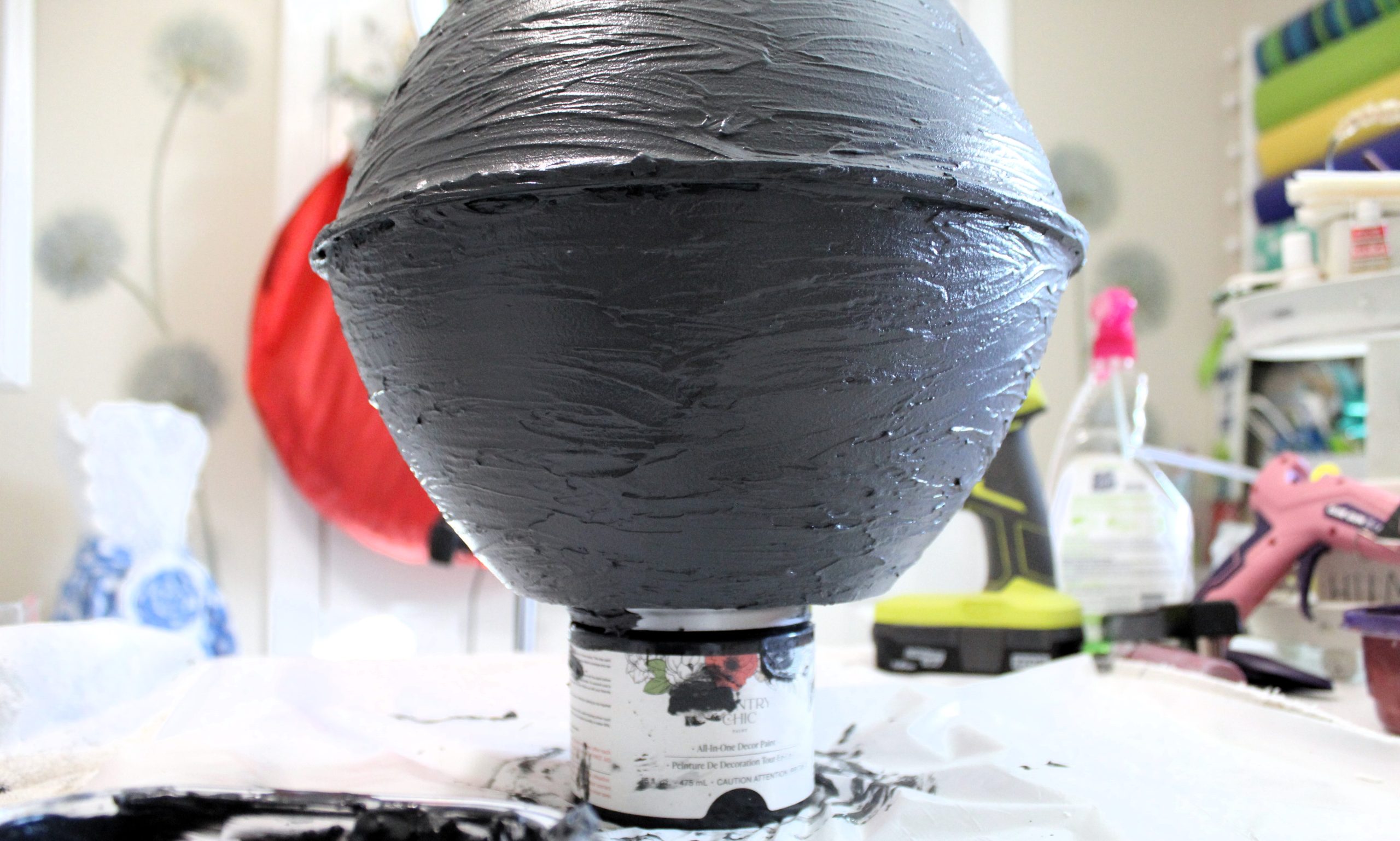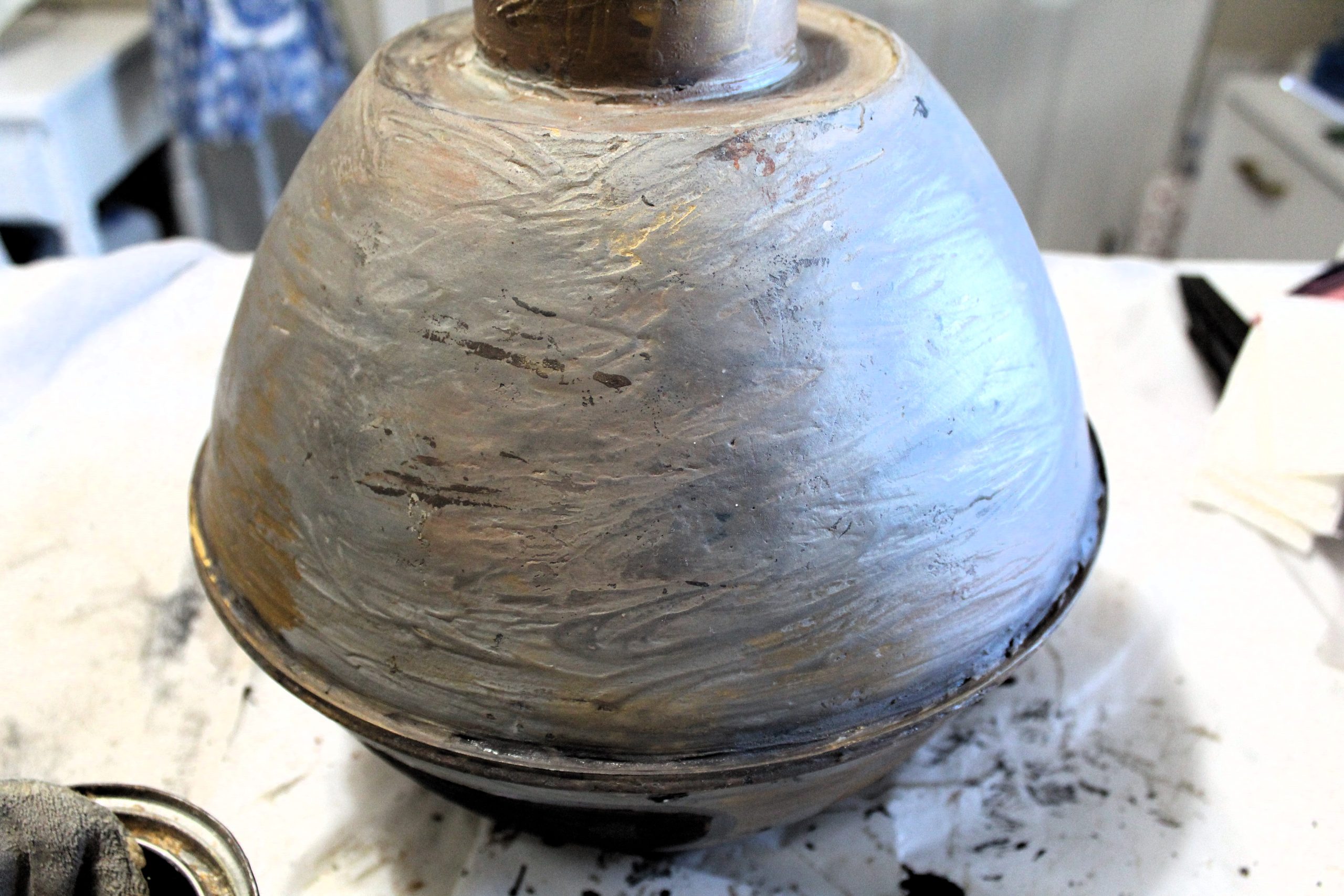To create a texture vintage bell, I mixed up joint compound and black paint to apply all over the body of my bell. I used about 1 cup of joint compound and 1/2 cup of black paint.
