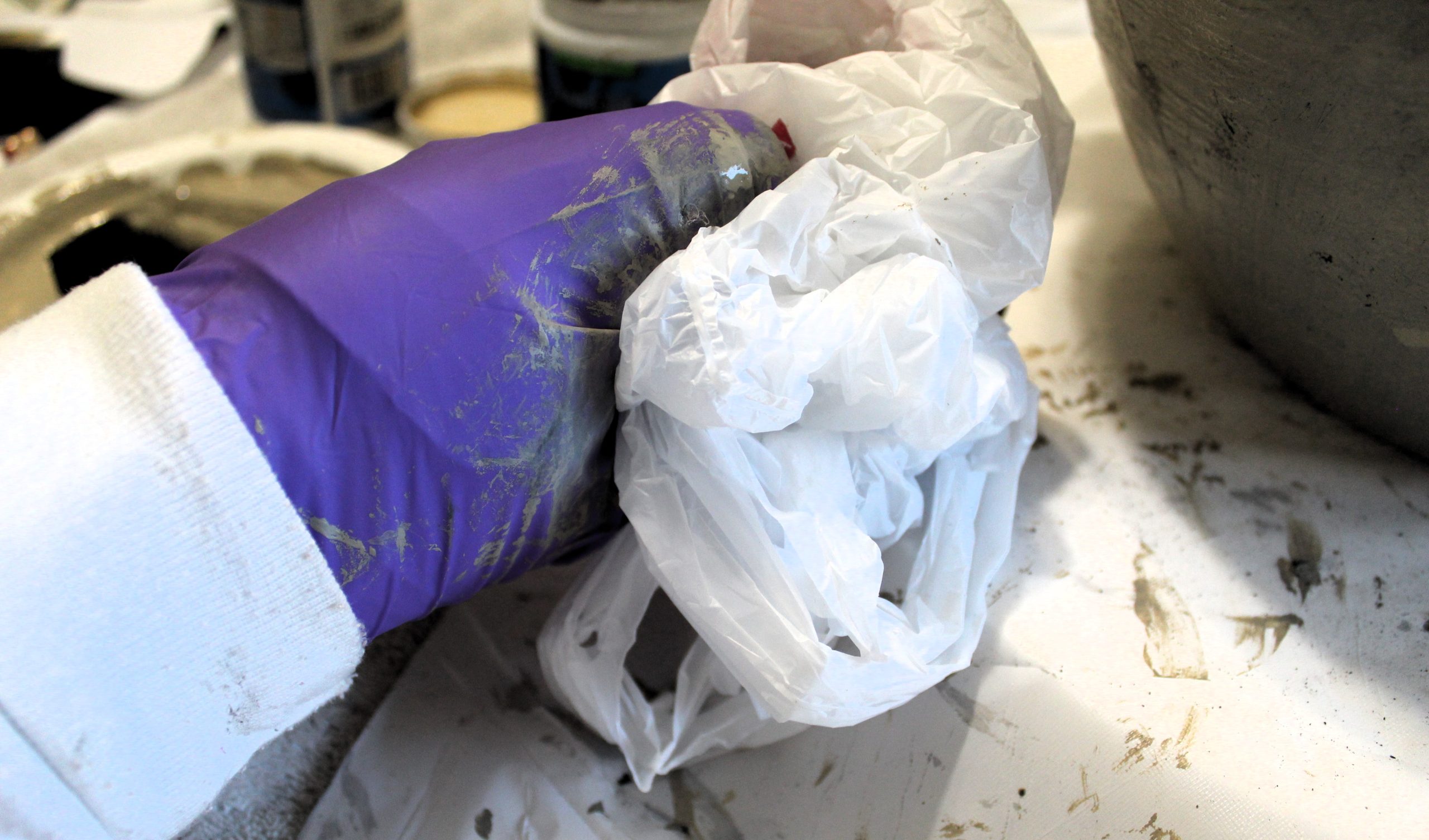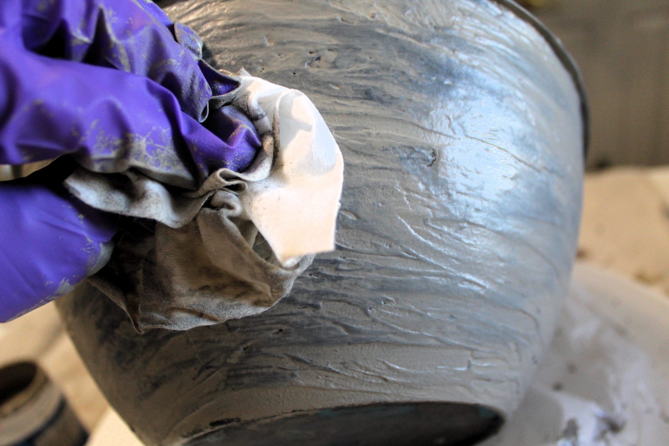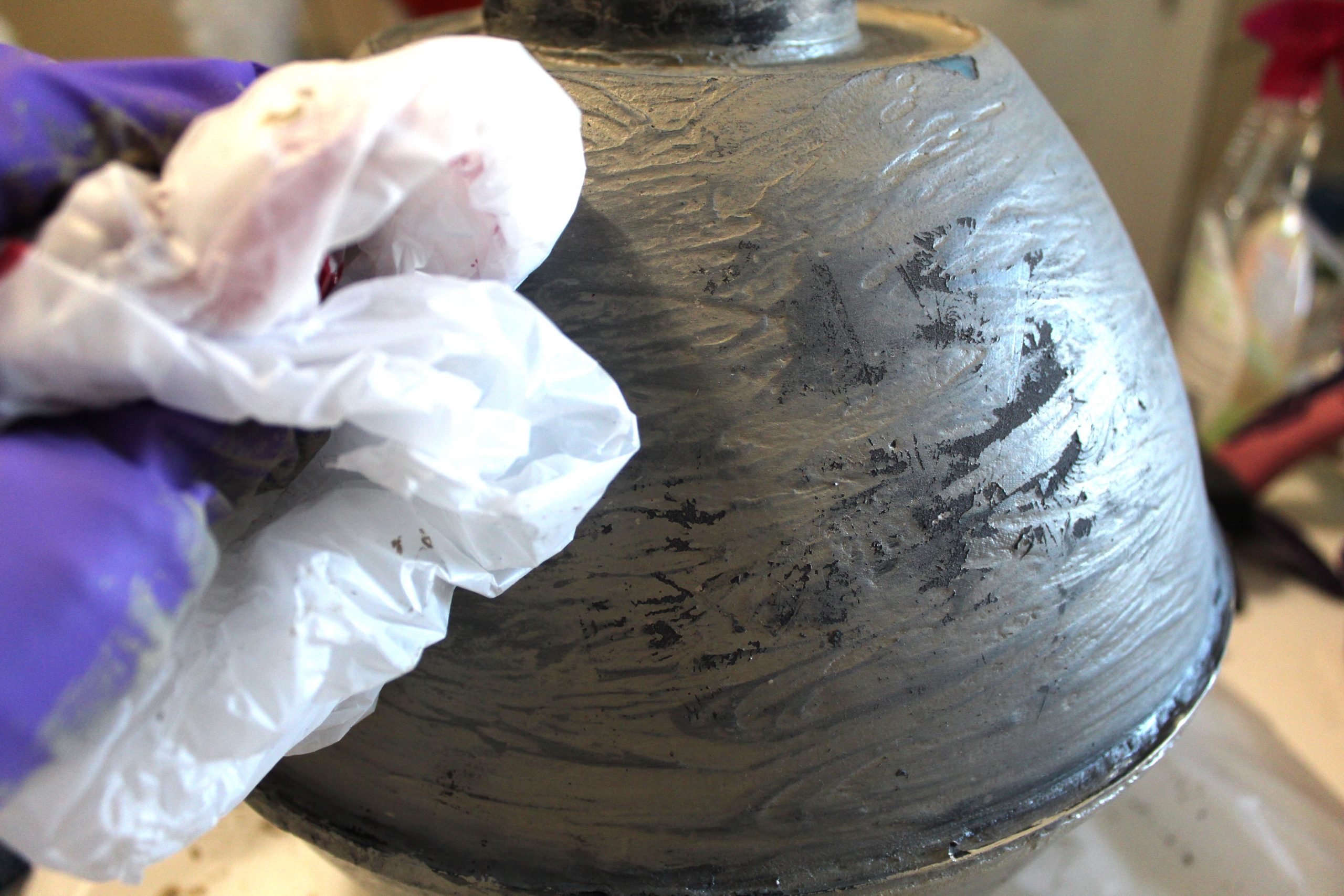 Apply the joint compound mixture all over the body of the bell. I used my hands, but a paint brush would work as well, make sure to keep it as smooth as you can.