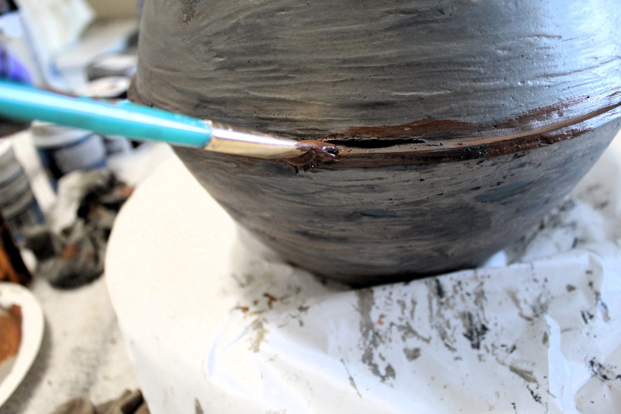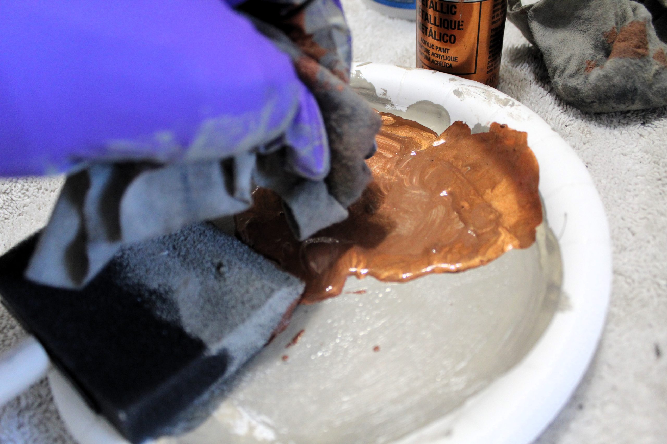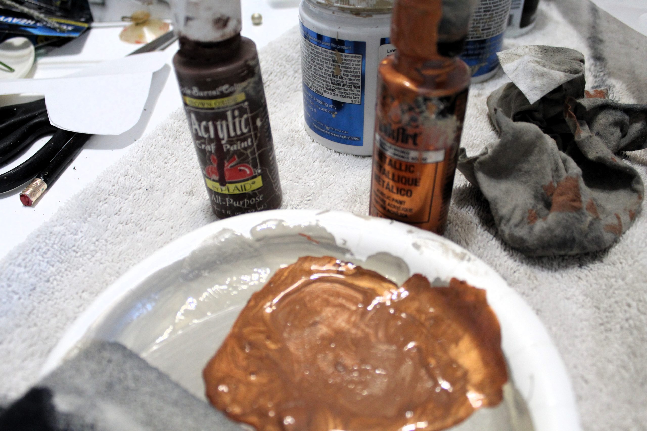 Once the joint compound had time to dry, spray paint the cap. I applied two coats of bronze spray paint.