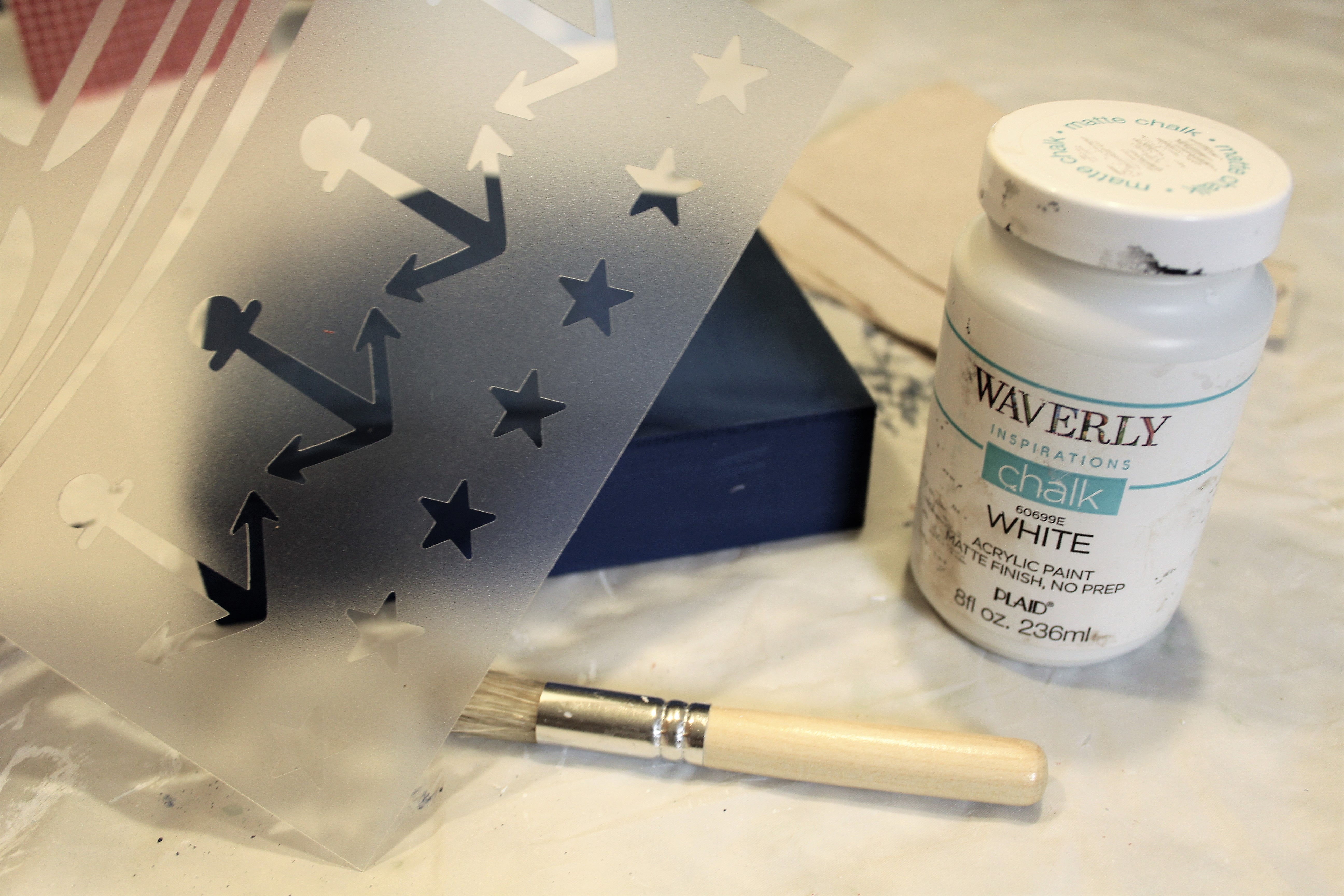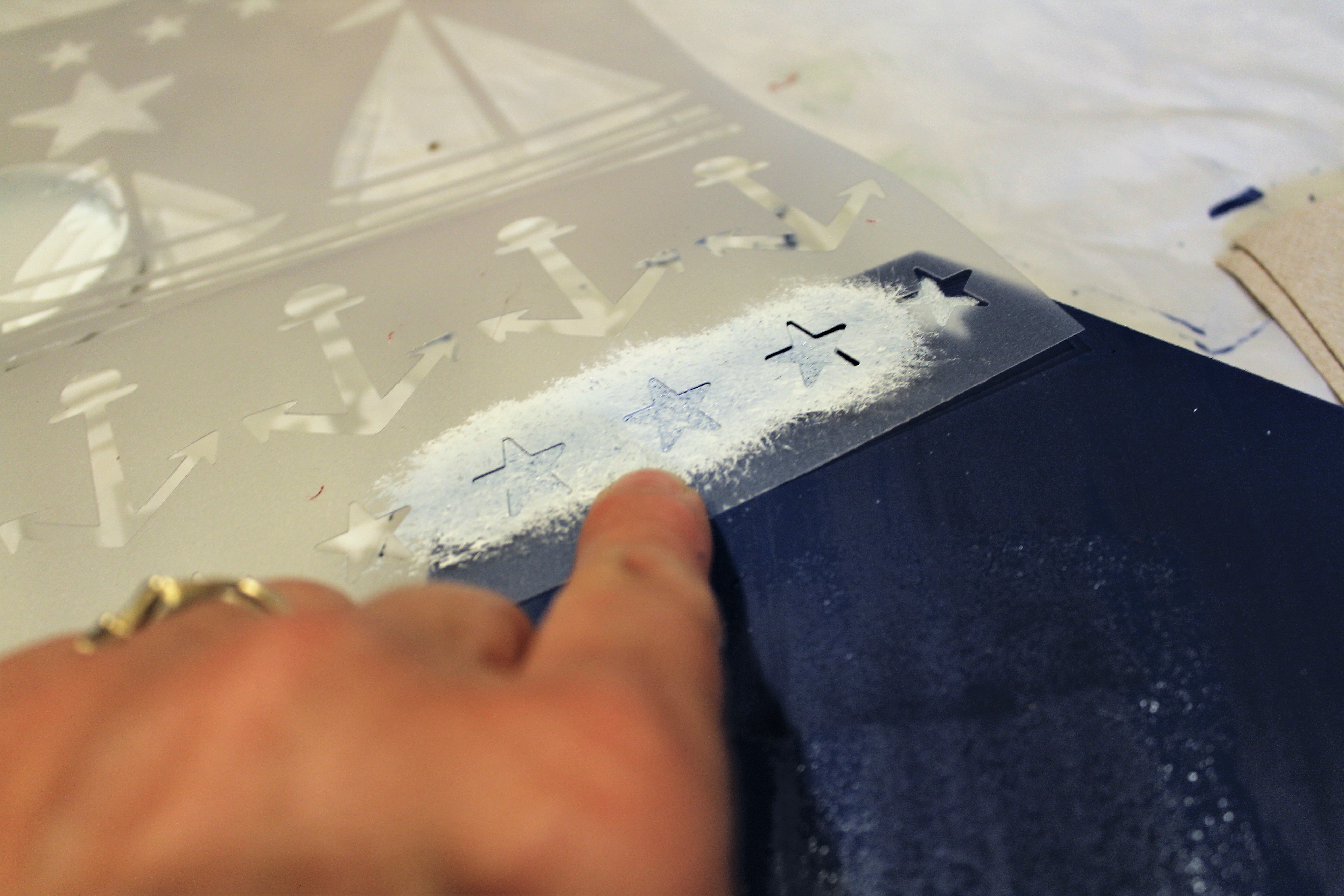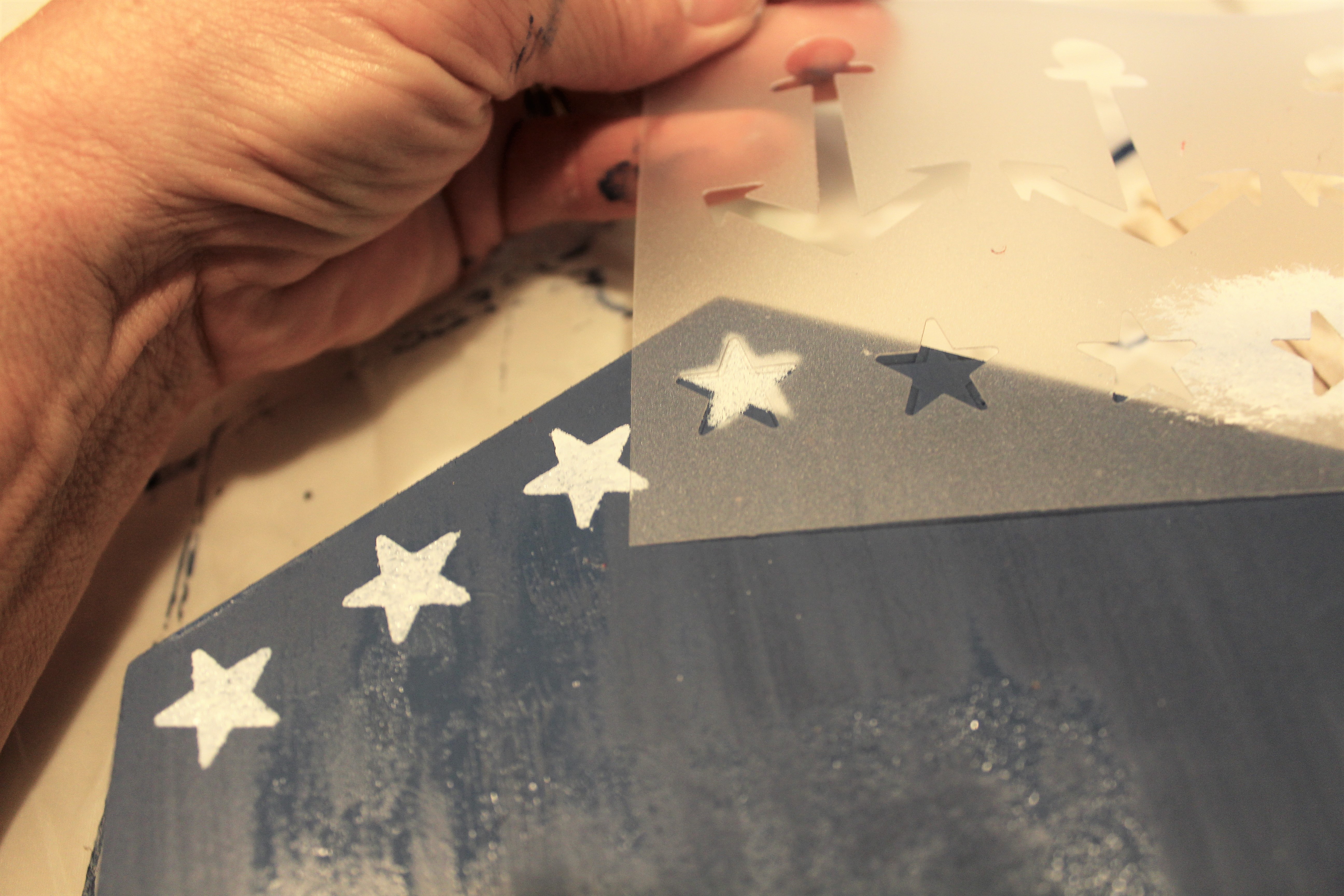 I took the stencil and the navy house and stenciled stars along the top of the house.