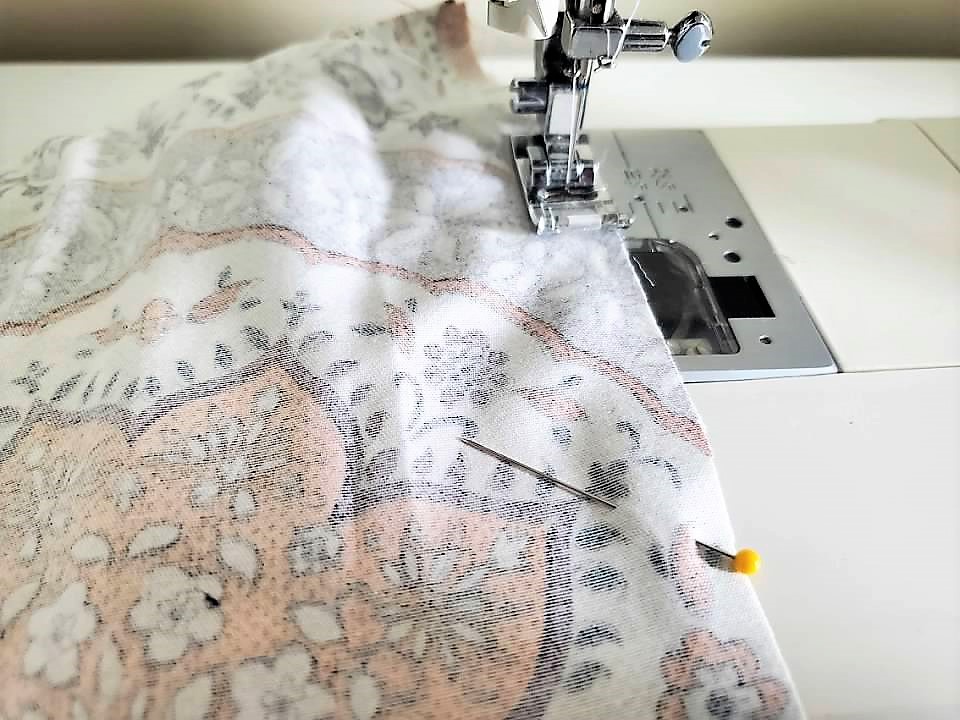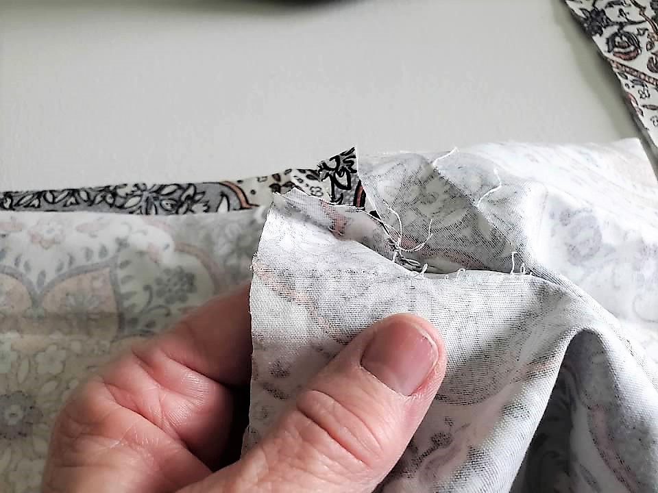 Turning the sham inside out, ripping out the side seams about 2 inches to be able to lay the two pieces flat together. I stitched a basic stitch across the pillow cover.