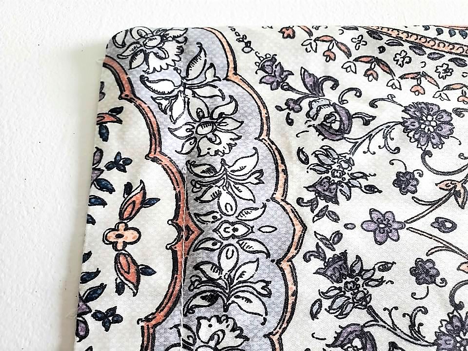 Turning the pillow cover outside in, I stitched a basic stitch to continue the decorative stitching around the new edge.