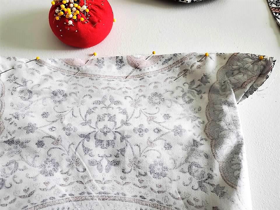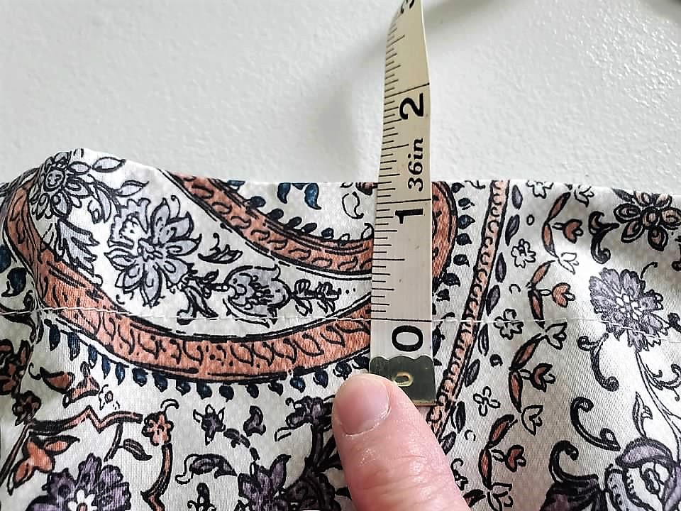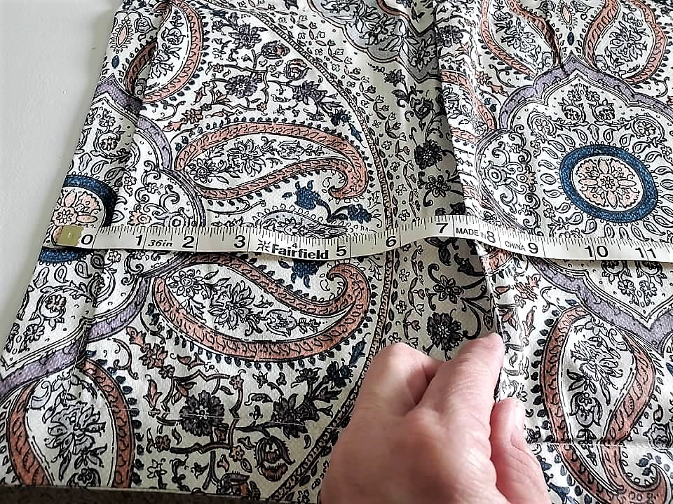 I measured down one side to the length of the pillow form I will be using, adding 1 ½ inches for seam allowance and decorative stitching. Pinning for a cut line.