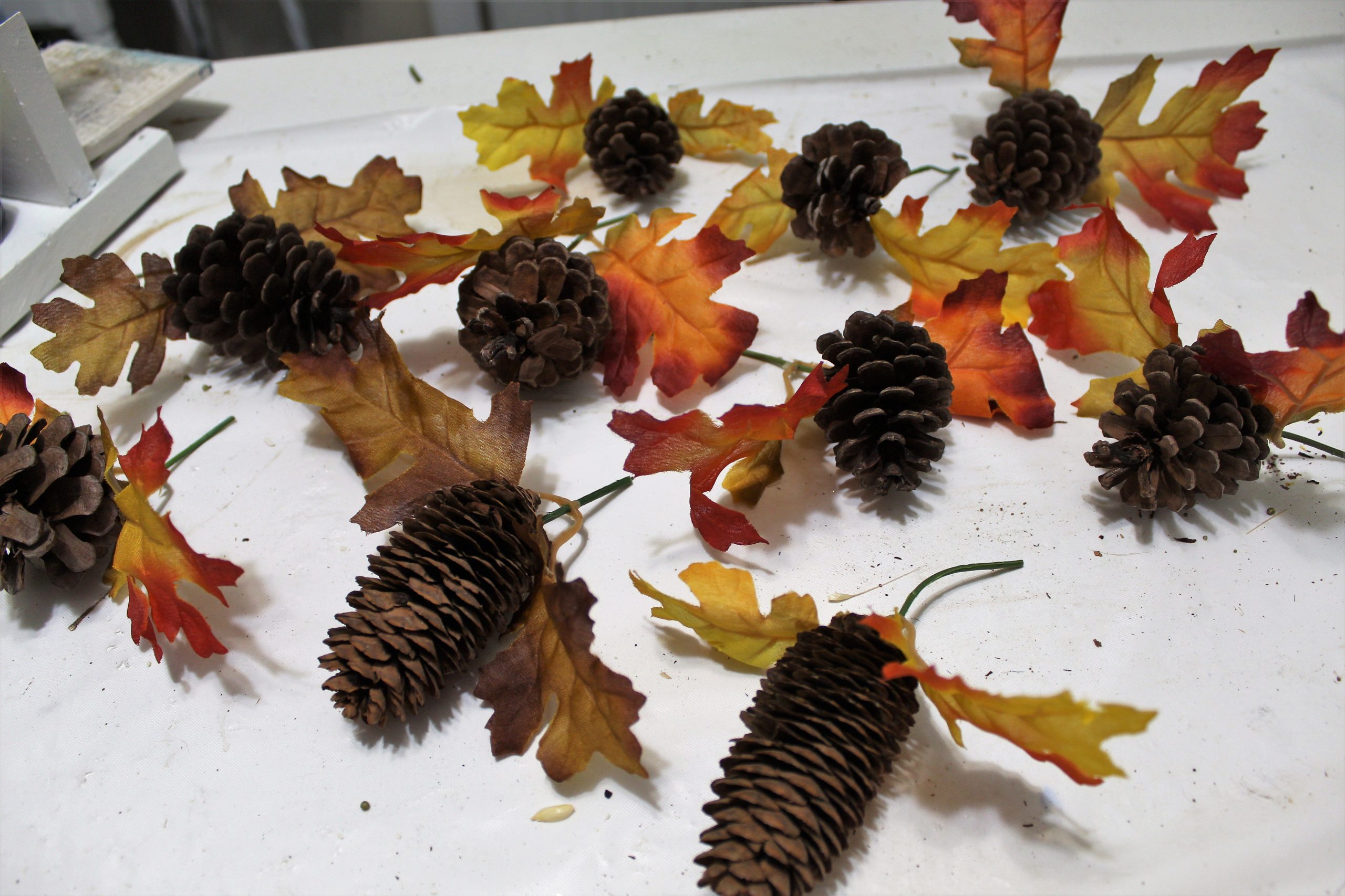 Remove leaves from the bundles and add to the stems of the pinecones.