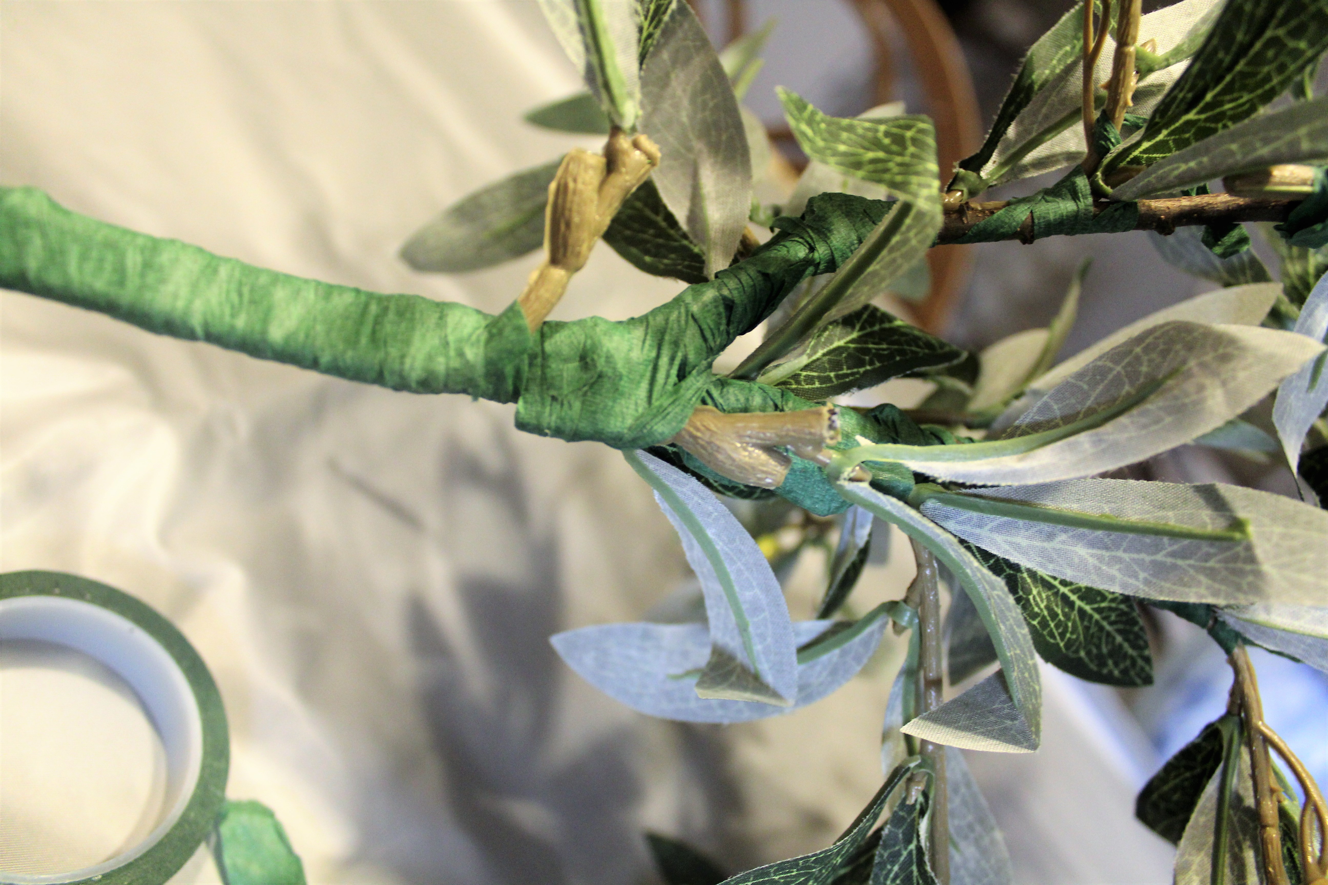 • Since I used green floral tape I am using my Truffle Waverly chalk paint and painting the tape brown.