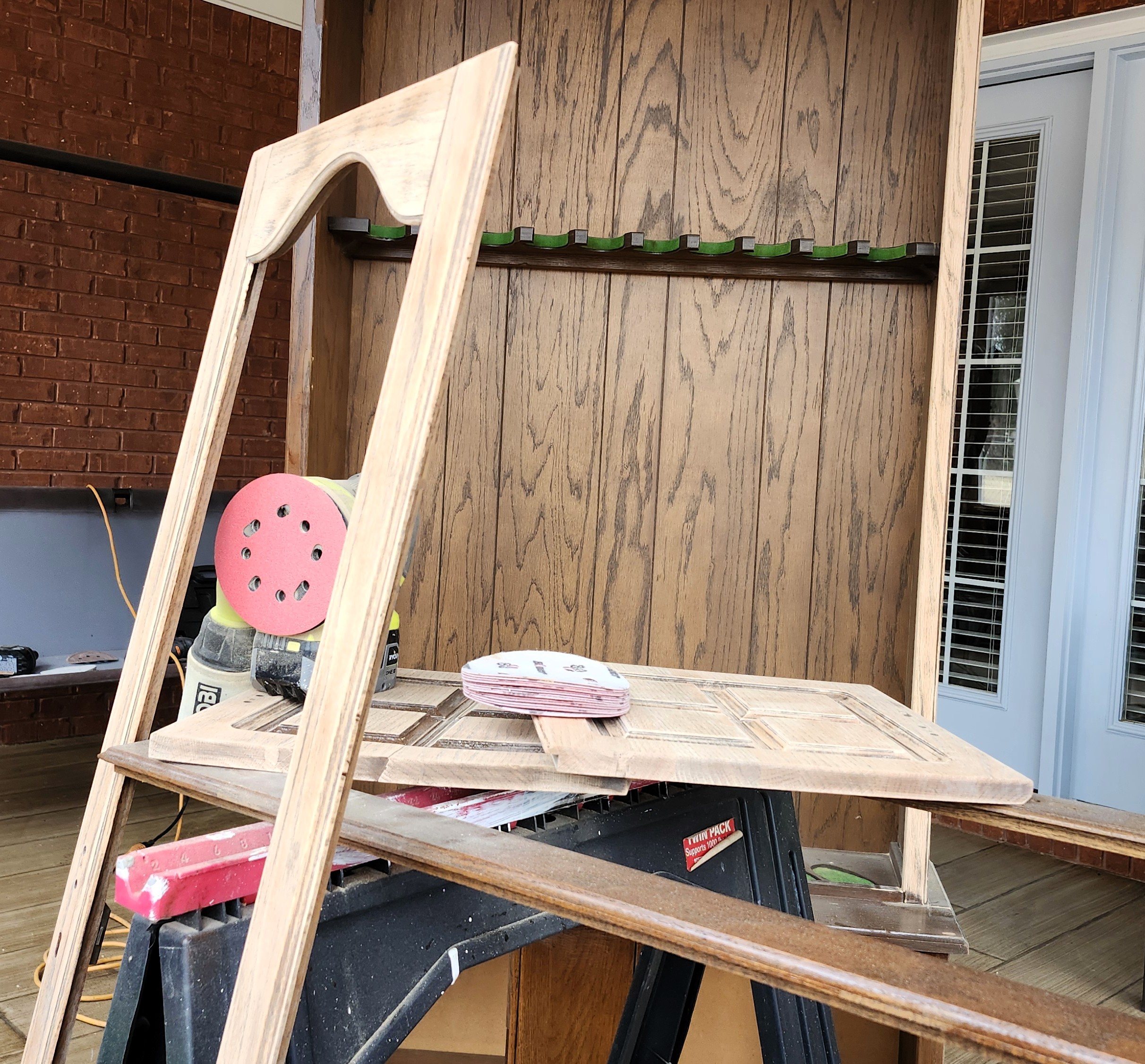 Using Murphy Oil Soap to clean and condition the paneling on the inside of the cabinet.