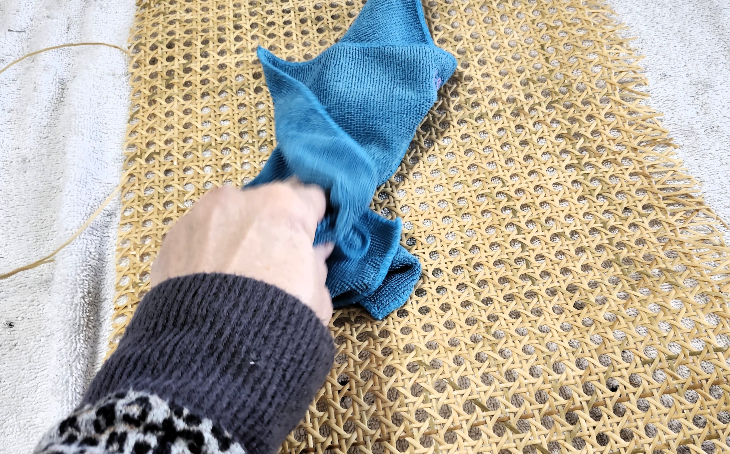 When it was time to remove the webbing from the water, I let the excess water drip off by holding it up for a minute or so. I placed the wet webbing on a towel and tapped the webbing with a cloth.