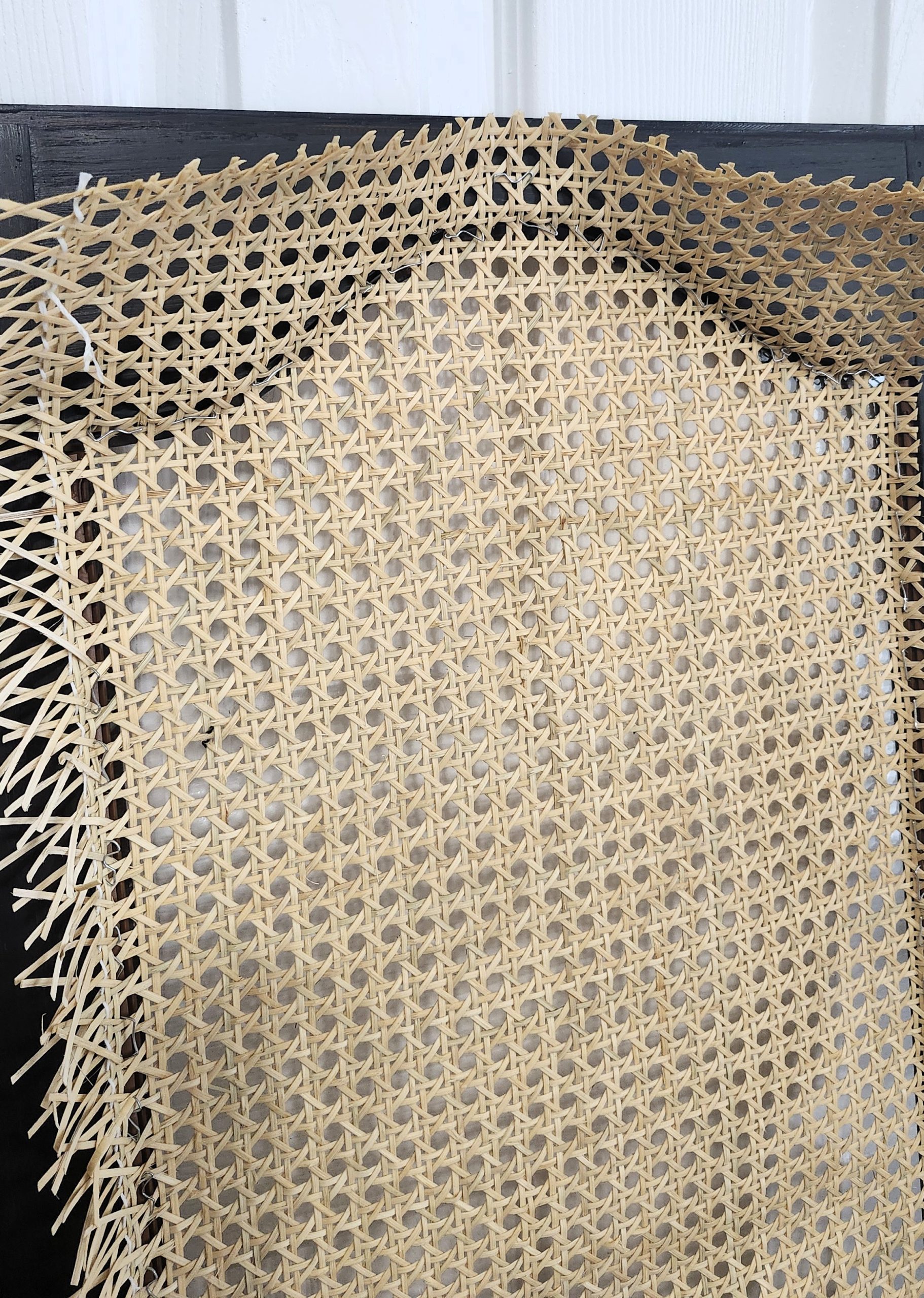 To conceal the items stored in the cabinet, I added cane webbing. The glass helps the dust from seeping inside the cabinet, so I placed the webbing in back of the cabinet door glass.