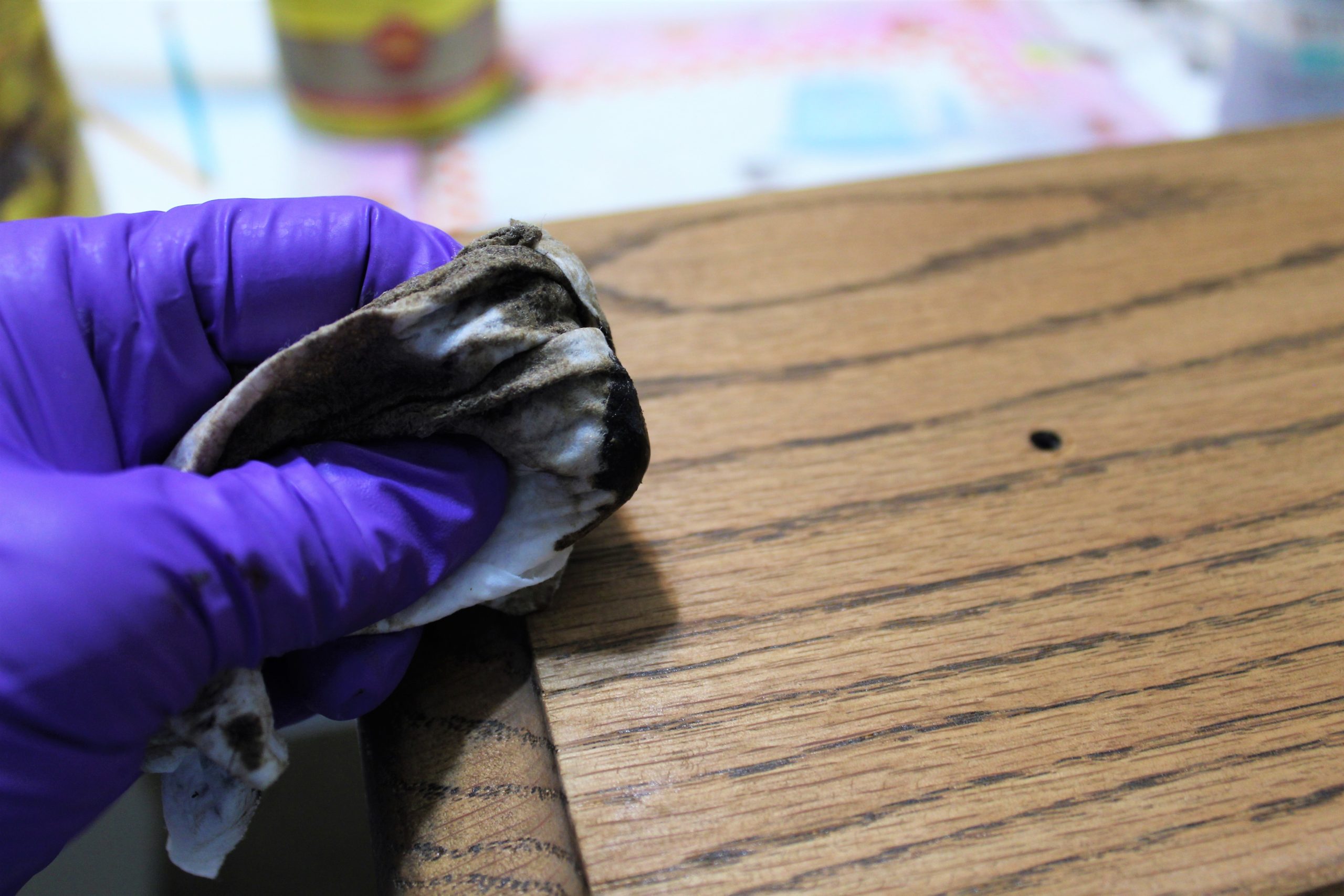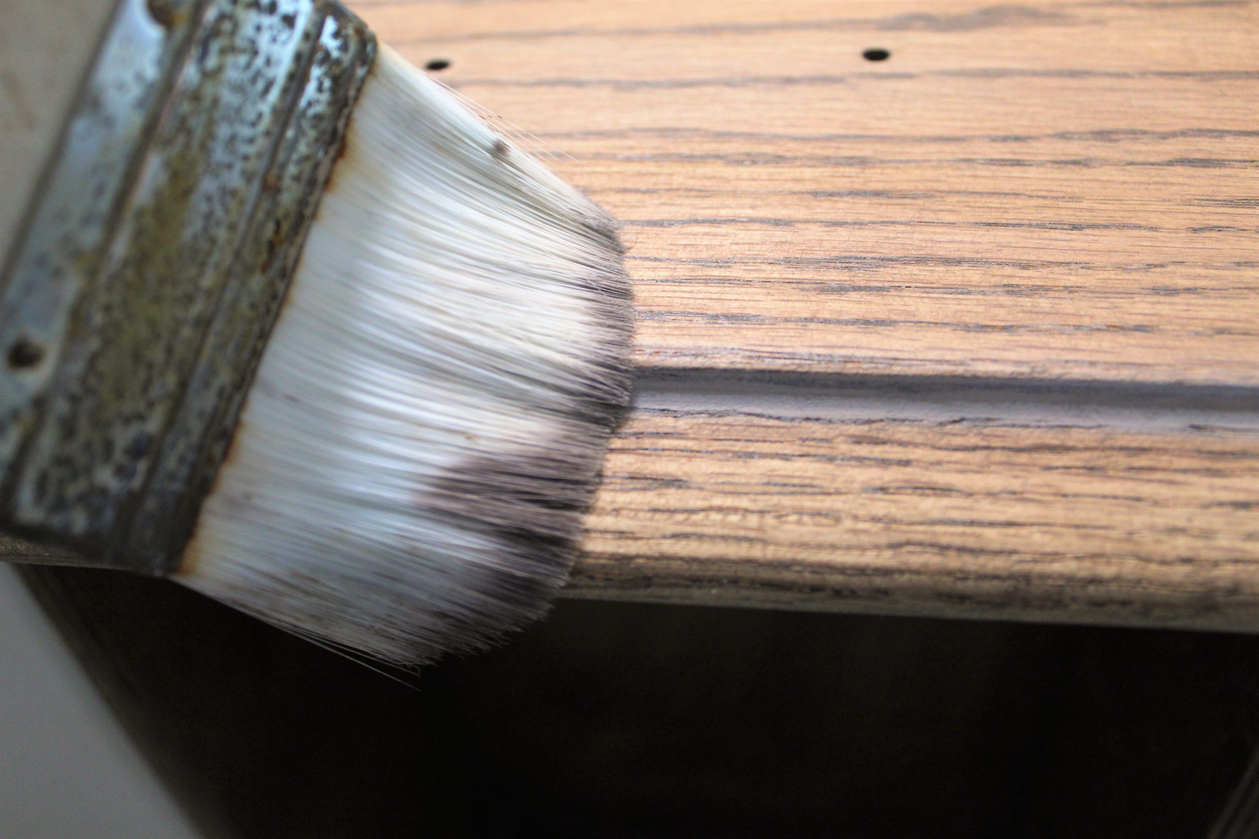 My Plan A for the vanity cabinet was to bleach the wood and add a clear poly topcoat only, but the cabinet doors turned darker instead of lighter. Scratched Plan A, I turned to Plan B, I created a mango wood look to the cabinet. I love Plan B!!