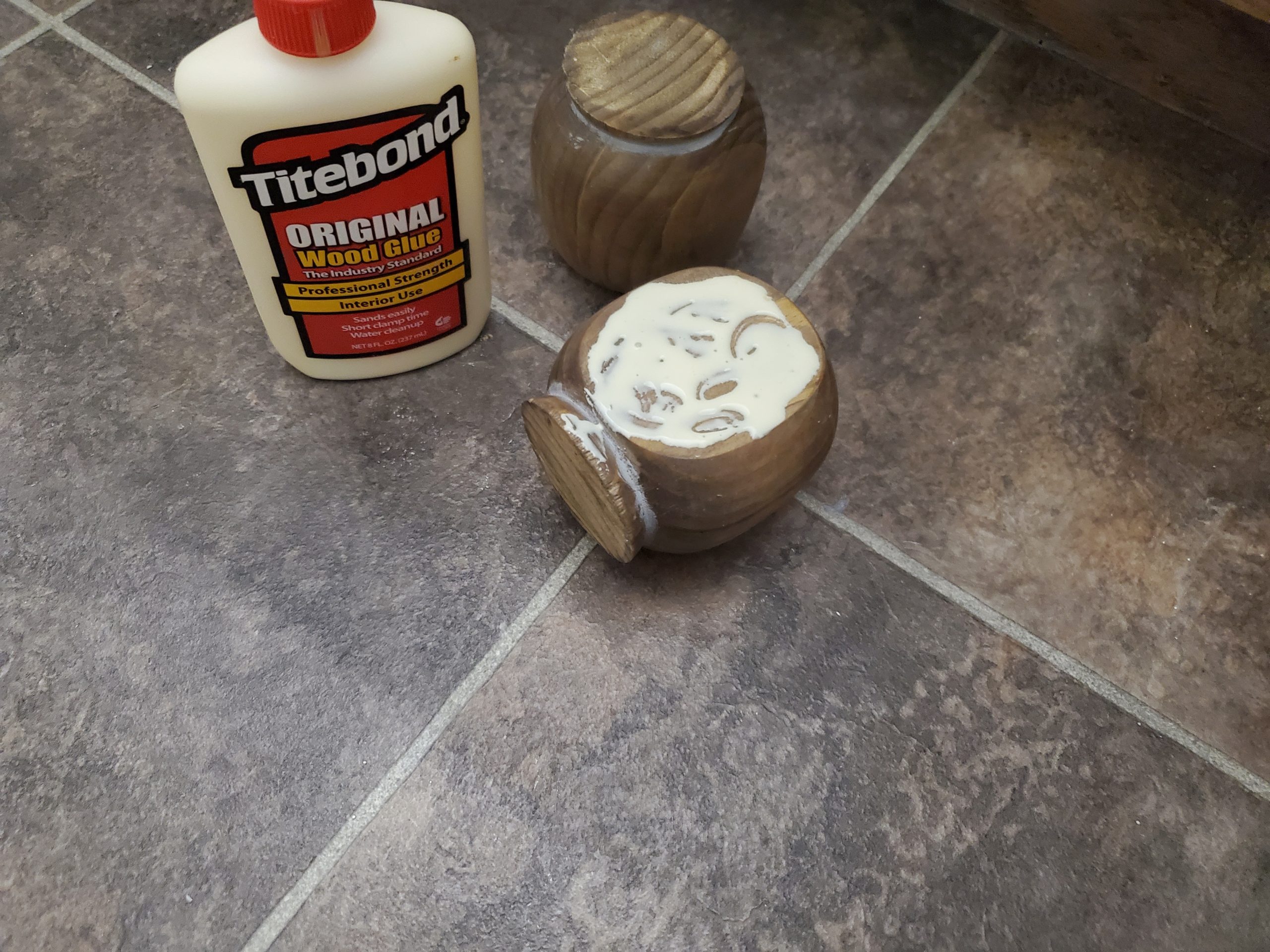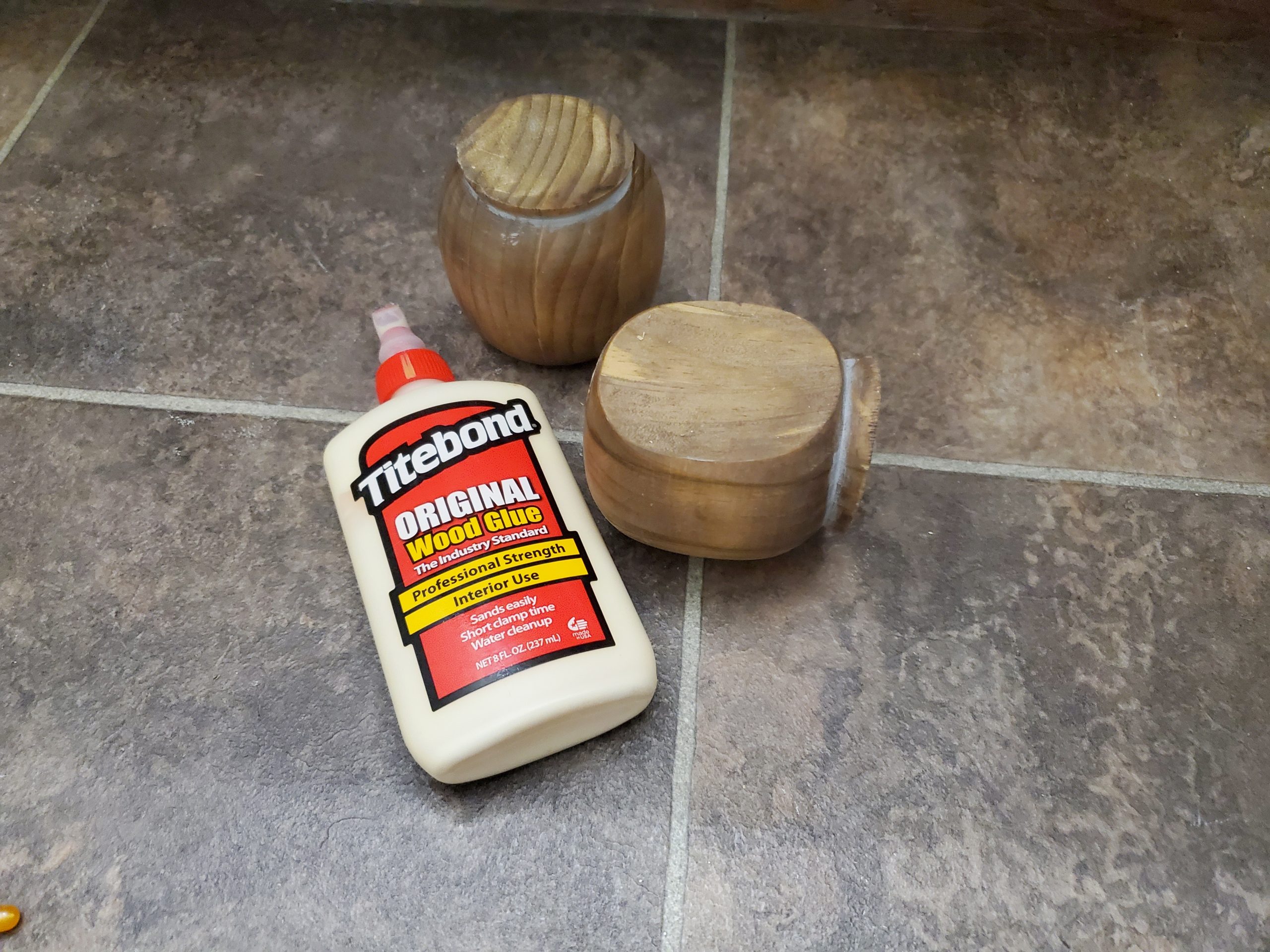 I applied wood glue to the flat part of the finial and attached it to the kick plate. Using painters’ tape to hold in place.