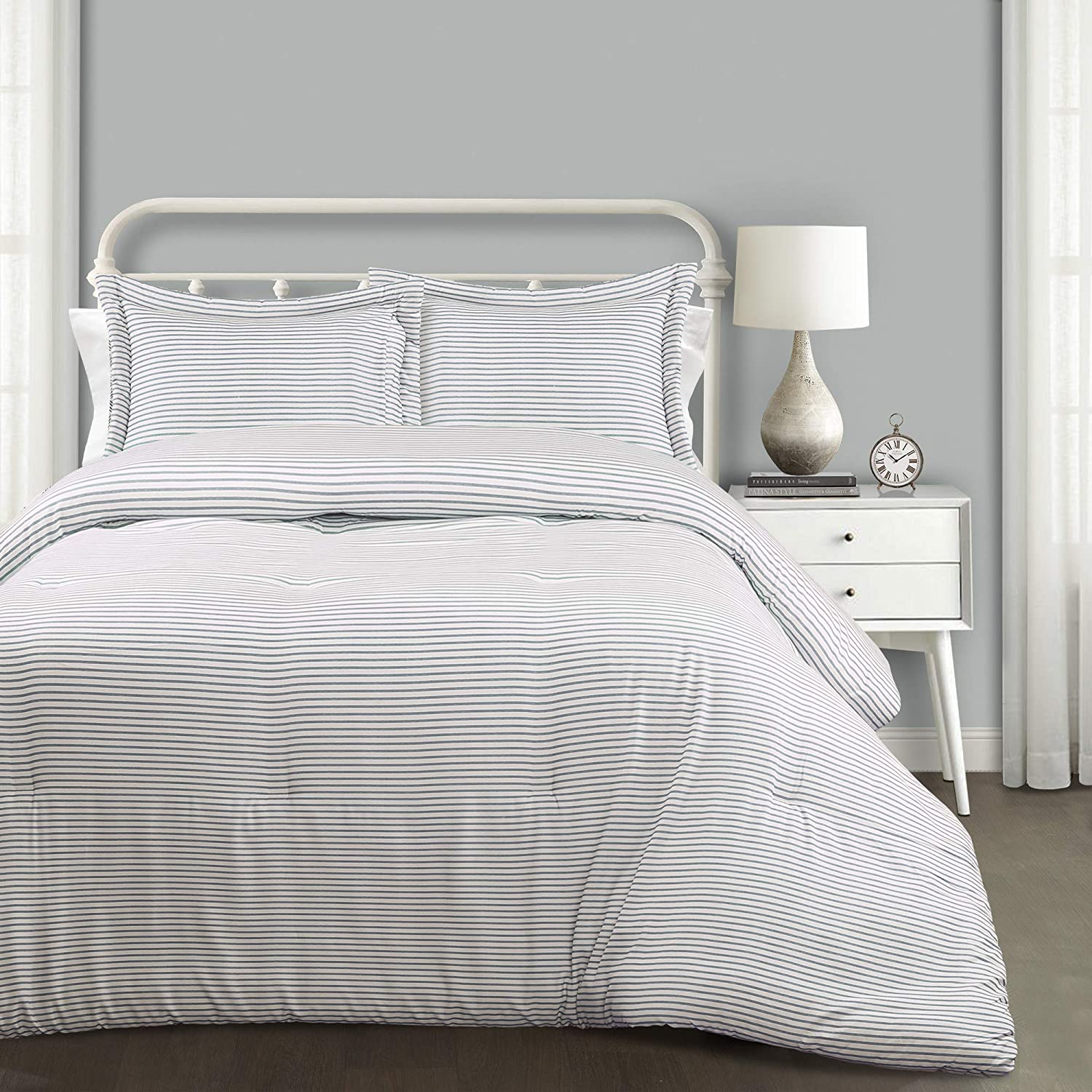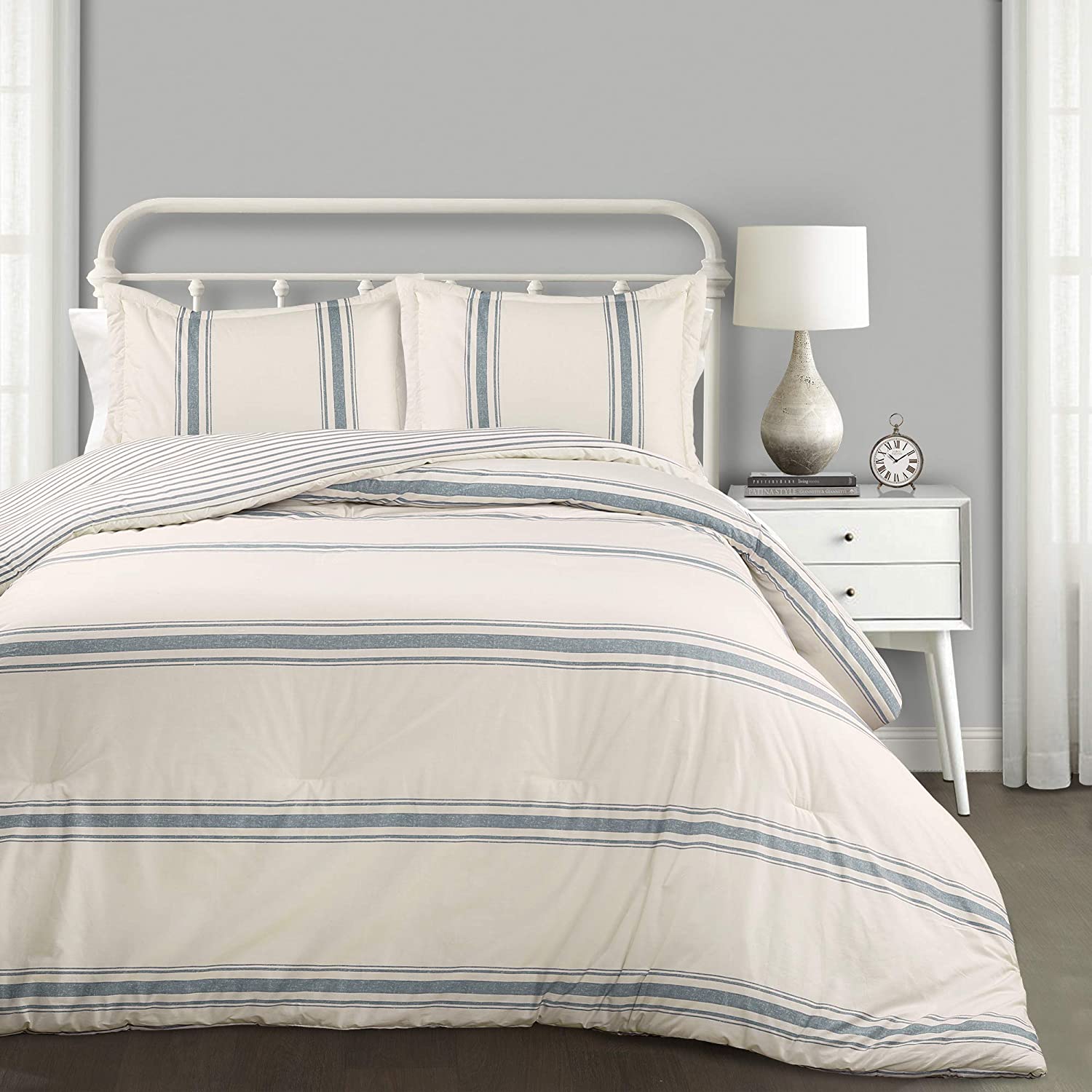 LUSH DECOR COMFORTER FARMHOUSE STRIPE 3 PIECE REVERSIBLE BEDDING SET, KING, BLUE