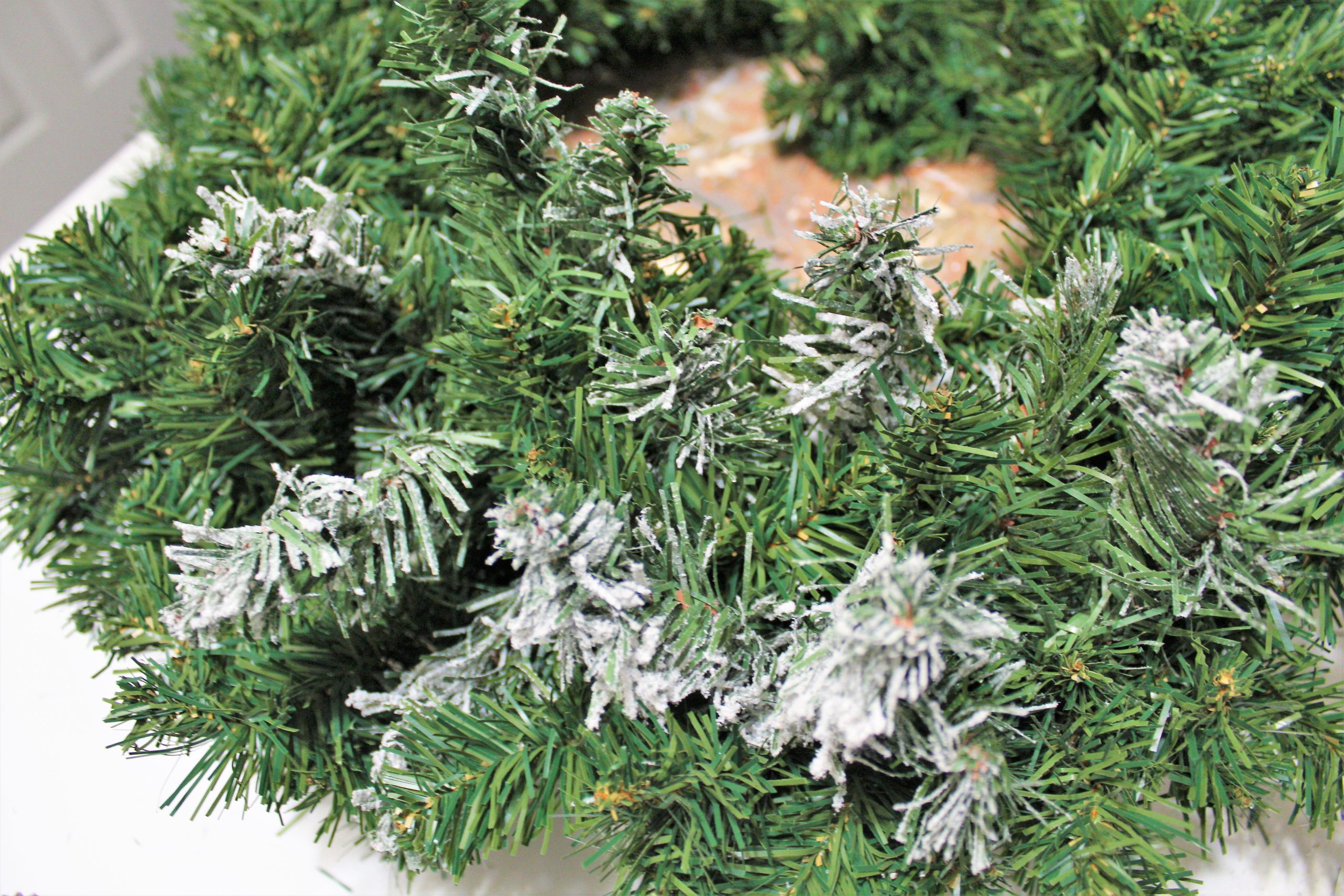 Adding the pieces to my wreath, interwinding the two greeneries. I placed the two pieces across from each other on the wreath.