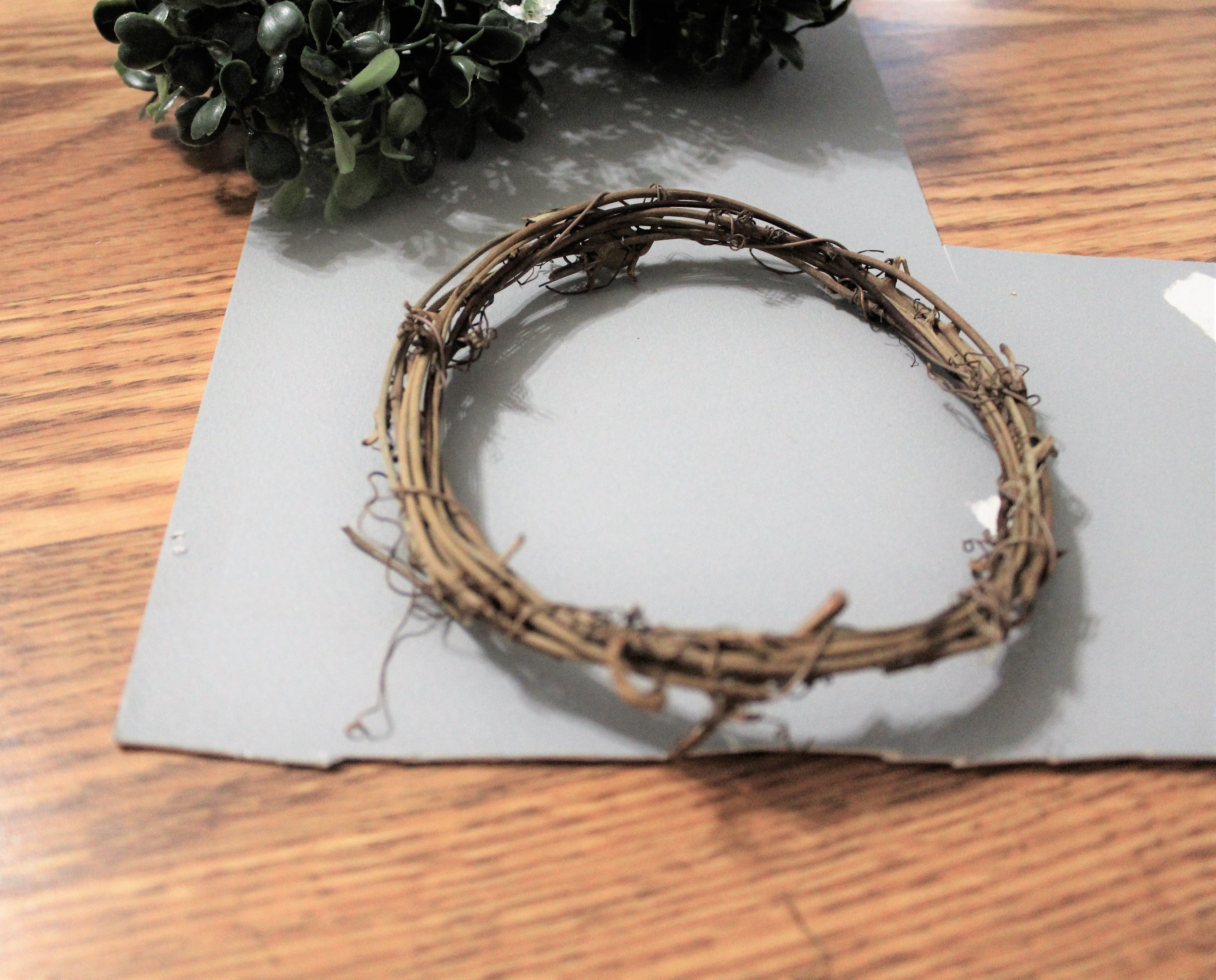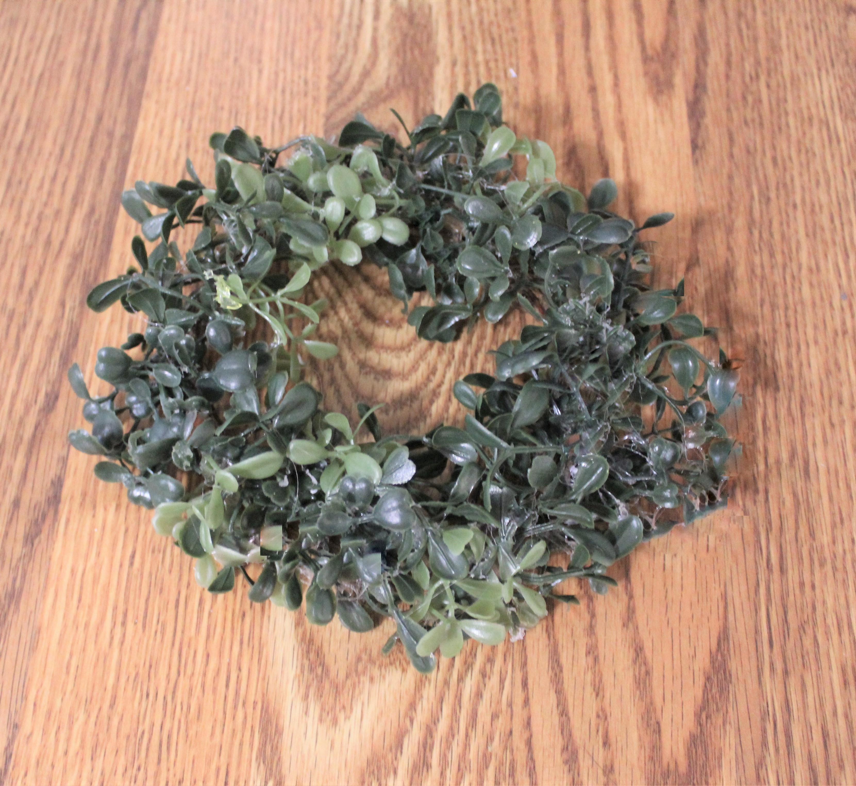 Do you remember my little Clearance Challenge blog when I removed all the Easter items out of the pail? If not you can go here CLEARANCE ITEM MAKEOVER. I used that little wreath and a piece of greenery I saved that was falling apart. I glued the greenery onto the wreath.