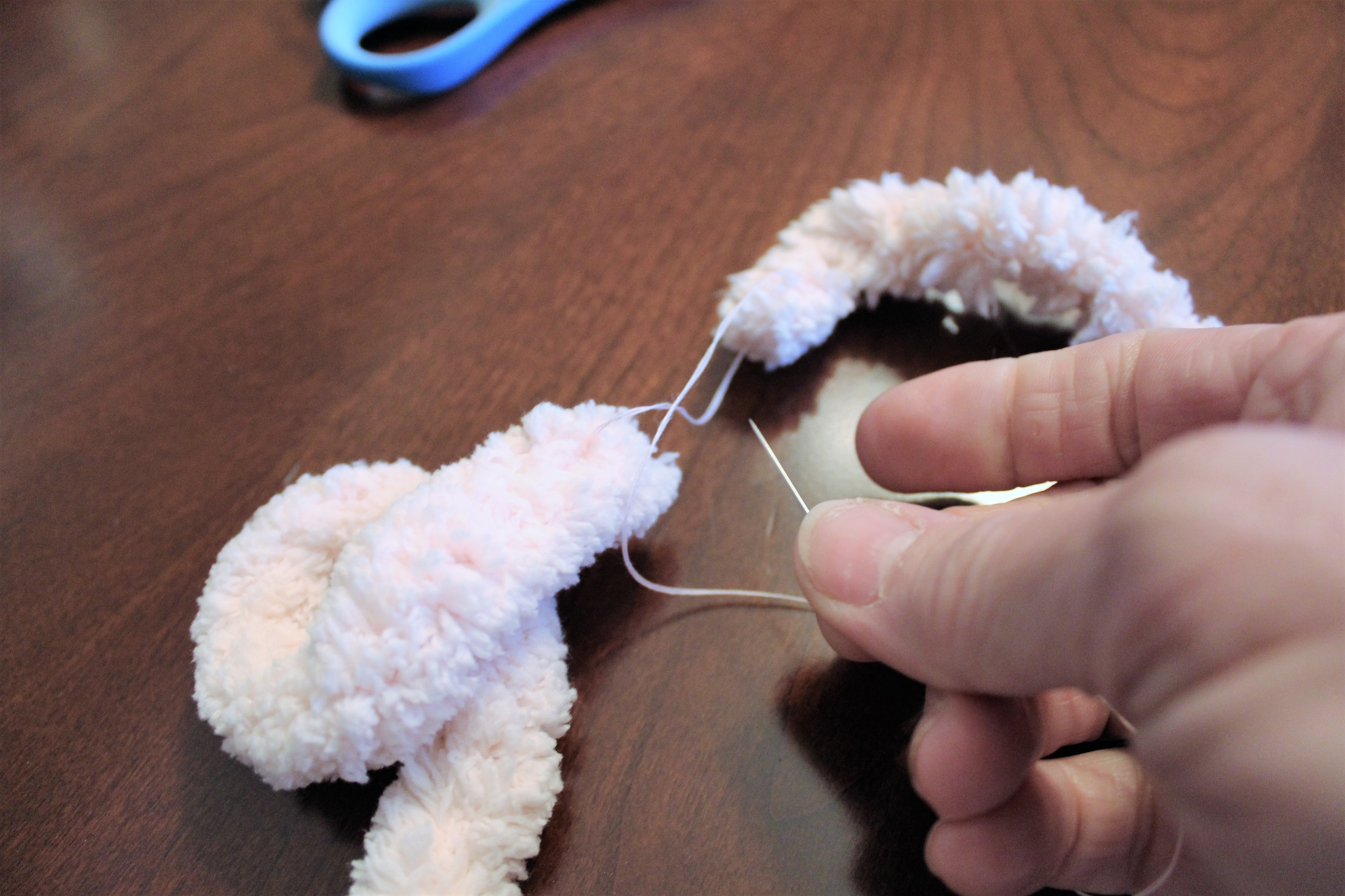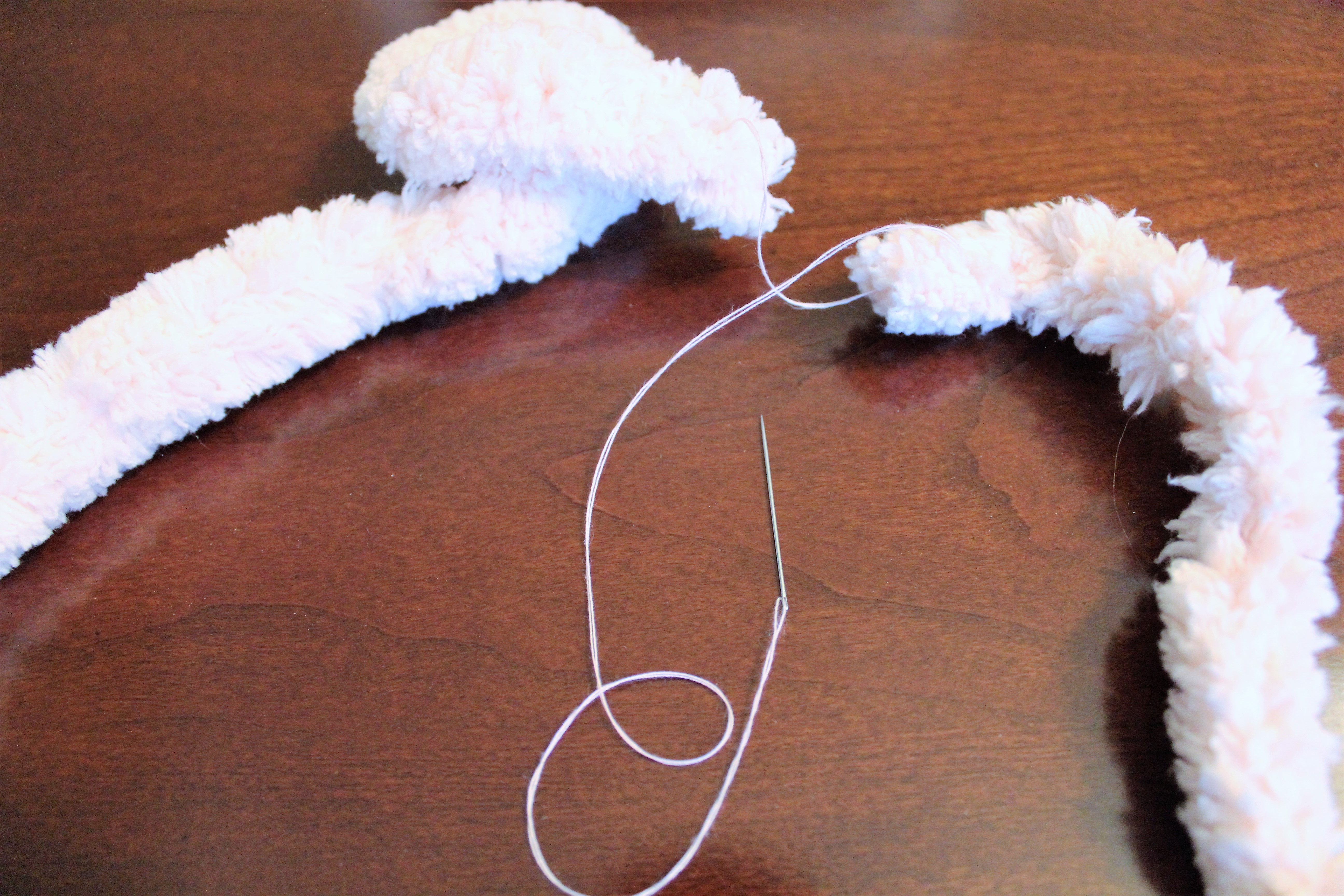- Take the needle and thread and sew the end to the side. Making sure you hide the stitches.
