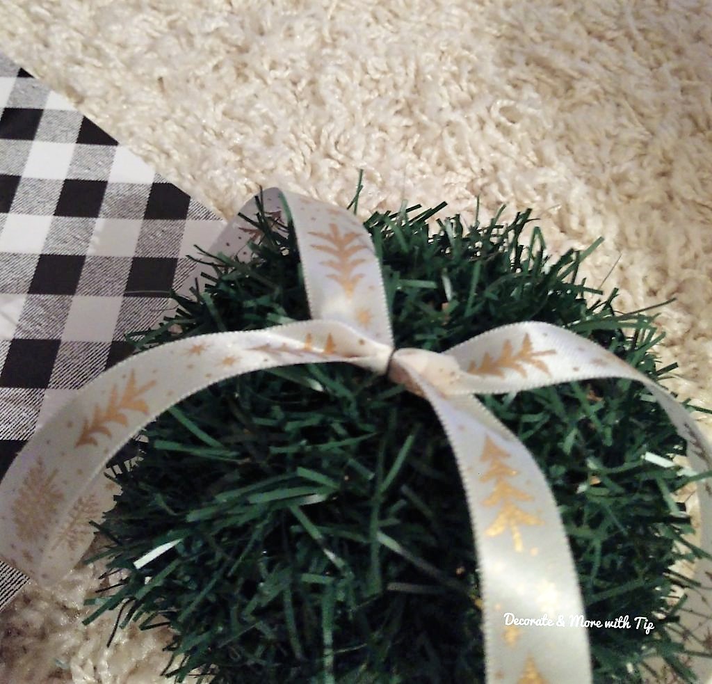 Once you have your ball covered take your ribbon and decorate it the way you like.