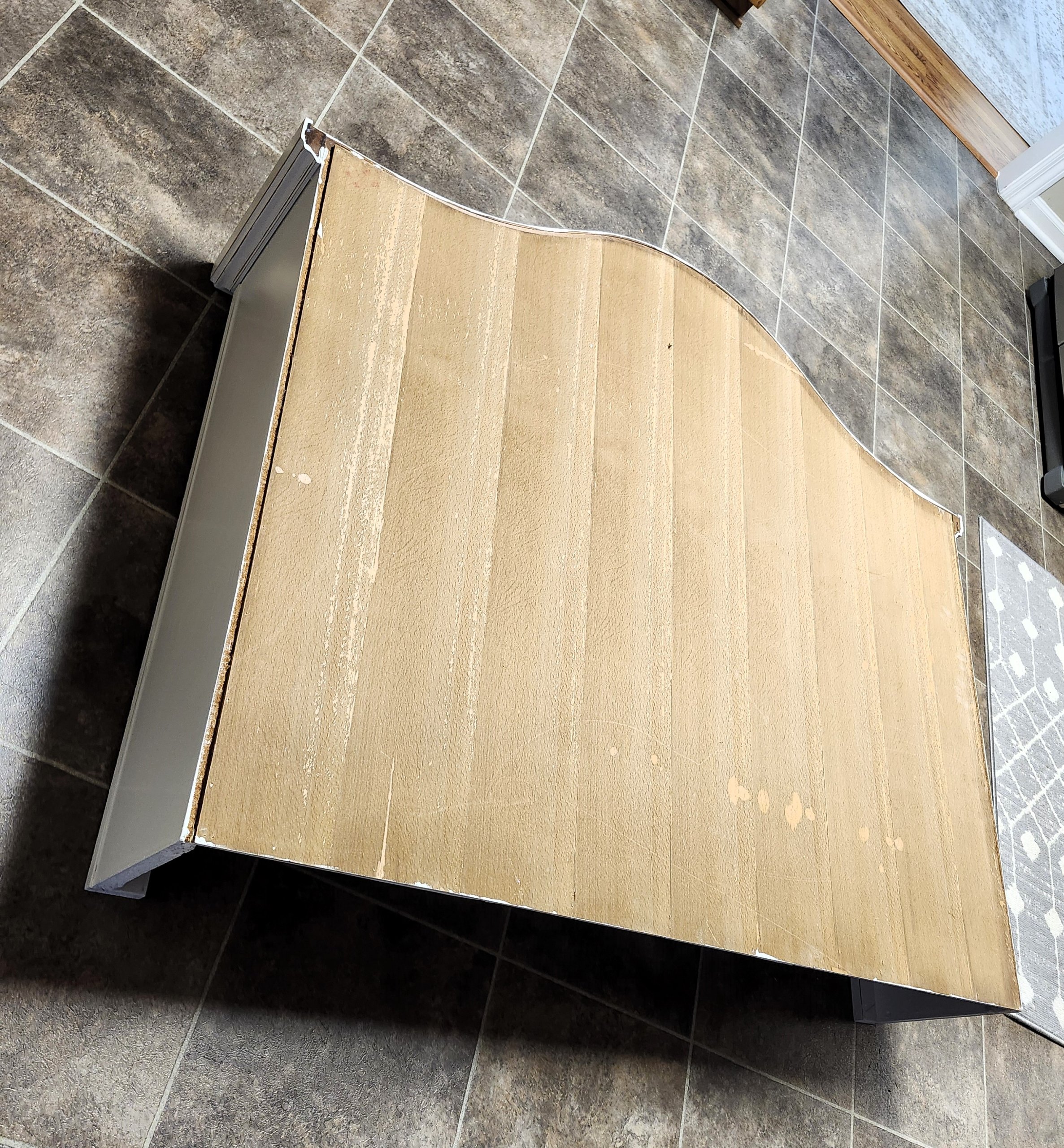 Placing the new panel down on the hutch to make sure my pattern fit. It fits like a glove!