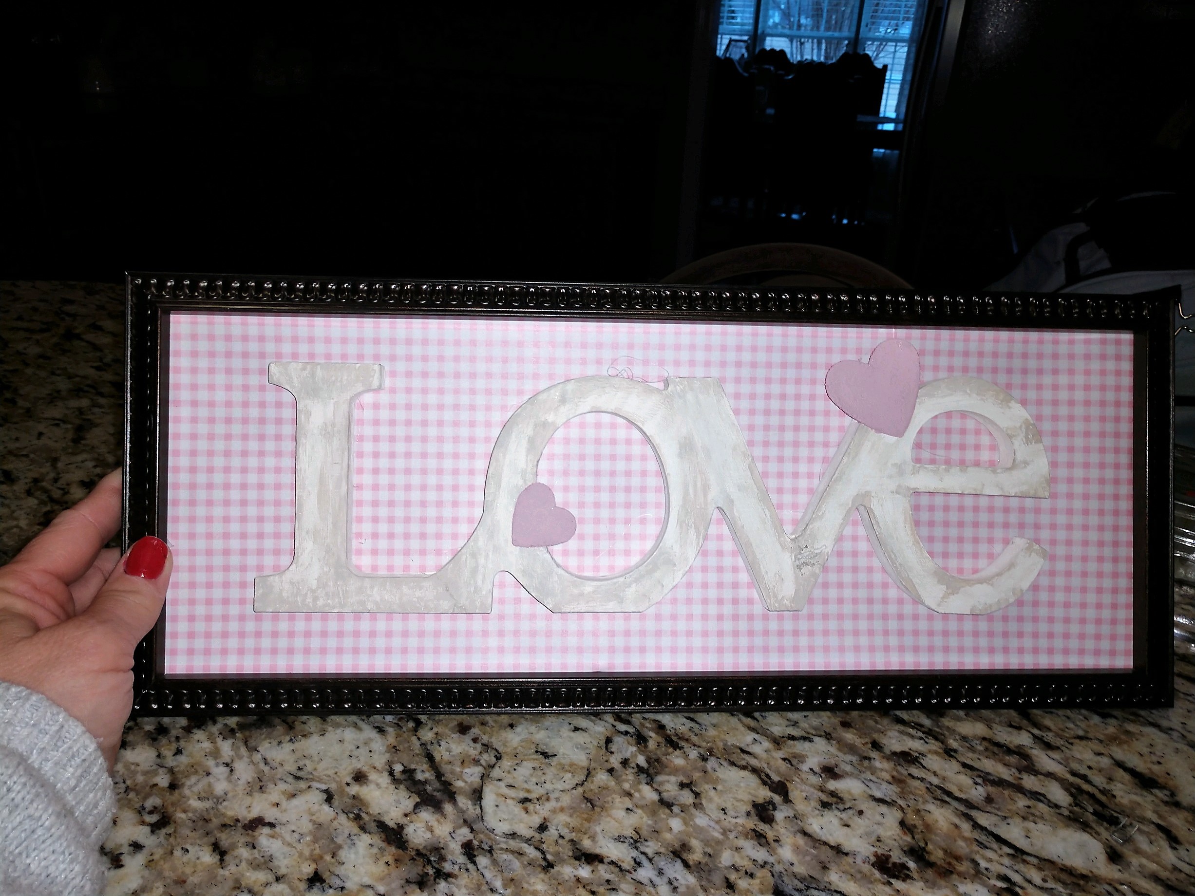 I then took the LOVE sign and applied hot glued to the back and placed it in the center of the frame straight onto the paper.