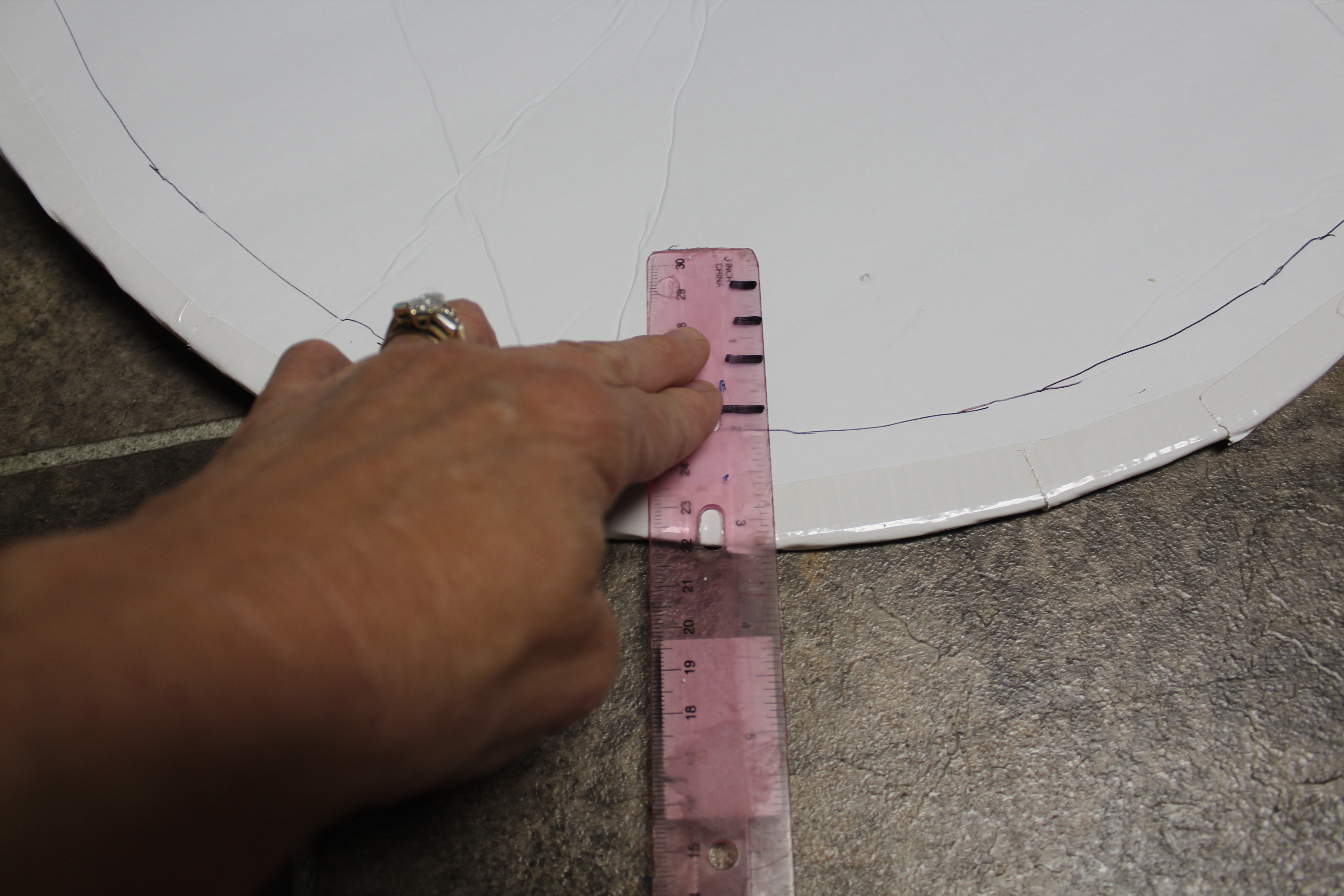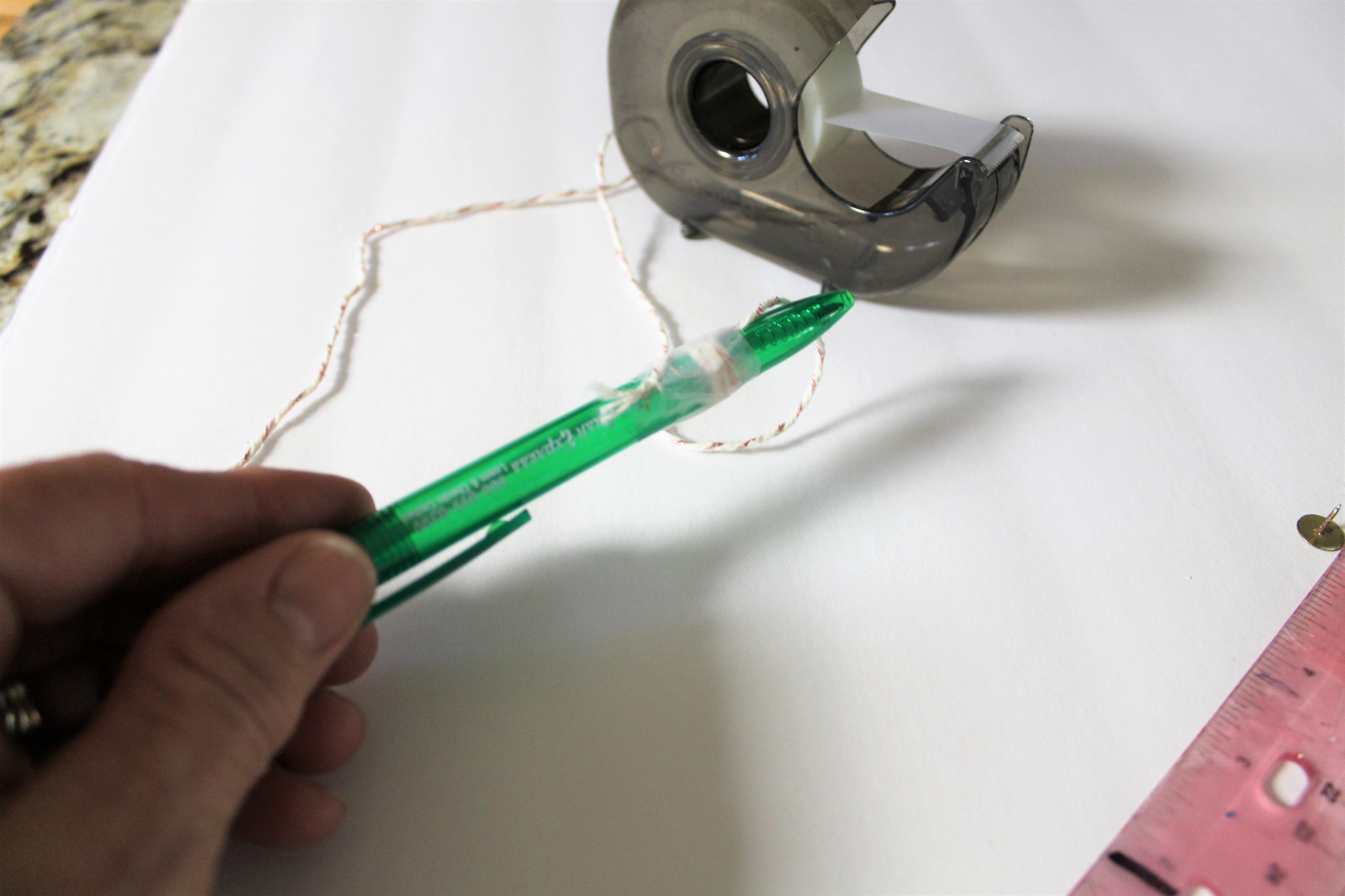 My first step was making a circle on my foam board, I grabbed a piece of string, pen, tape, thumb tack and a ruler.