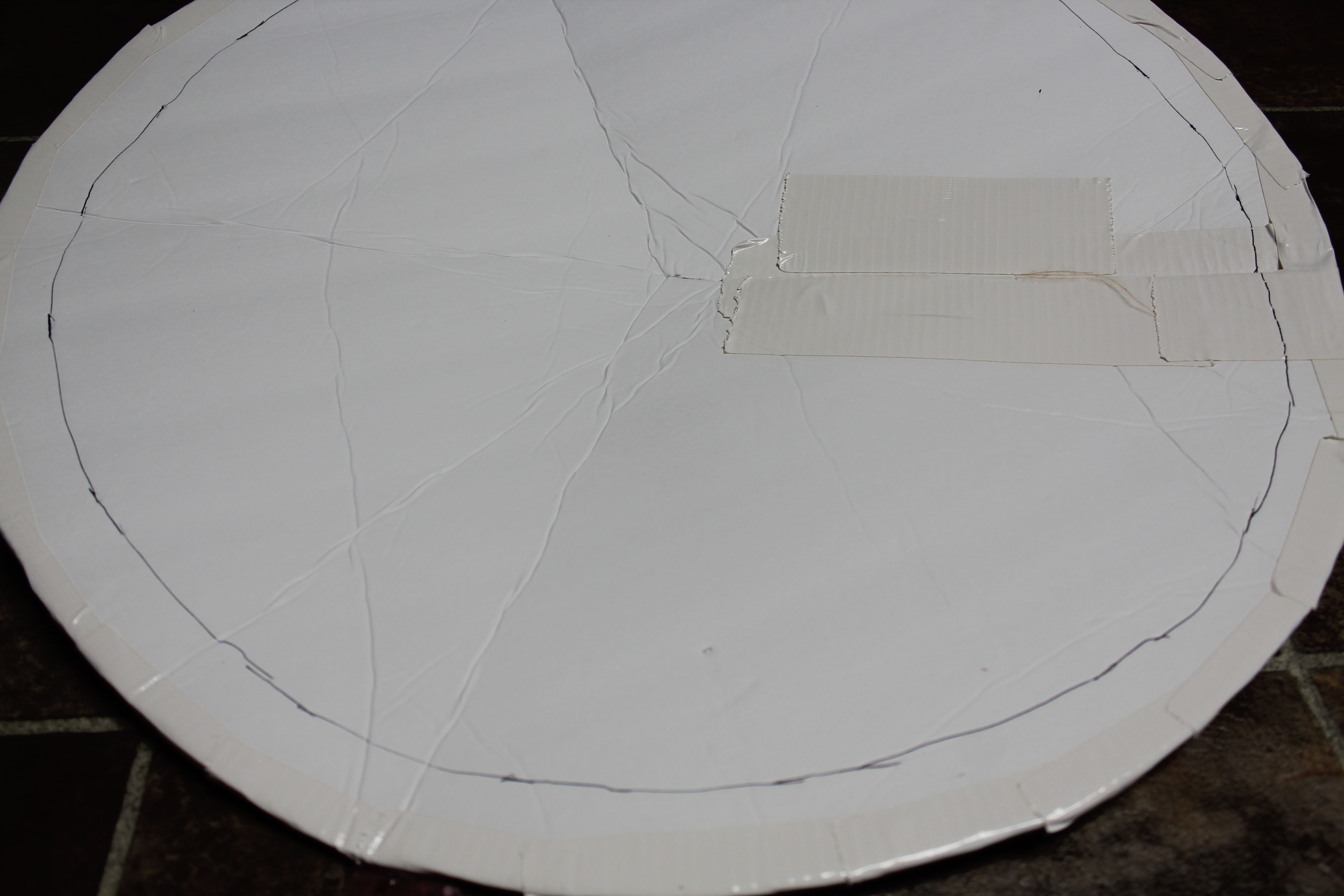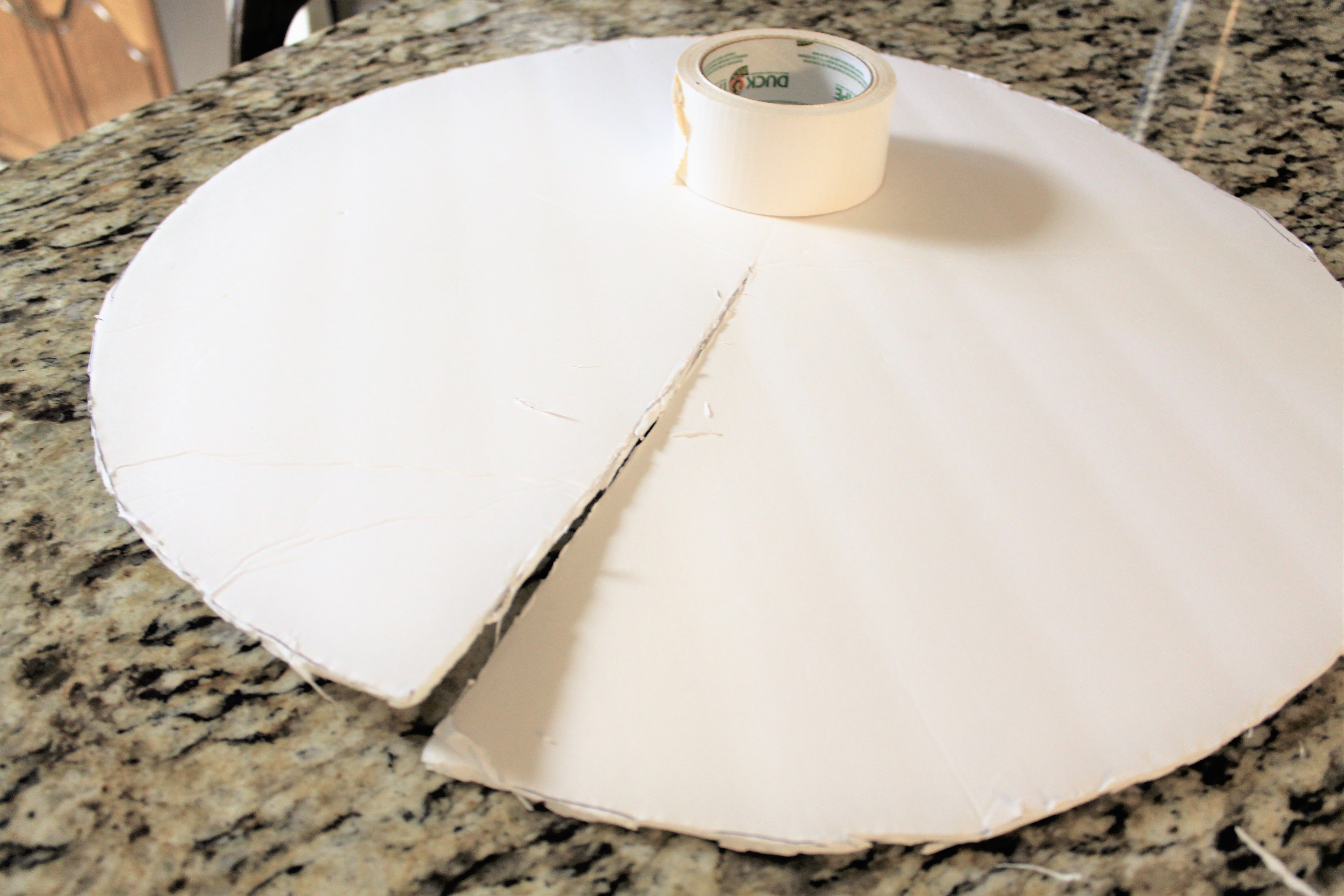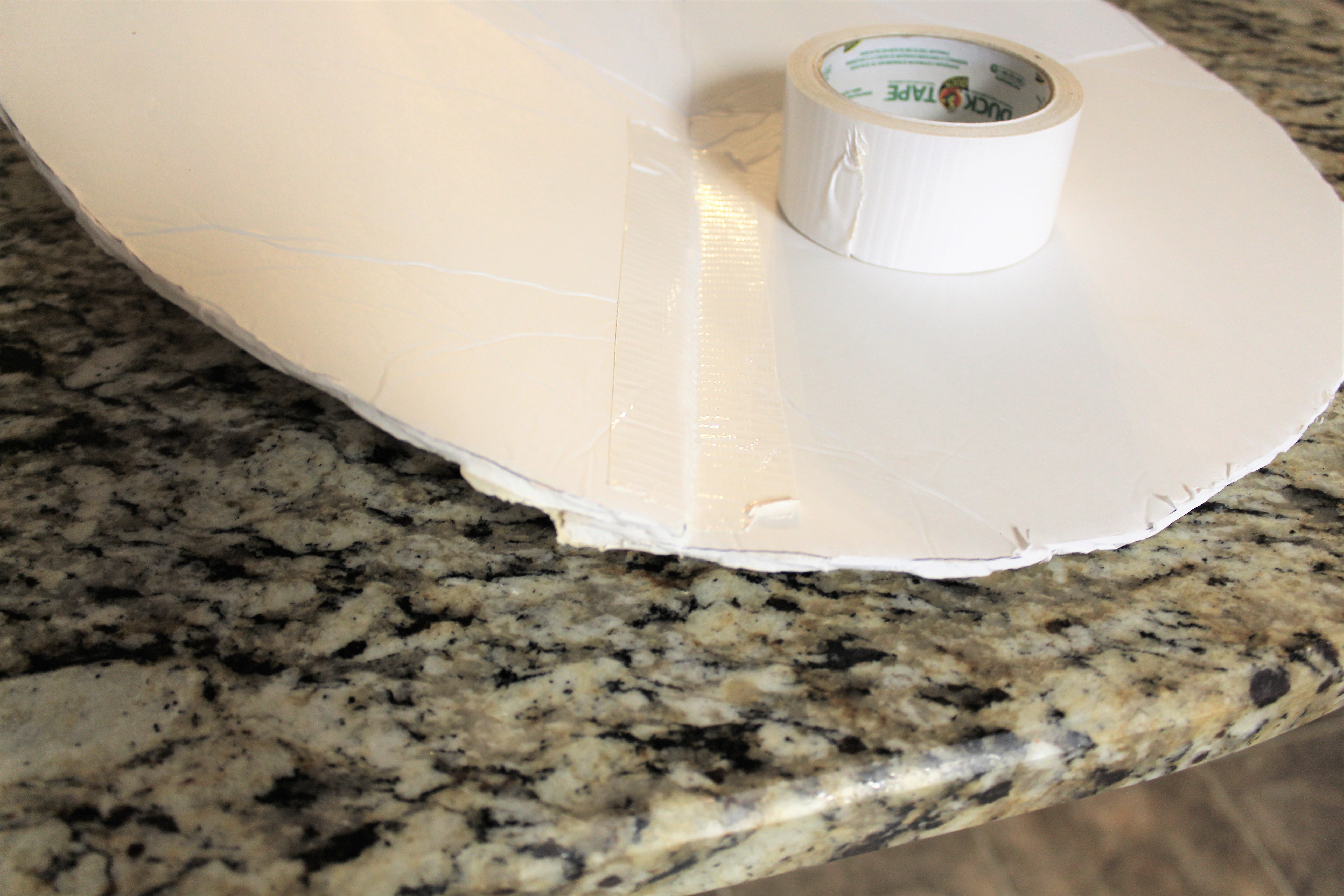 I cut a slit from edge to center in my circle.  Overlapping the edges about 1 1/2 inches, taping it together with white duct tape.