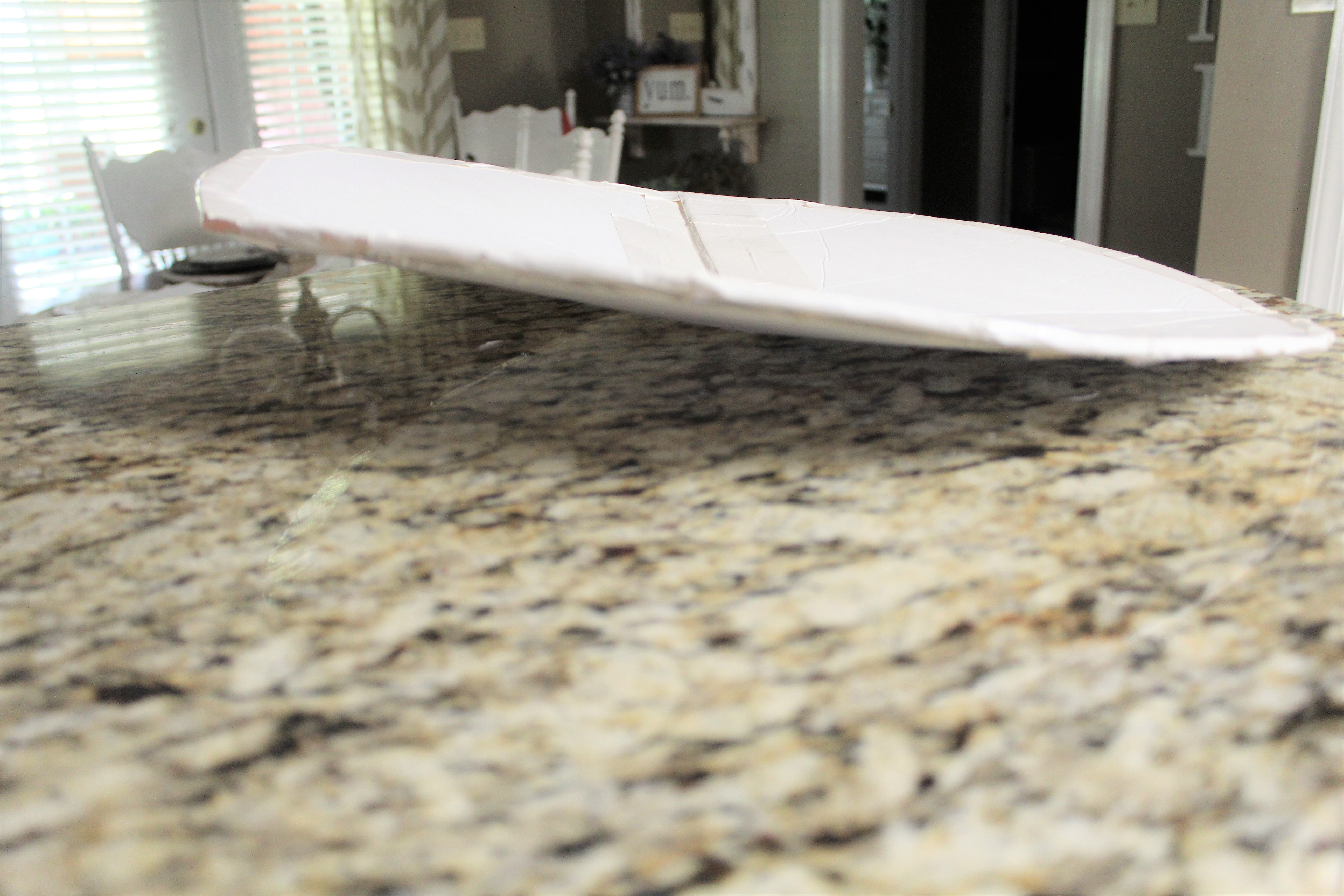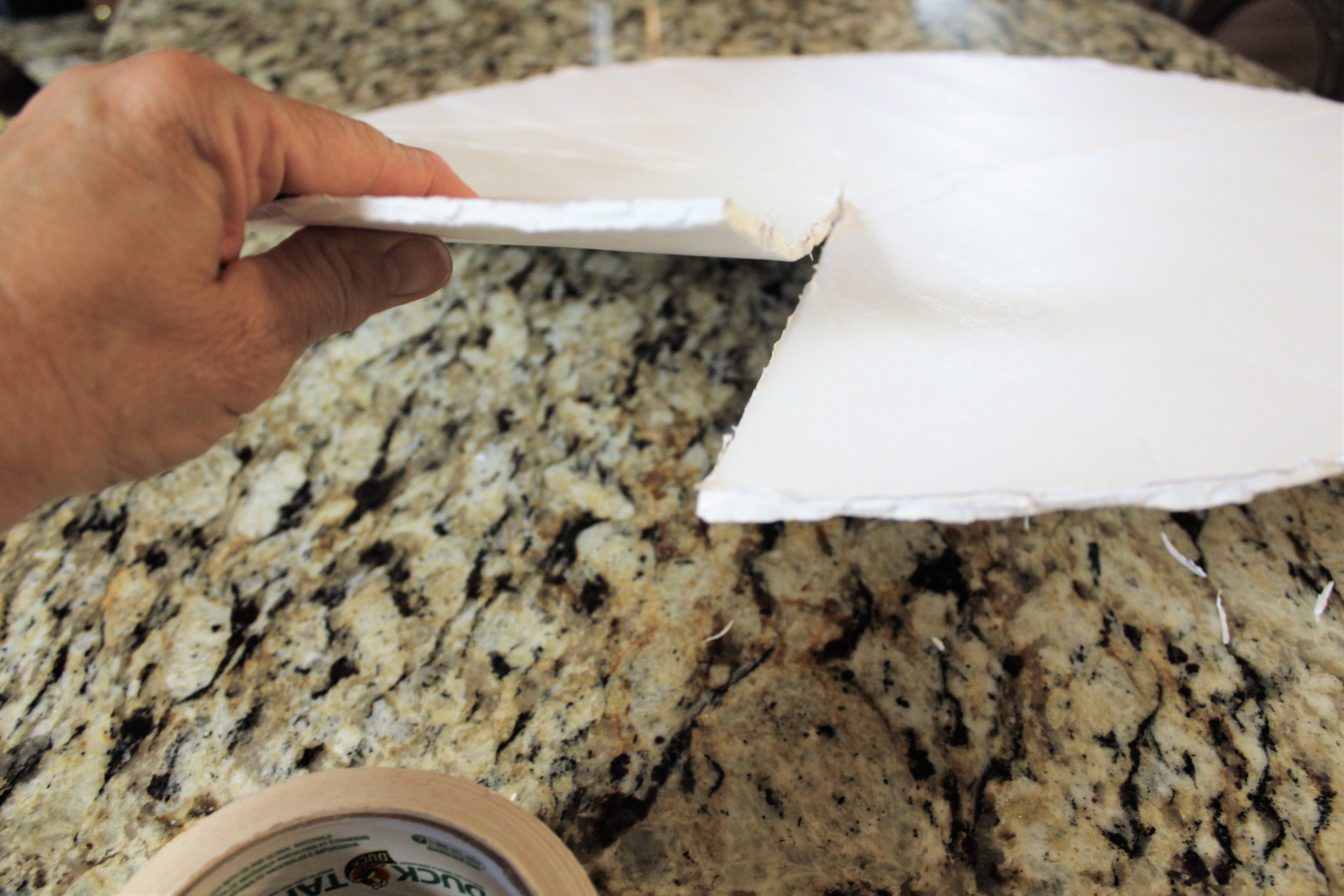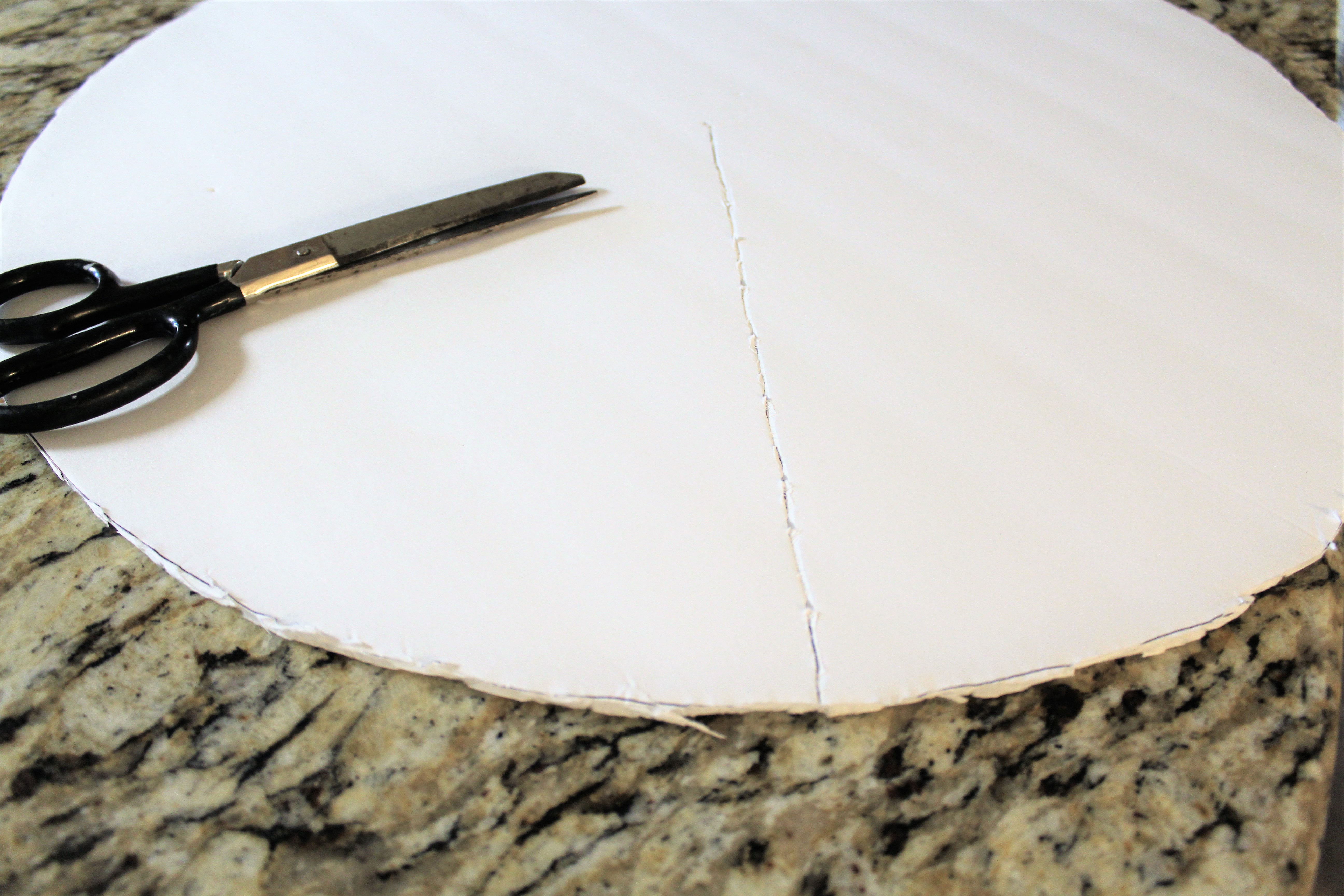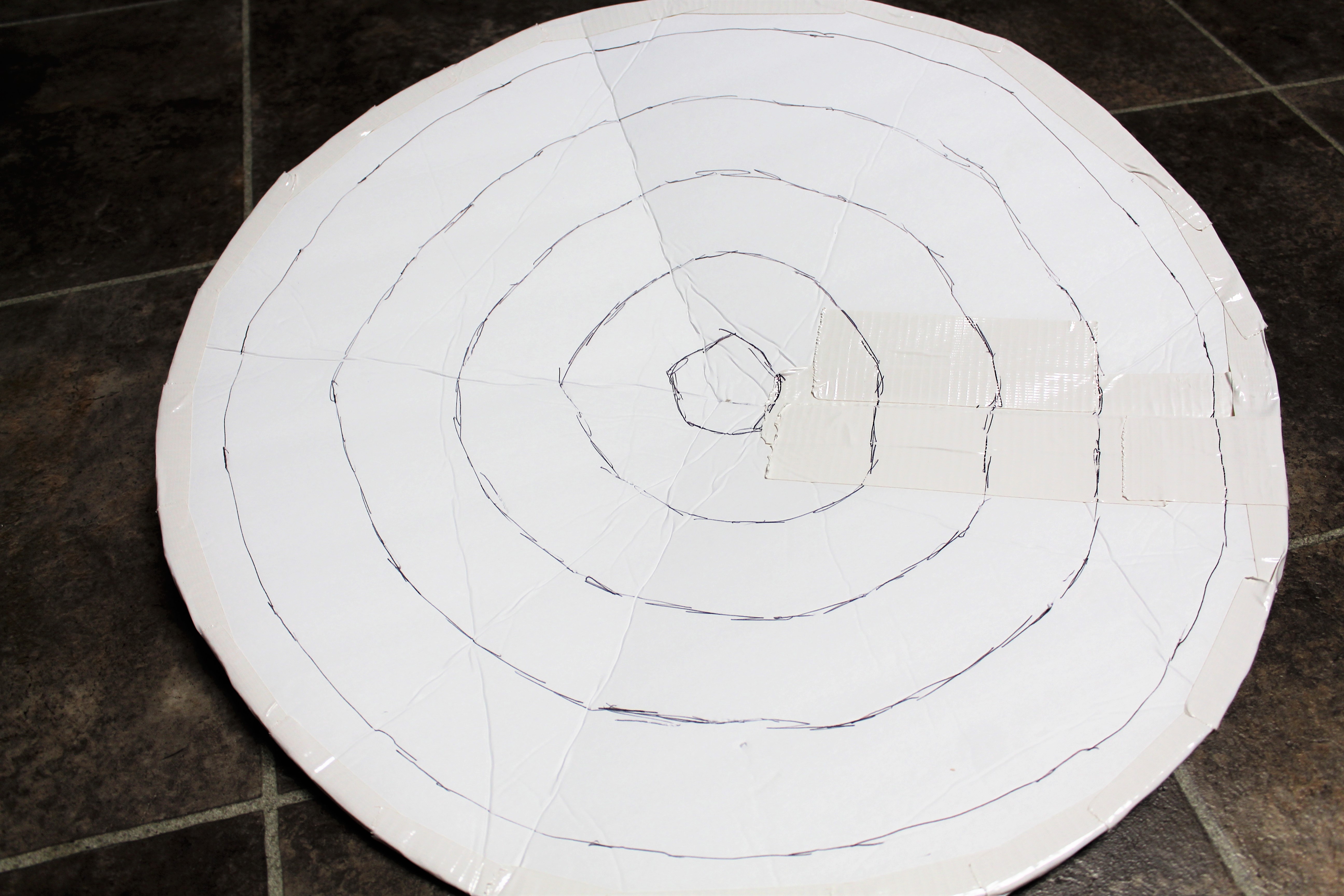 I cut a slit from edge to center in my circle.  Overlapping the edges about 1 1/2 inches, taping it together with white duct tape.