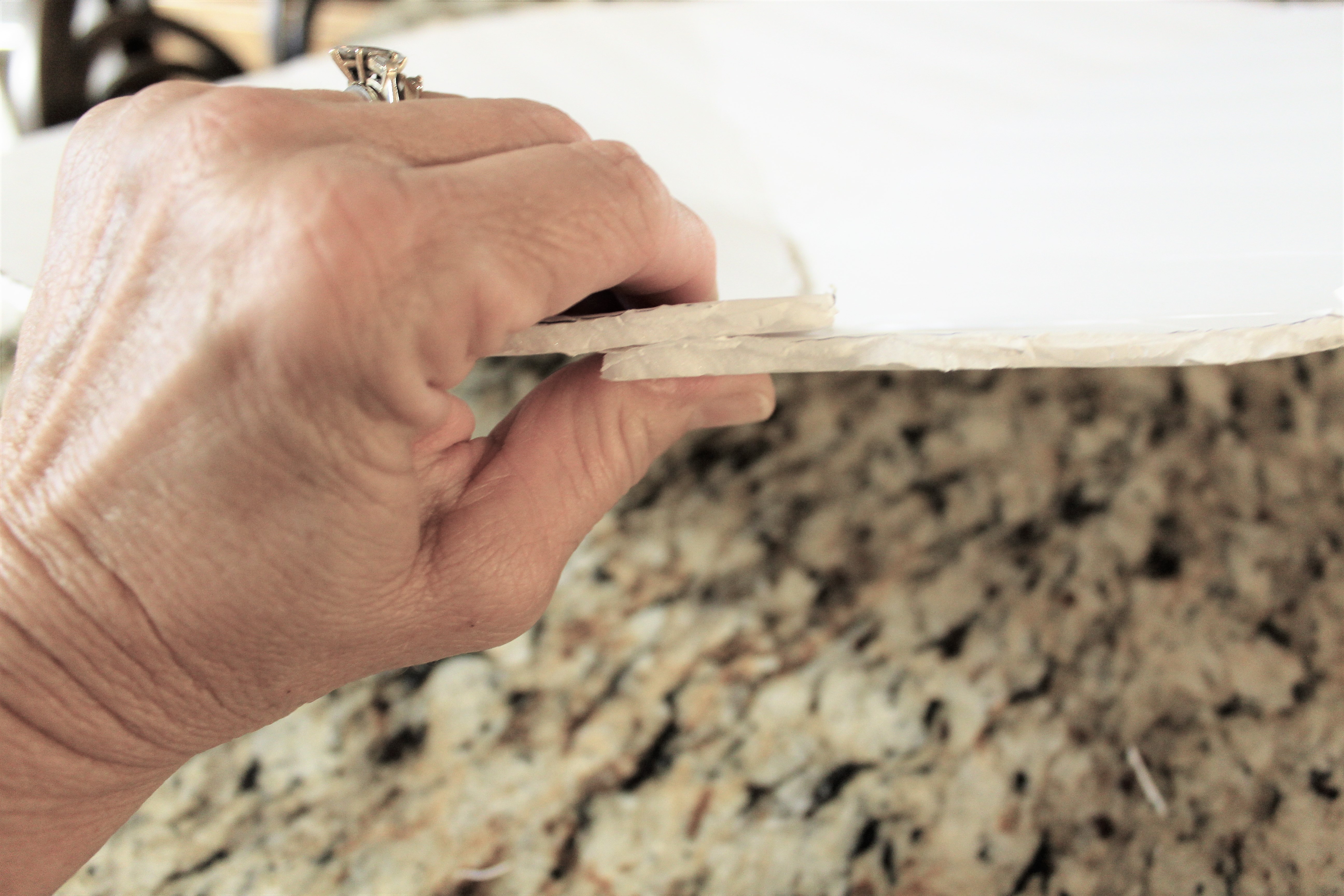 I placed a little picture ring on the back with hot glue.  This is so light that it will be strong enough to hold.  It’s as light as feathers. 🙂