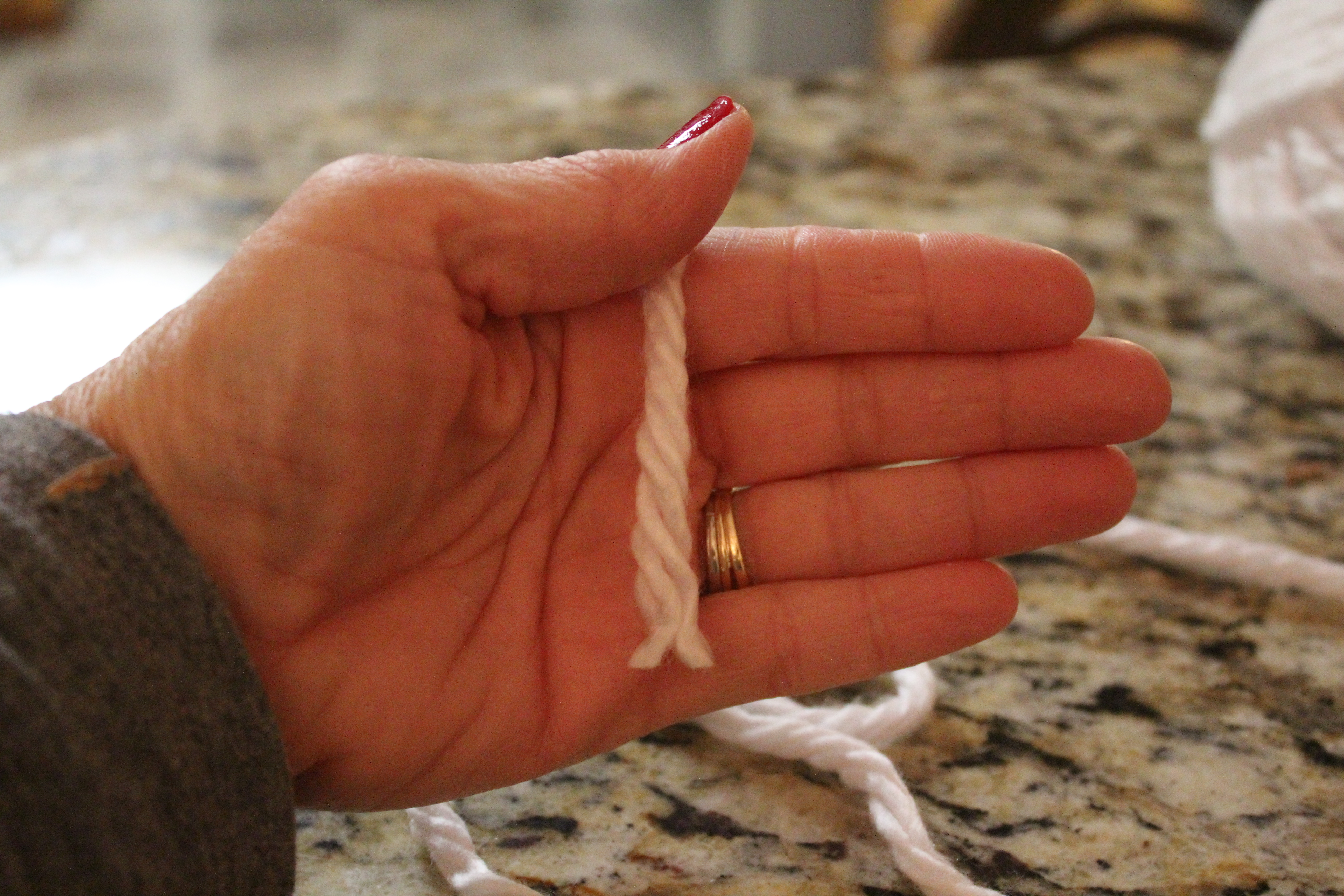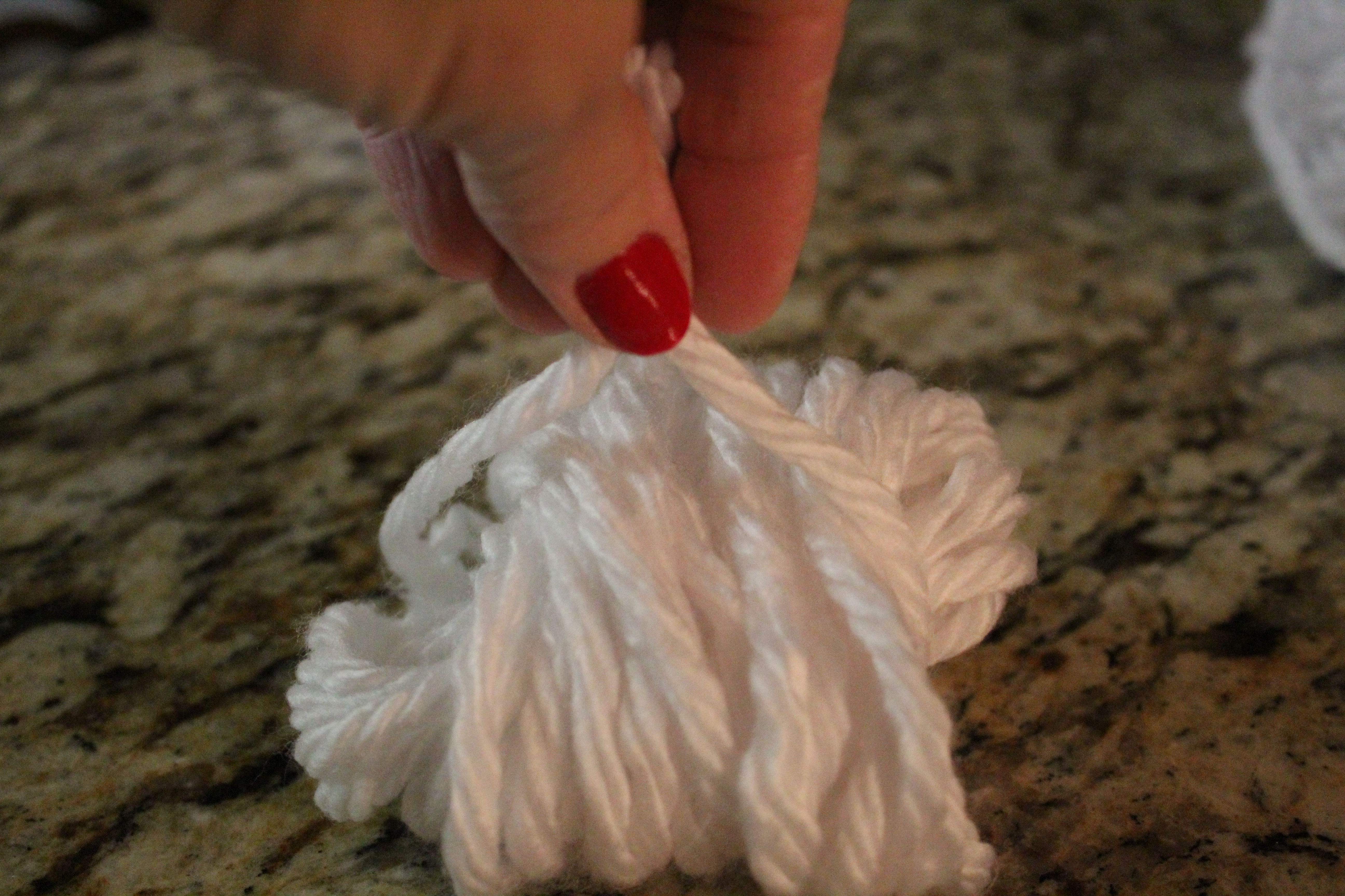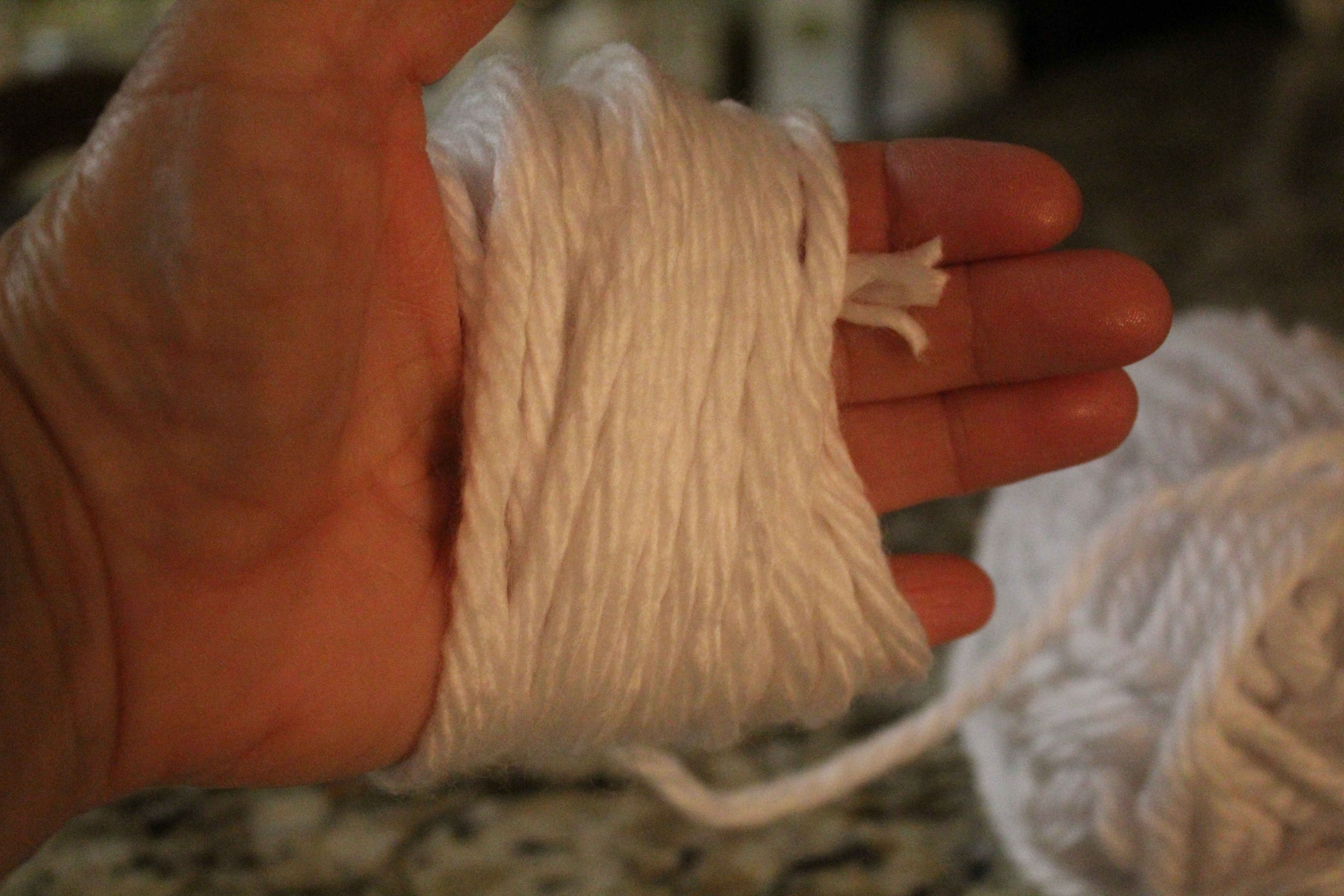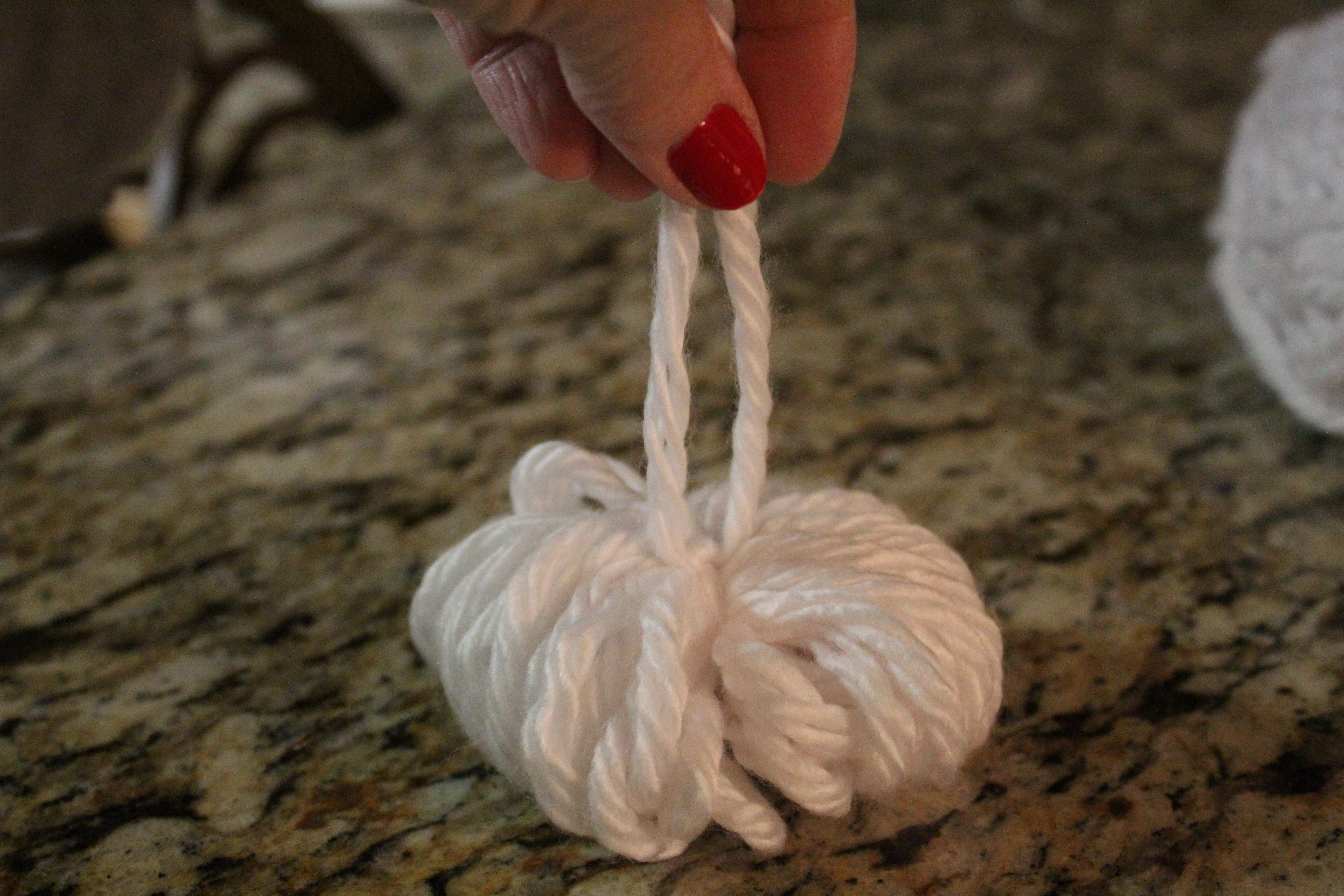 I used my 4 fingers ad wrapped the yarn 30 times around.  Depending on how large your hearts are will be how large your pom-poms should be.