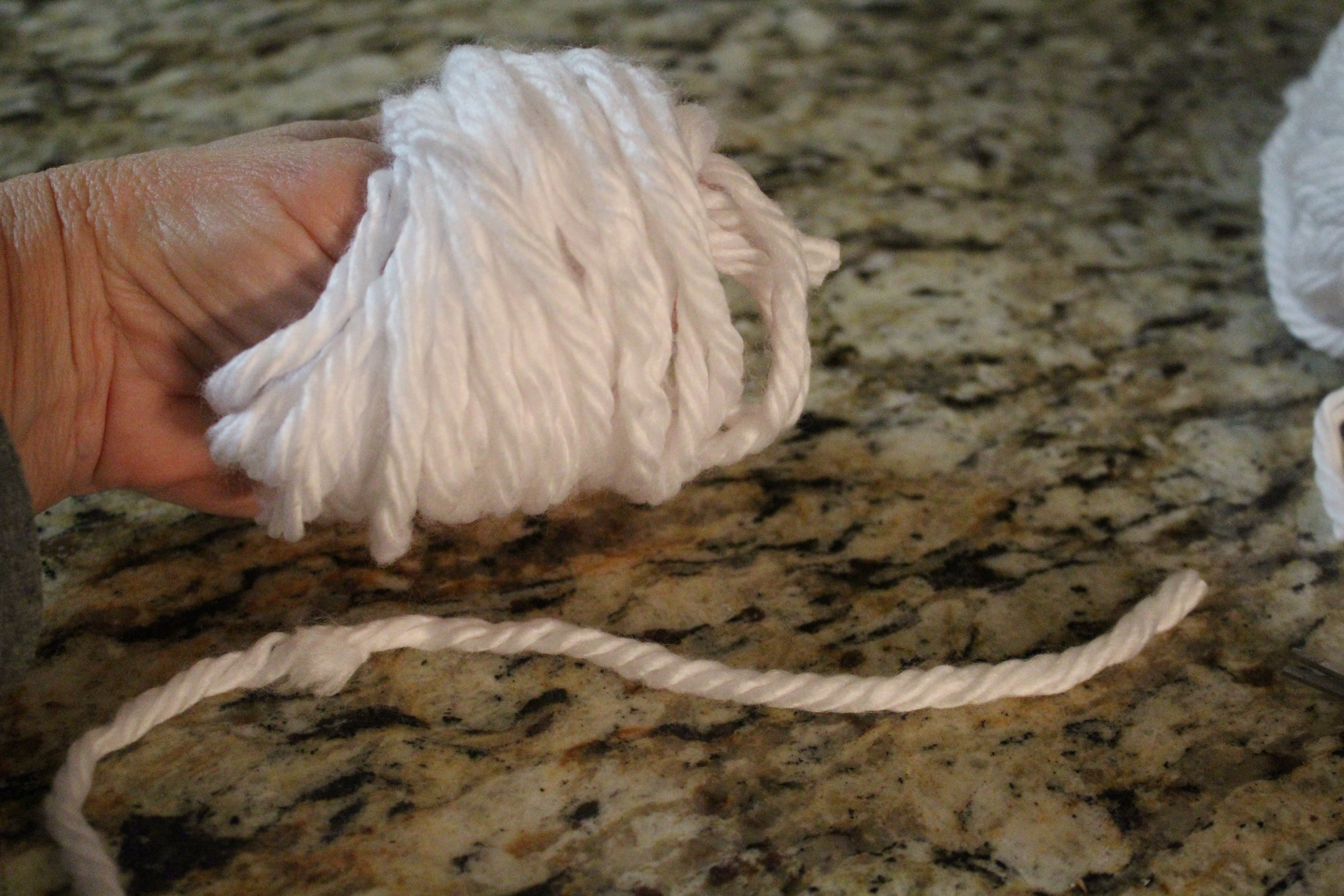 Now start wrapping the yarn until you cover the cardboard.  (I used the white in the photo because it was brighter on the cardboard).
