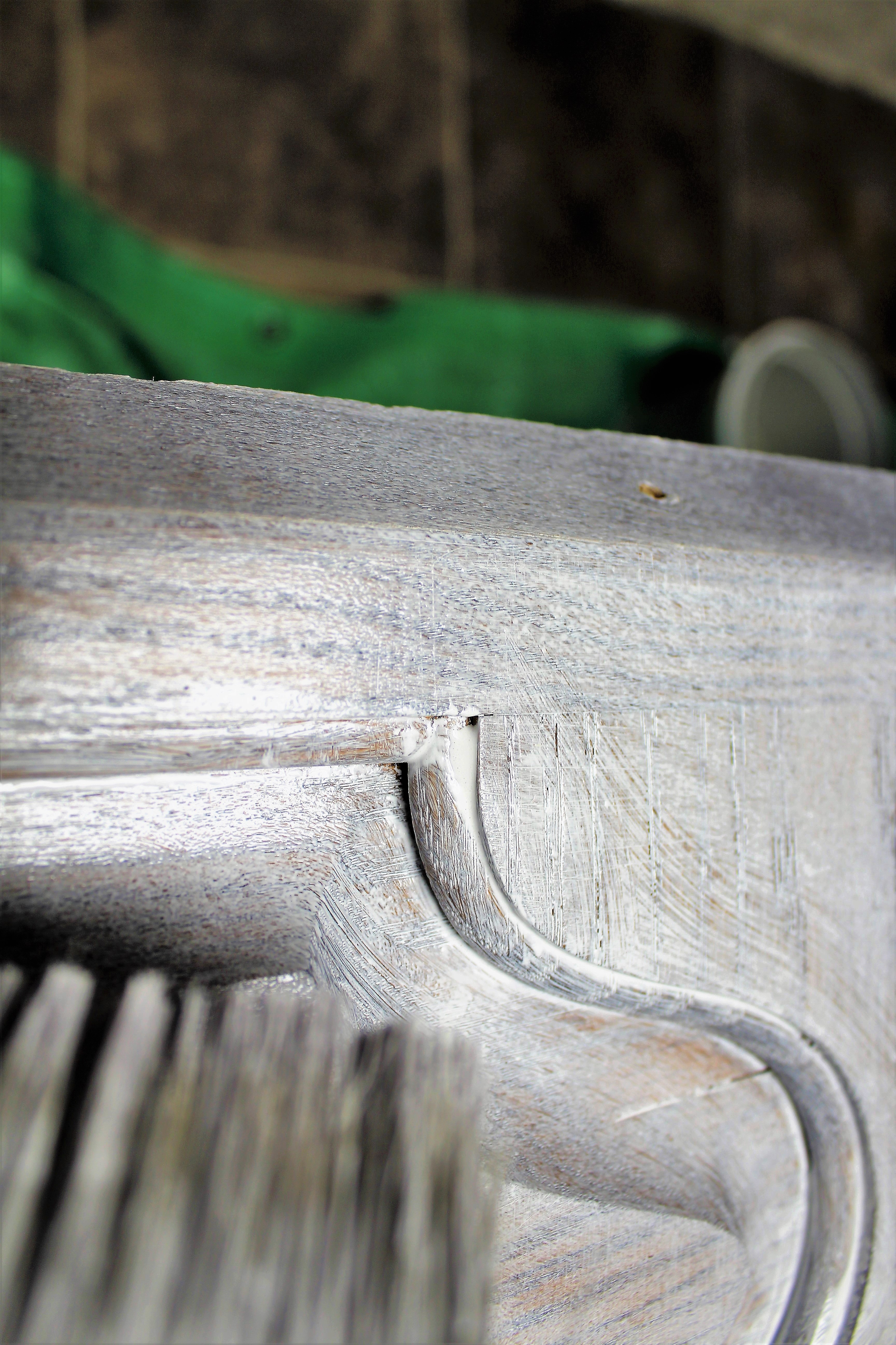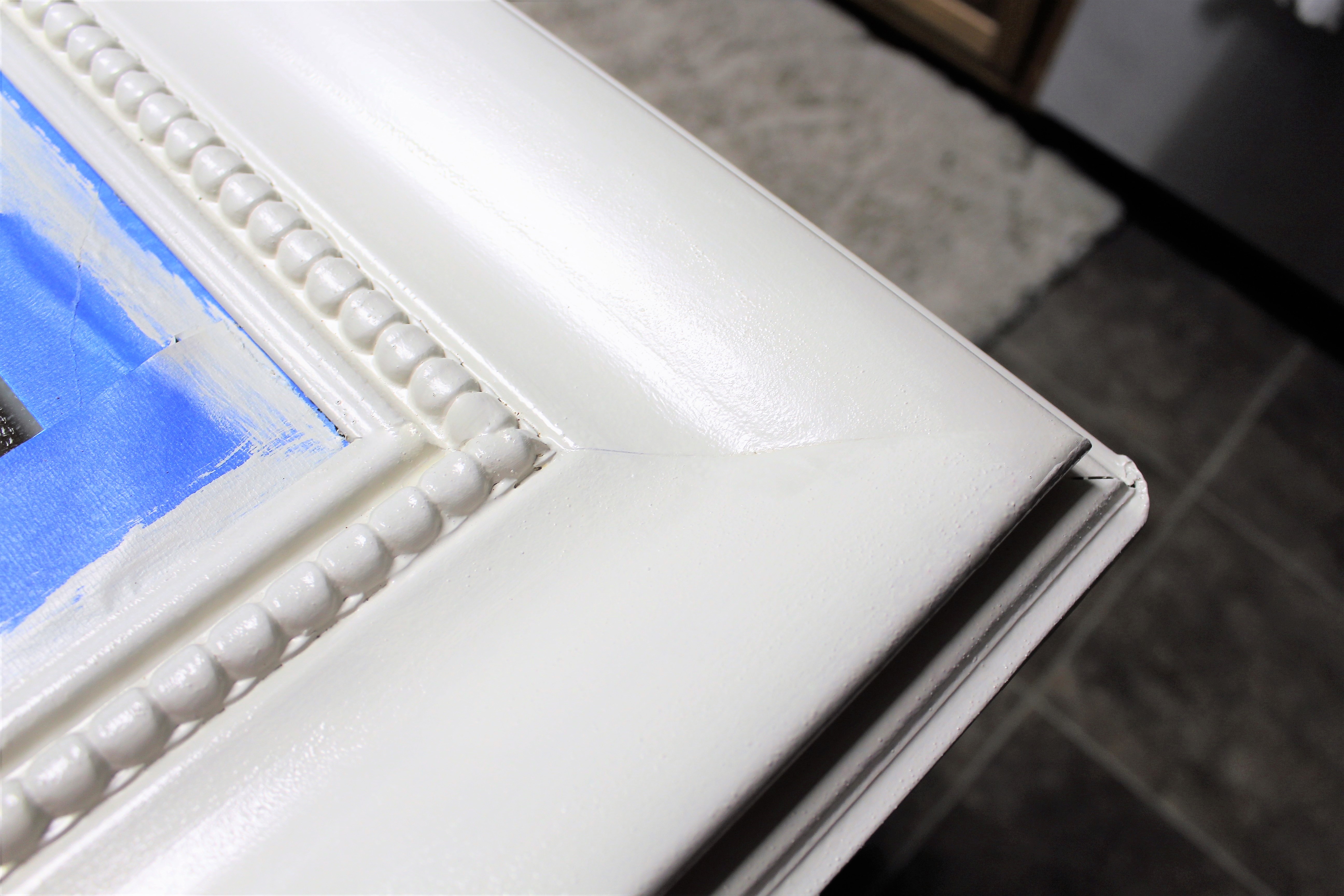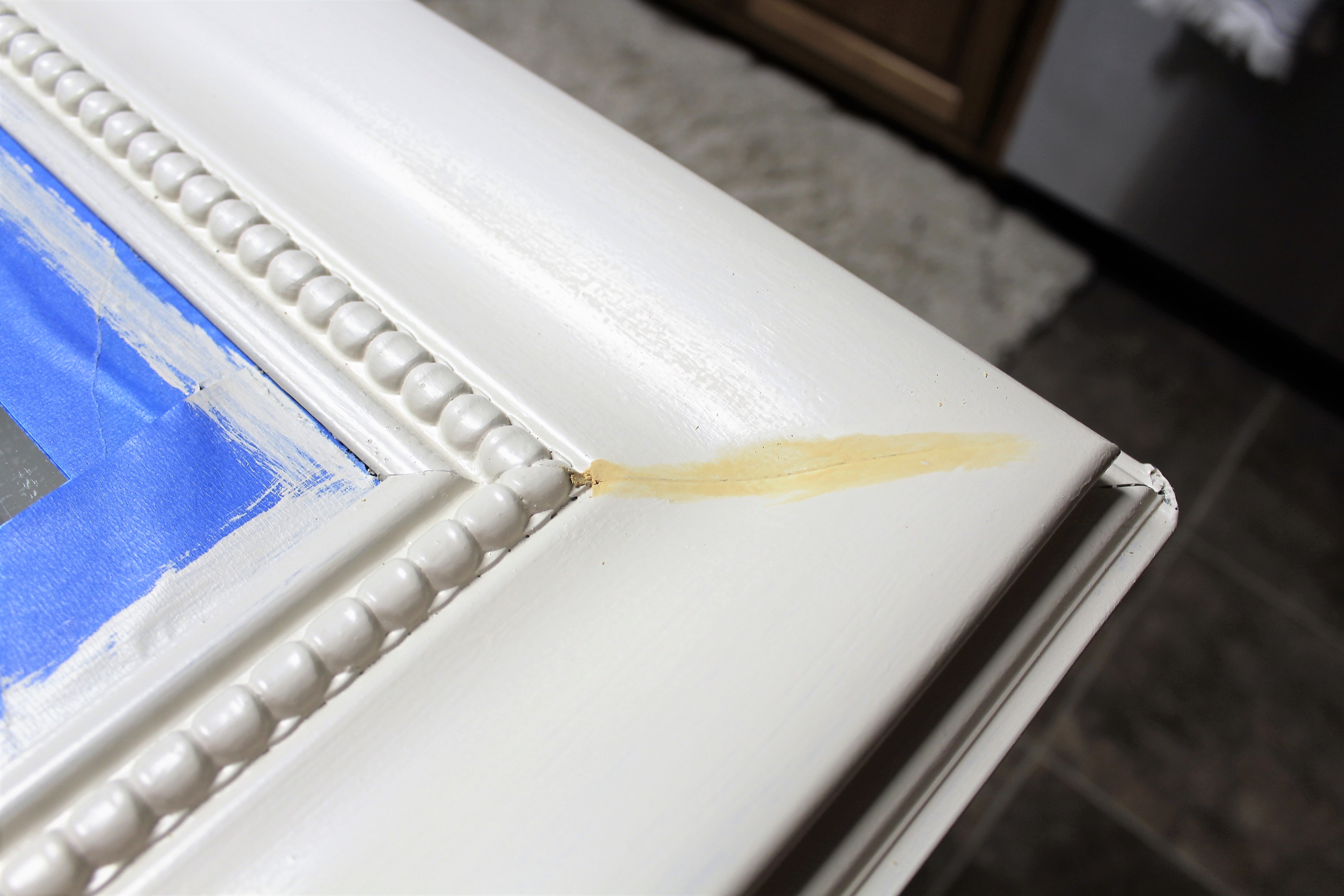 When painting my mirrors, I noticed the frame had space in each corner.  I took some wood filler and filled in the spaces, sanded and painted.  Much better !