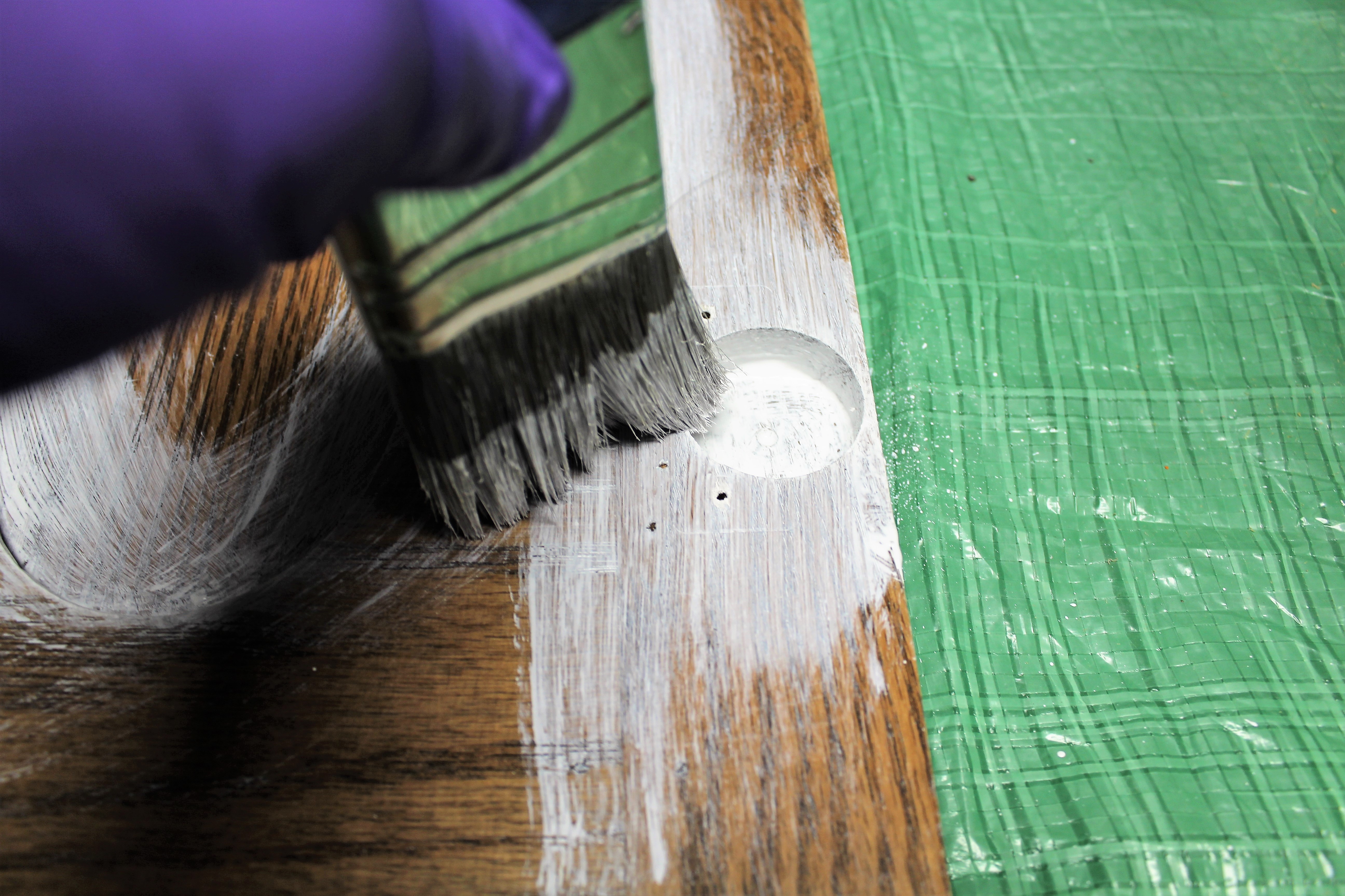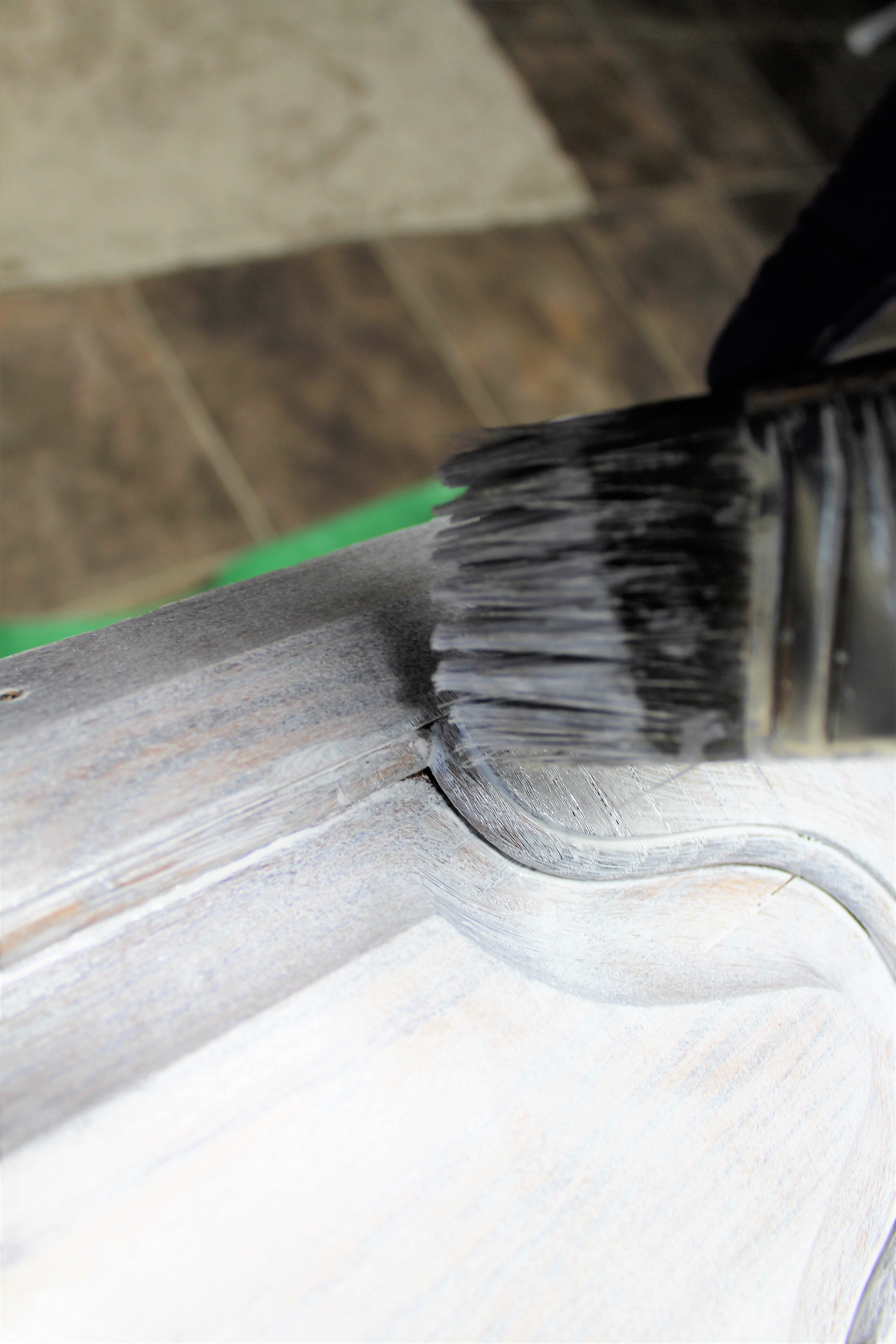 3.  Making sure there are no drips or puddles, I take my paint brush and sweep away.