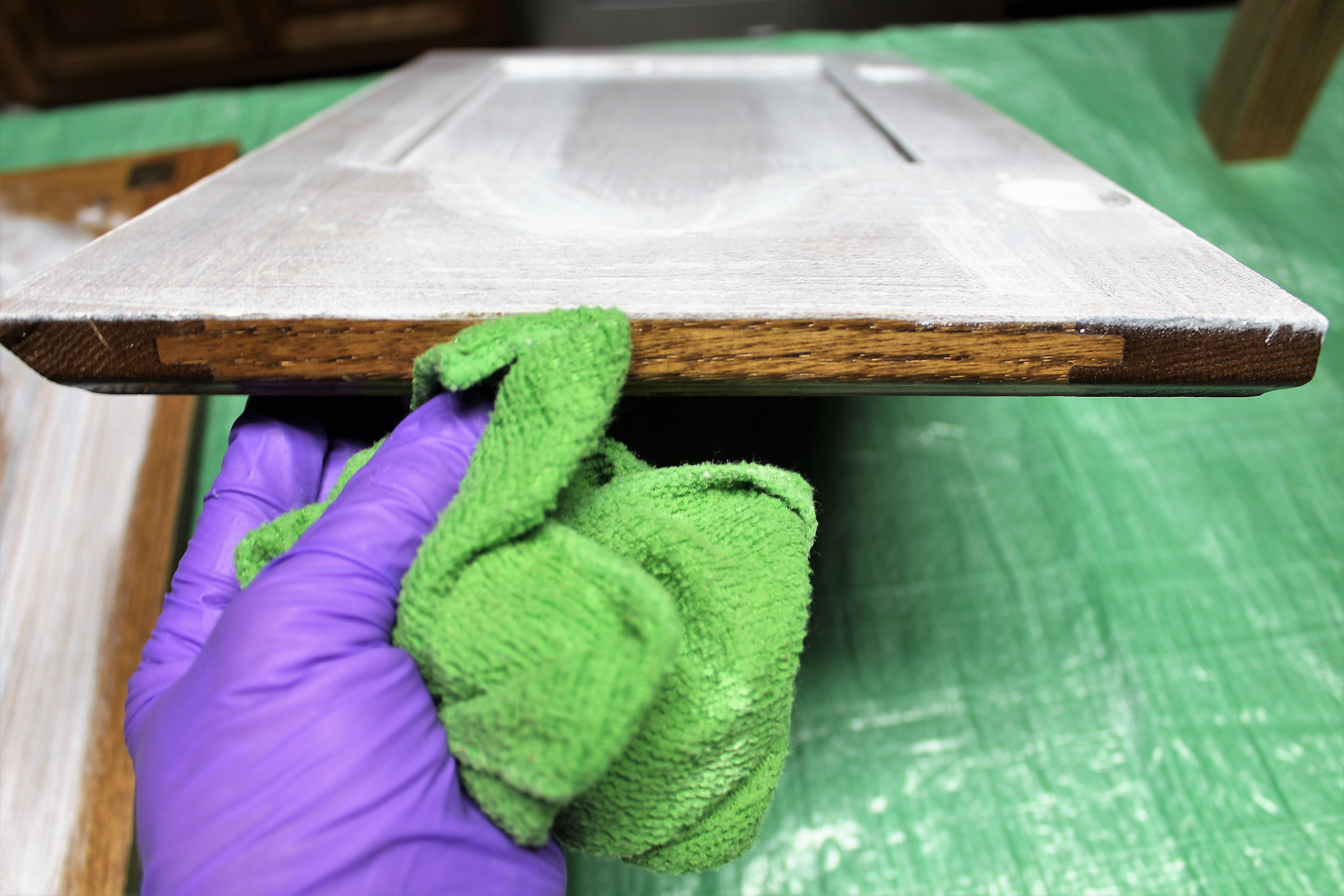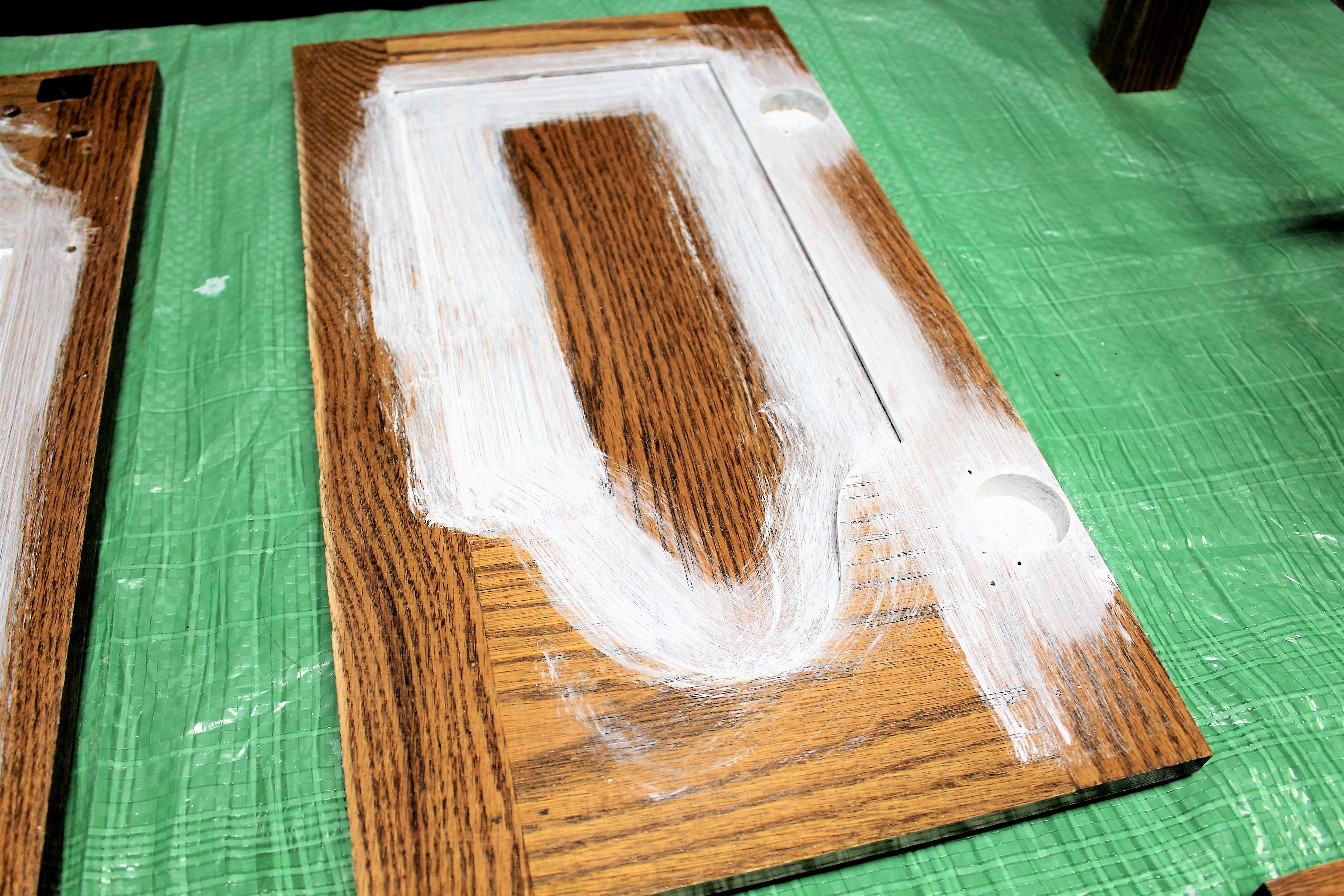 I wiped down the cabinet with Simple Green before I started priming and painting.  I normally use TSP cleaner or mineral spirits, but I didn’t have any on hand.
