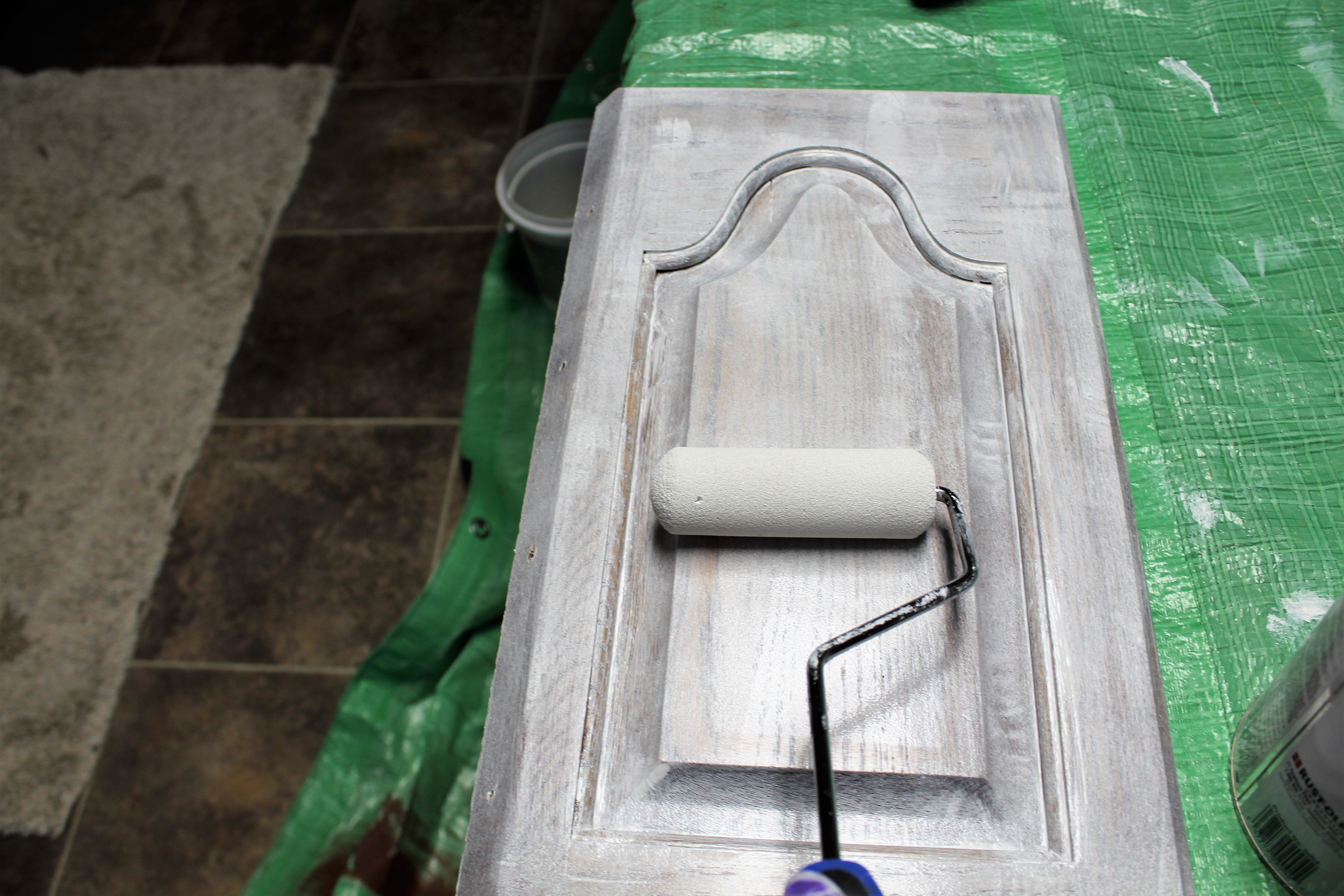 I wanted to share how I paint cabinet doors.  Since it has groves and crevices a roller can not get into, I use a paint brush first.  Here are the steps I take.