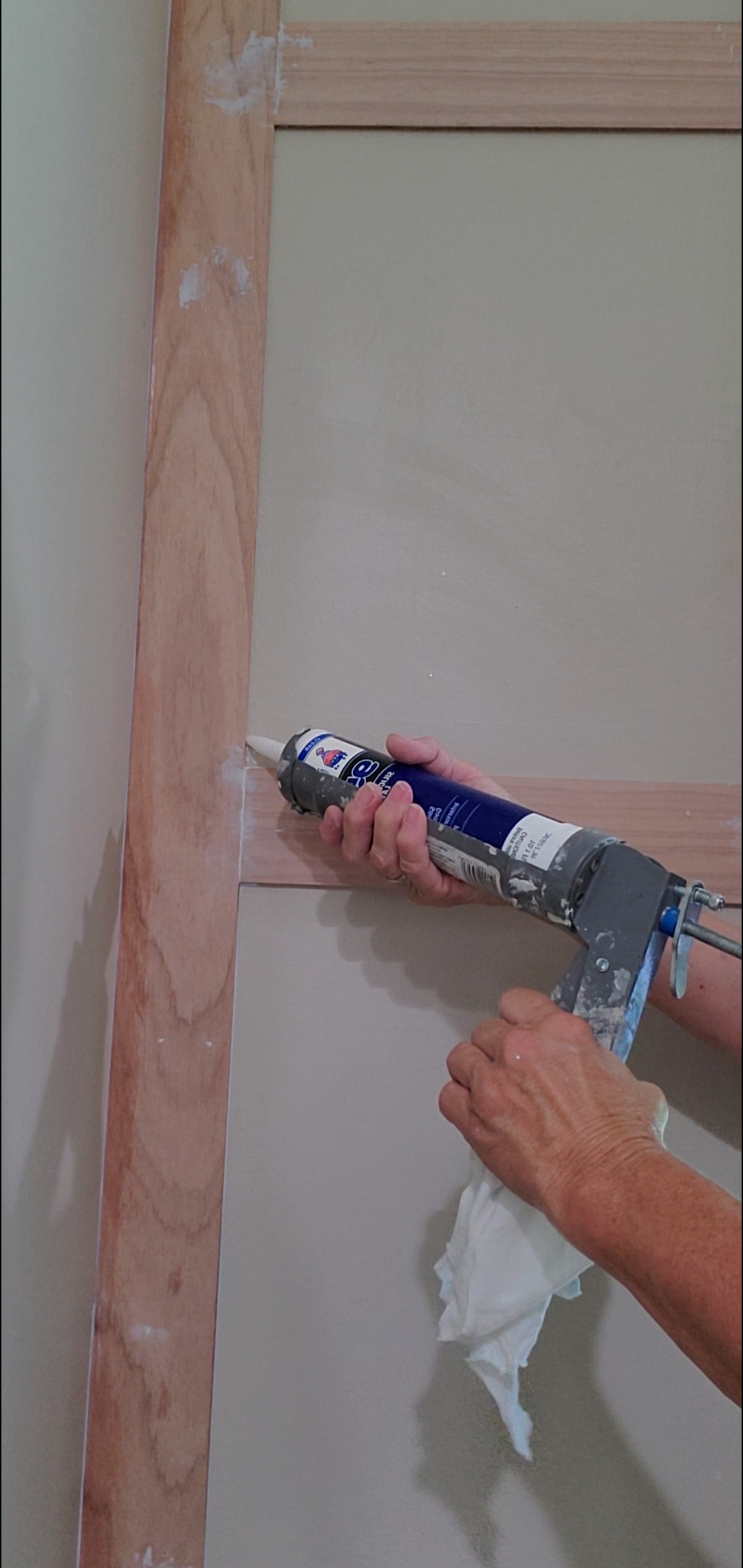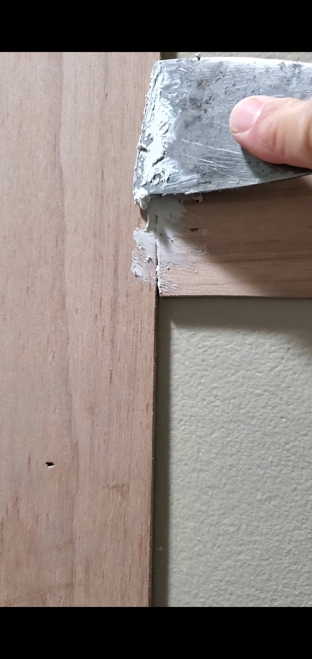 Another not so fun project day, filling in all the crevices and nail holes with Painter’s putting and paintable caulk to fill in all the gaps.