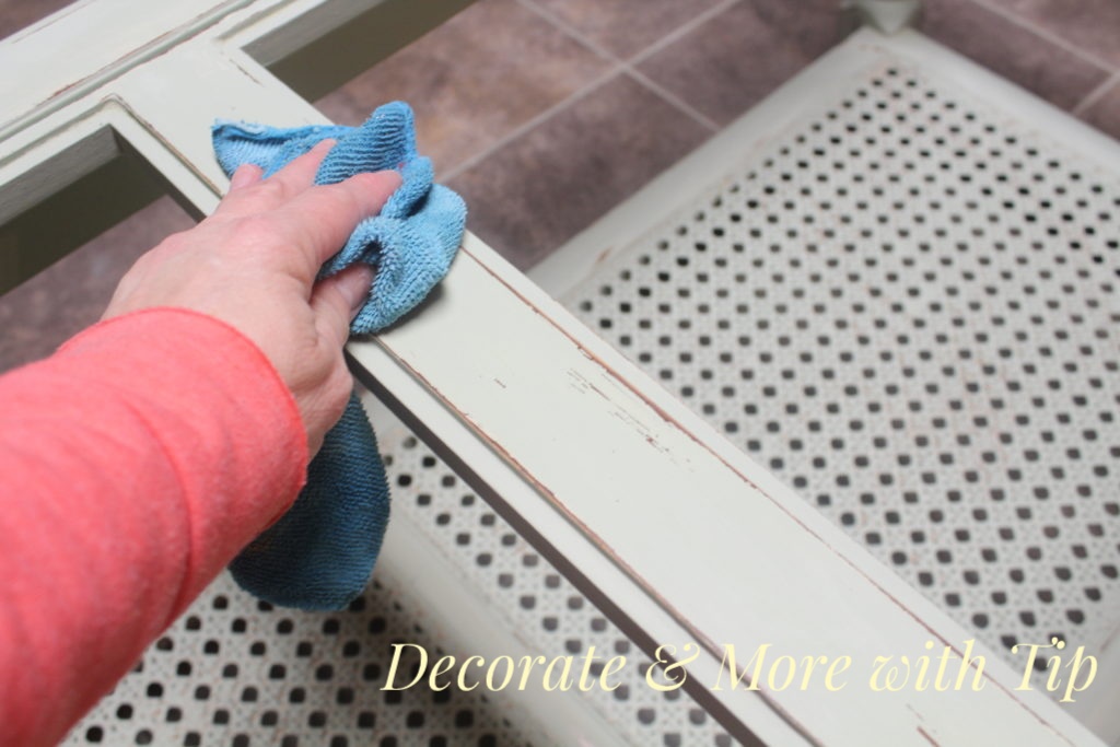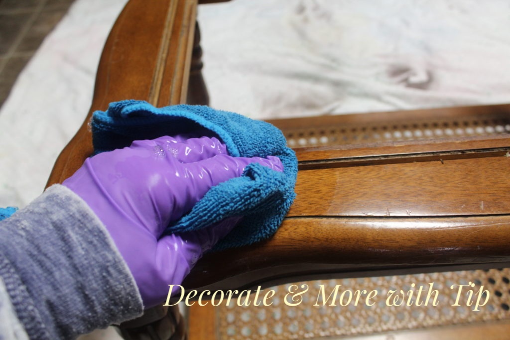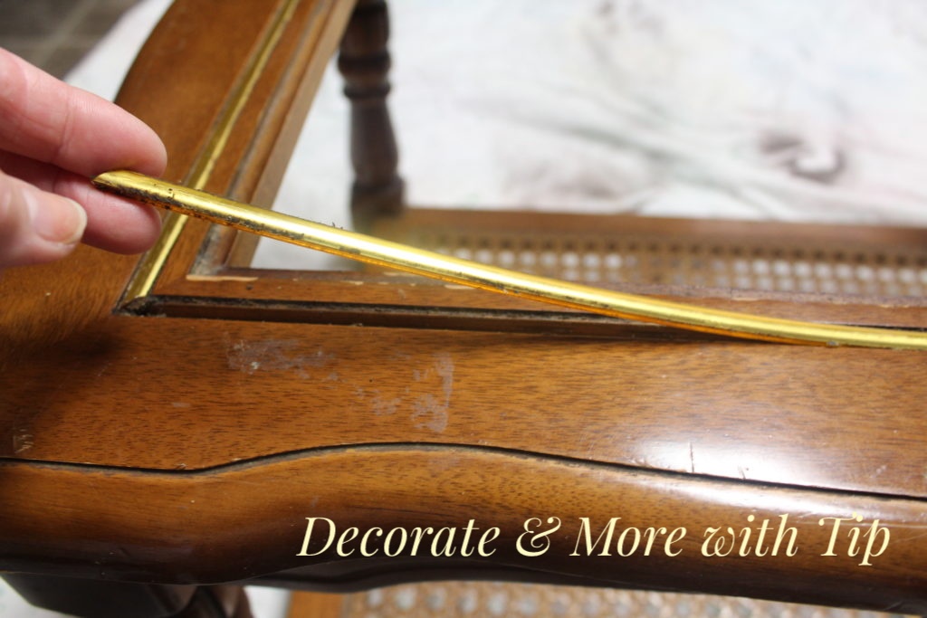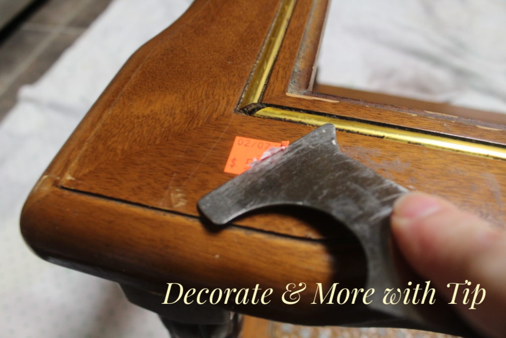 The first thing I needed to do was removed the price sticker and the brass trim piece. I clean the table really good with just soap and water.