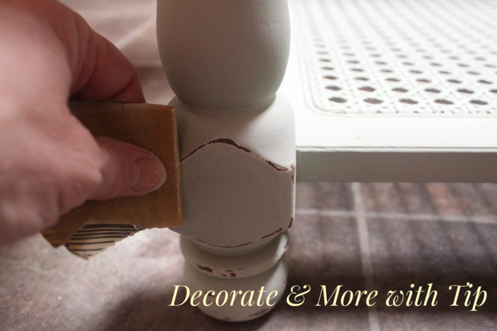 Next step is the distressing part. I took 220 grit sandpaper and distressed the table. After the sanding I wiped it down with a damp cloth.