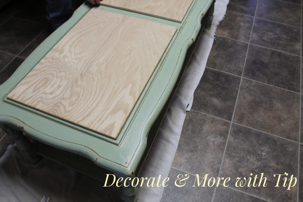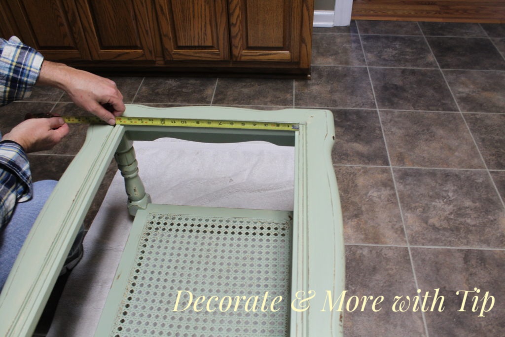 Now it is time to work on the places where the glass inserts were missing. I wanted to put a cushion insert there. My husband measured and cut the boards for me.