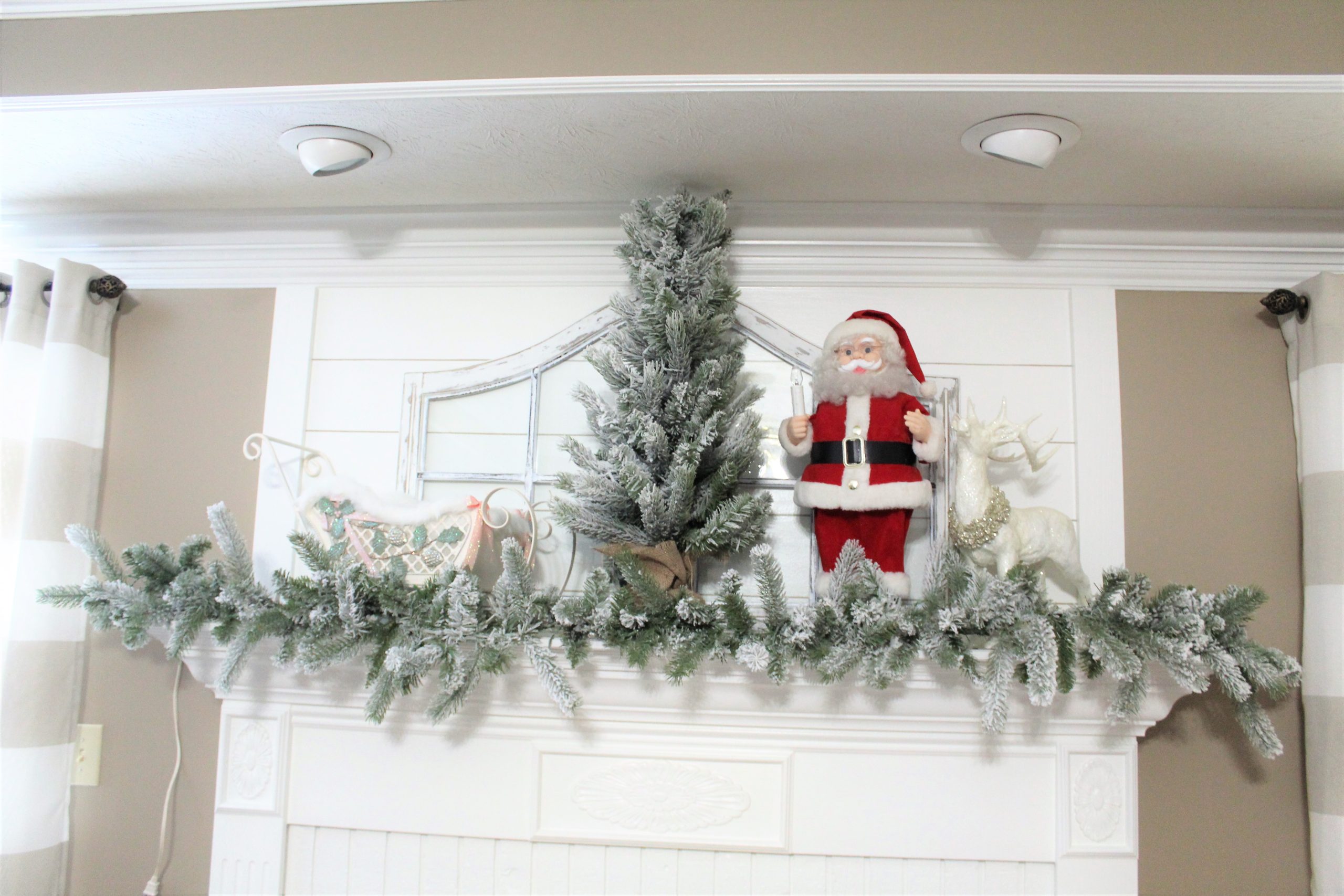 I placed one of my King of Christmas 3 foot flock Christmas trees in the center of the mantel.