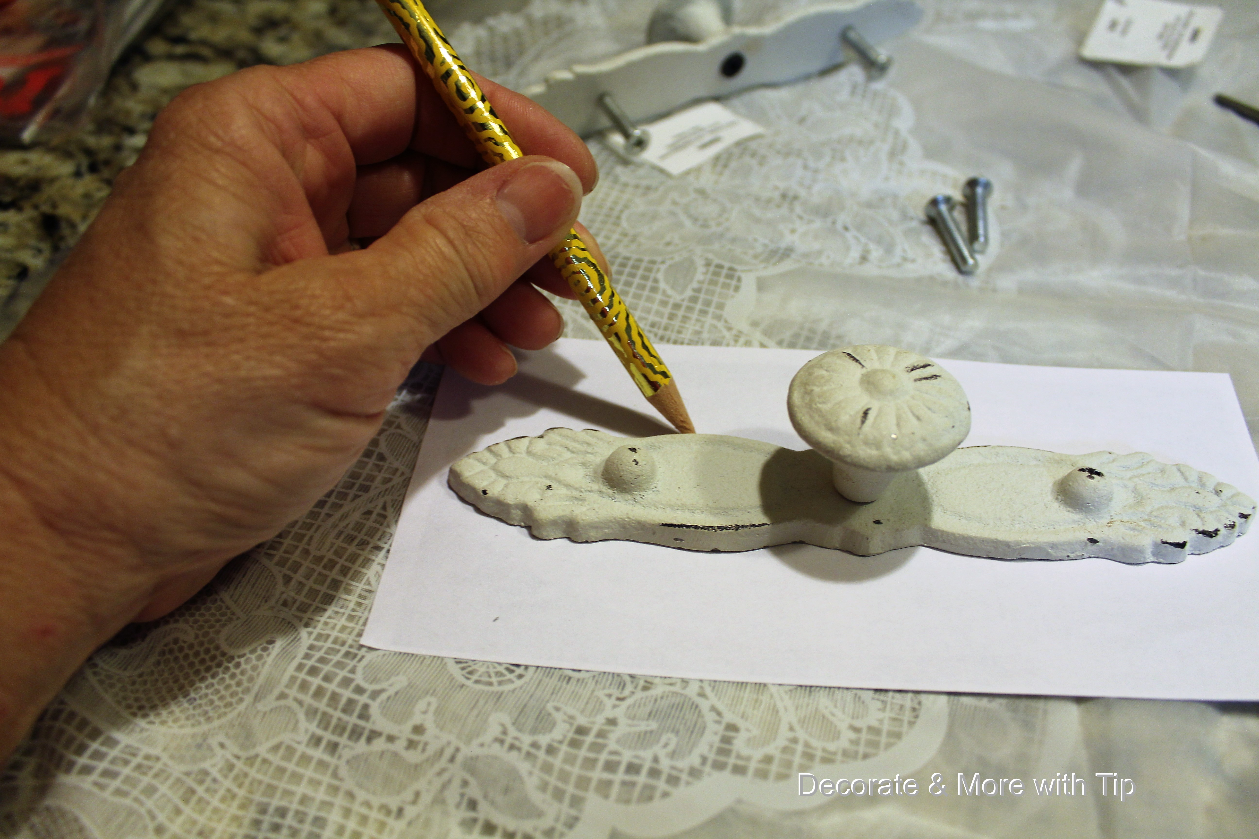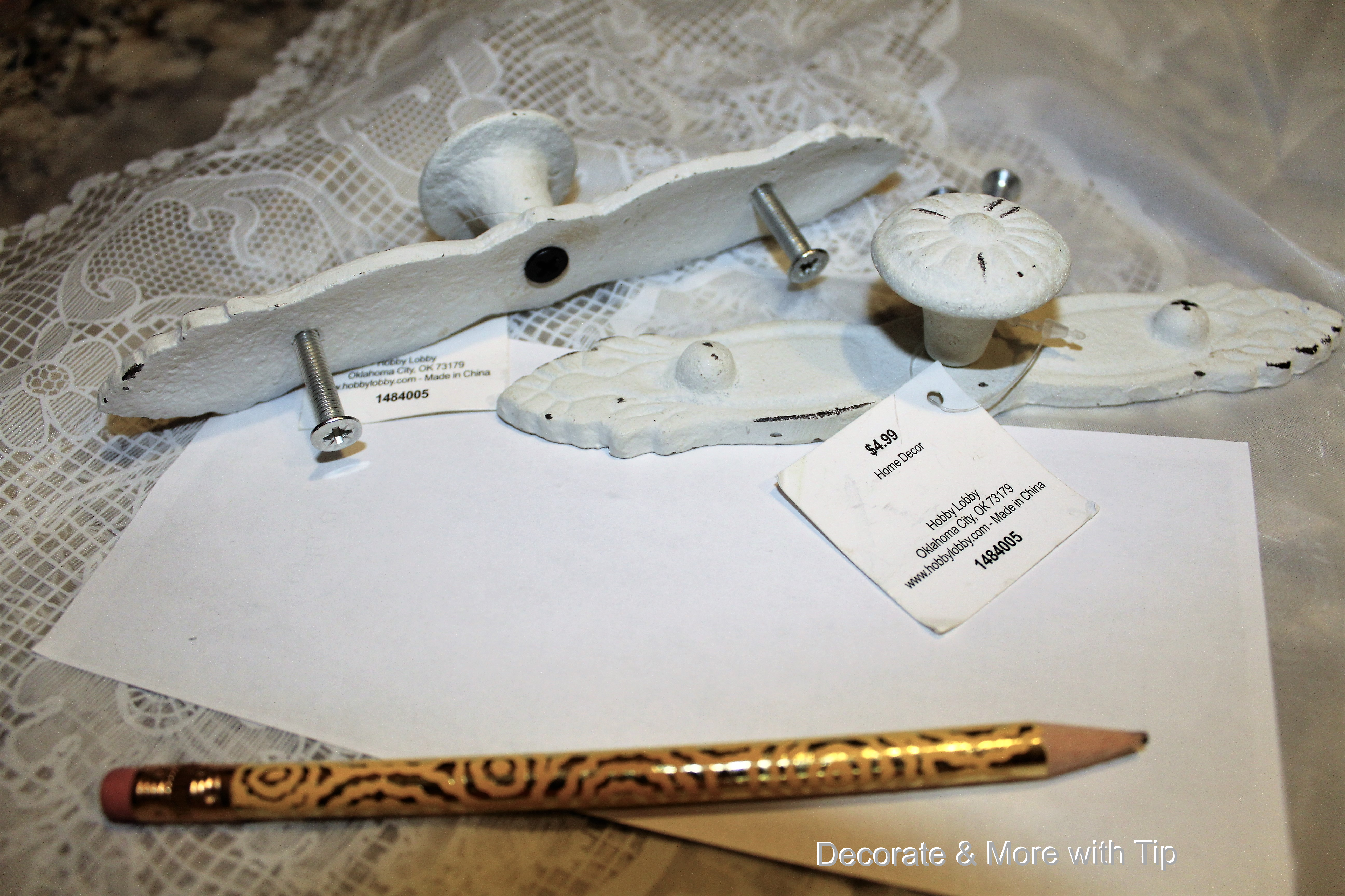 I purchased my handle pulls from Hobby Lobby at 50% off. Since I do not have a cabinet mounting template I will be sharing a DIY template.