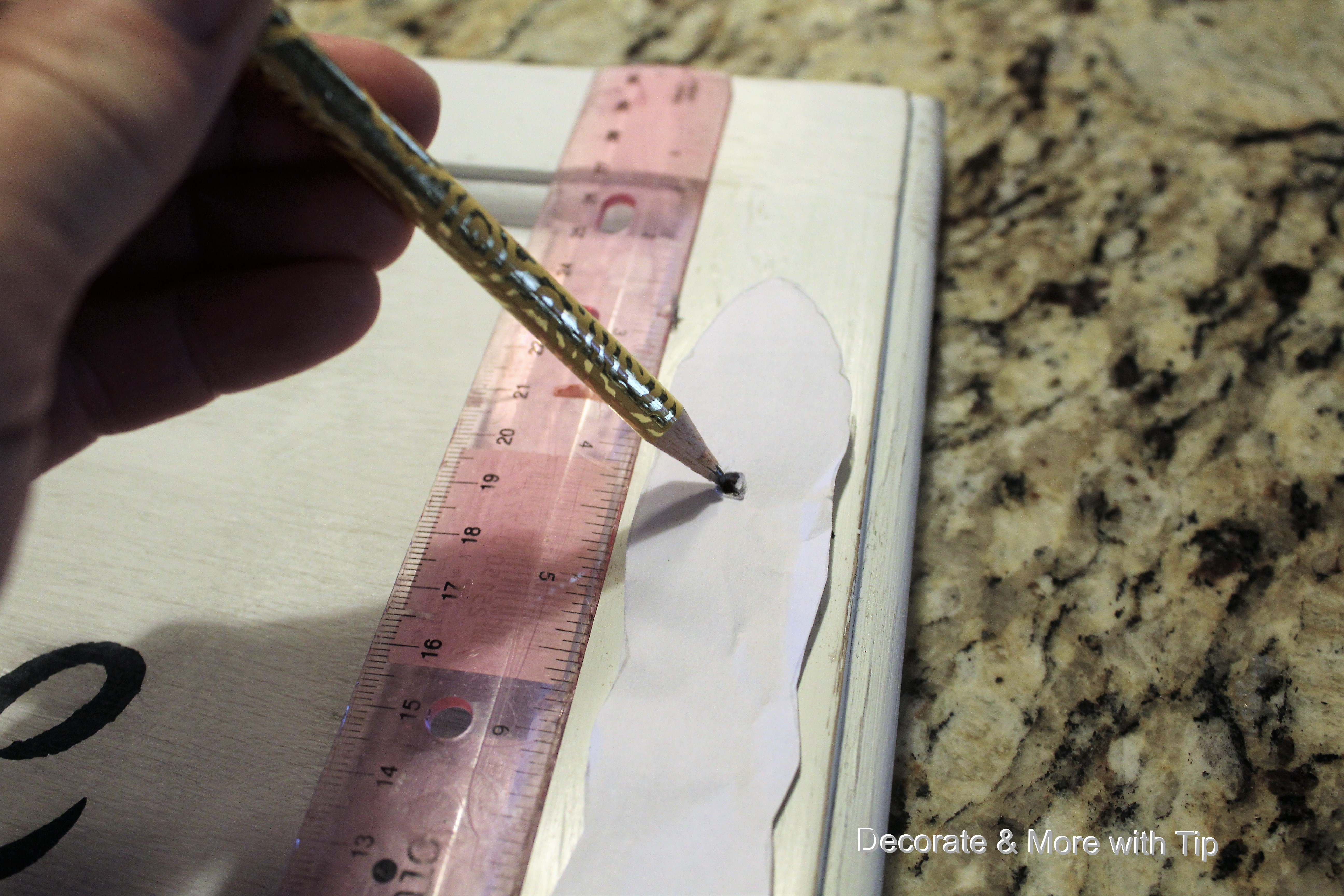 I used my ruler and template centering to each side of my cabinet. Marked where to drill and drill the holes.
