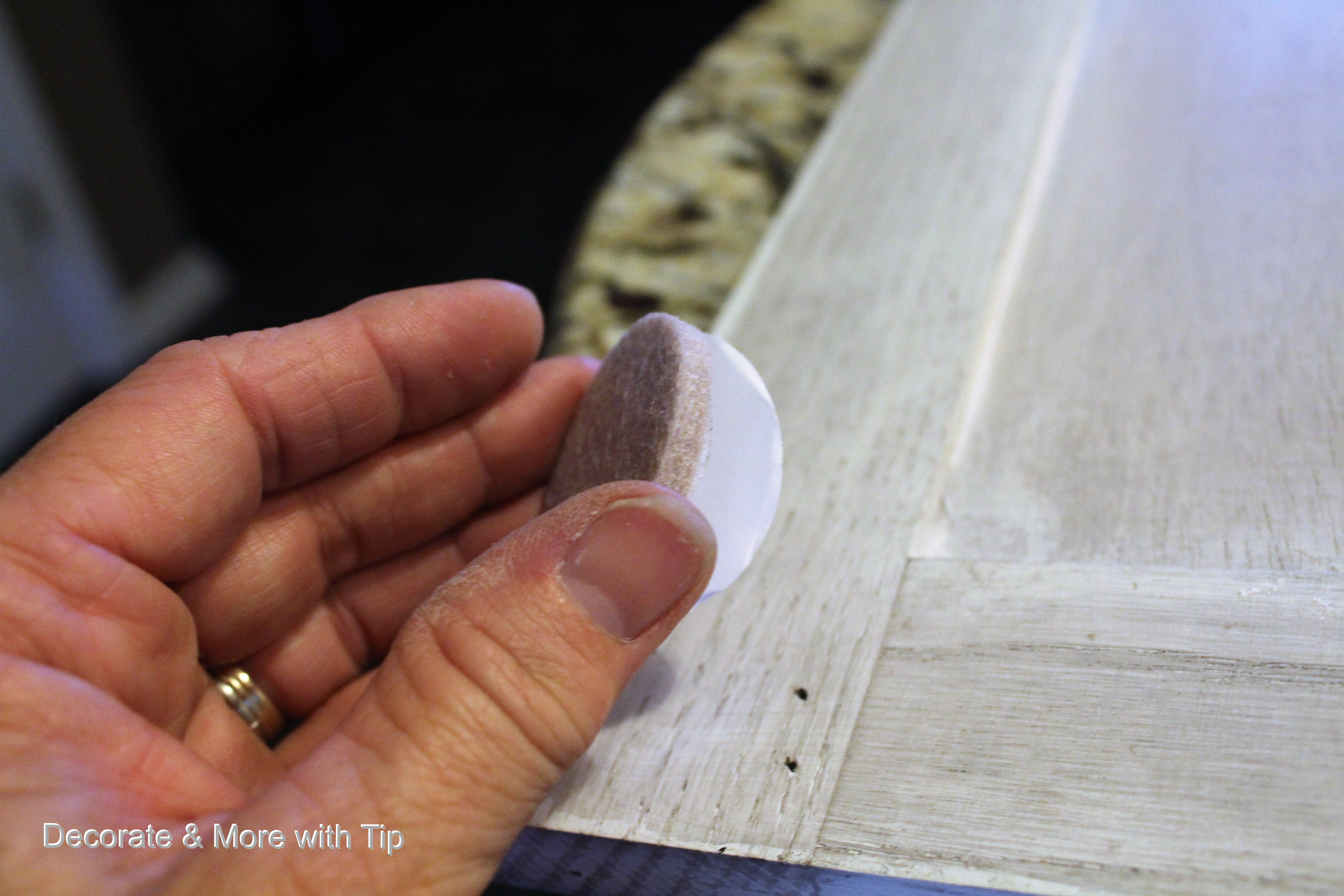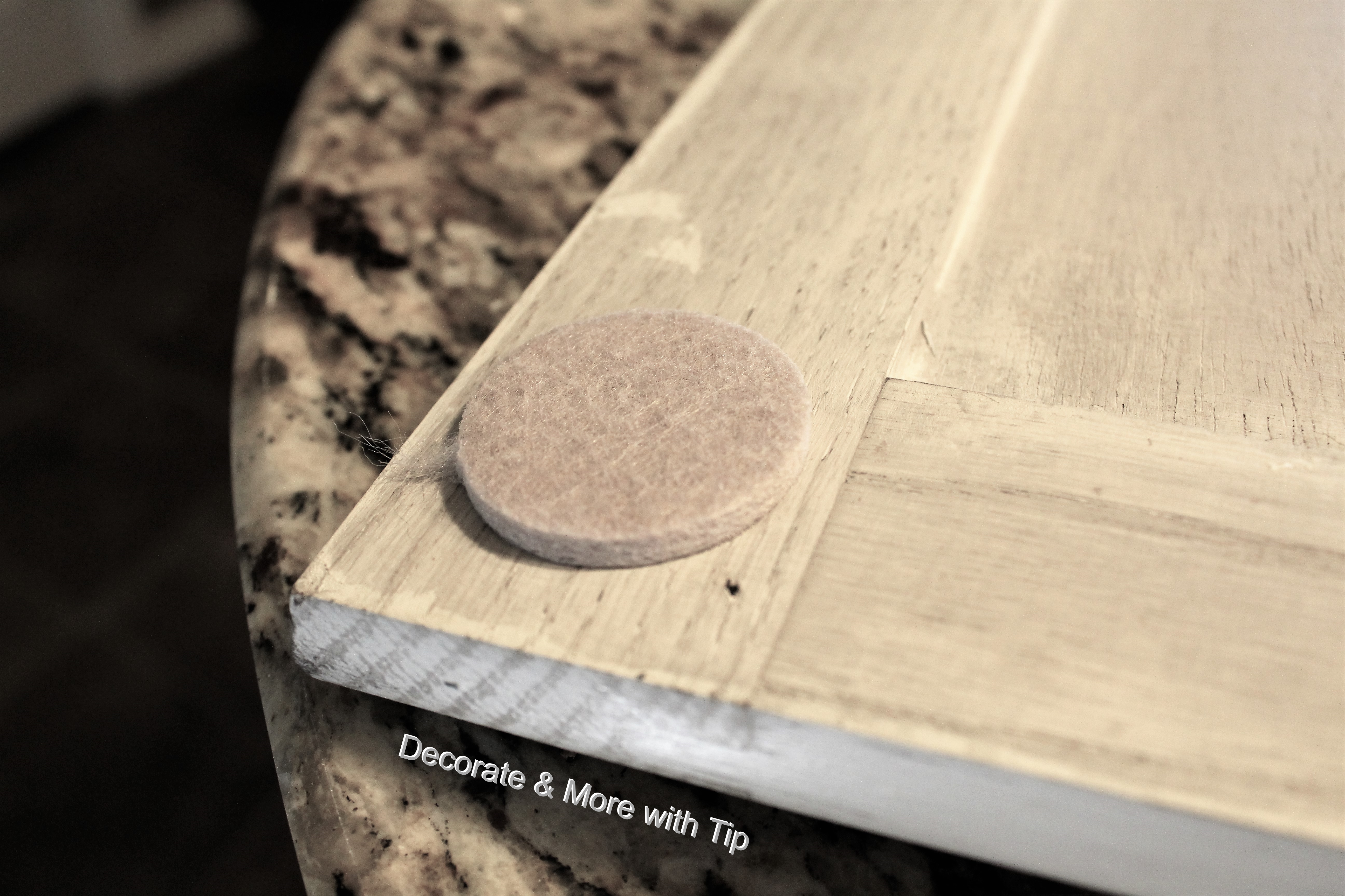 Any time I have a piece that I will be laying on furniture or my counter tops I like to add self-stick felt pads to the bottom. I applied one to each corner.