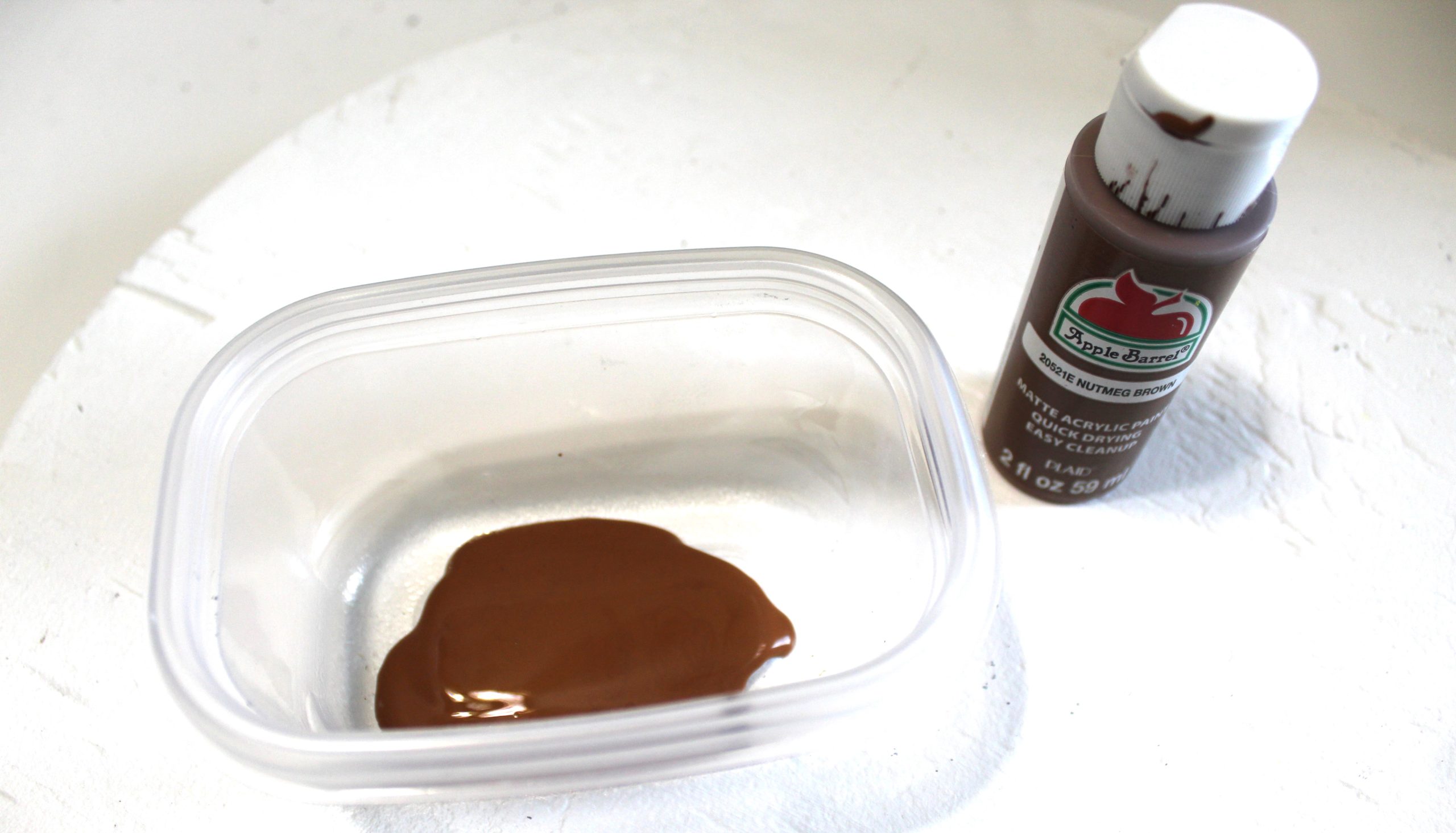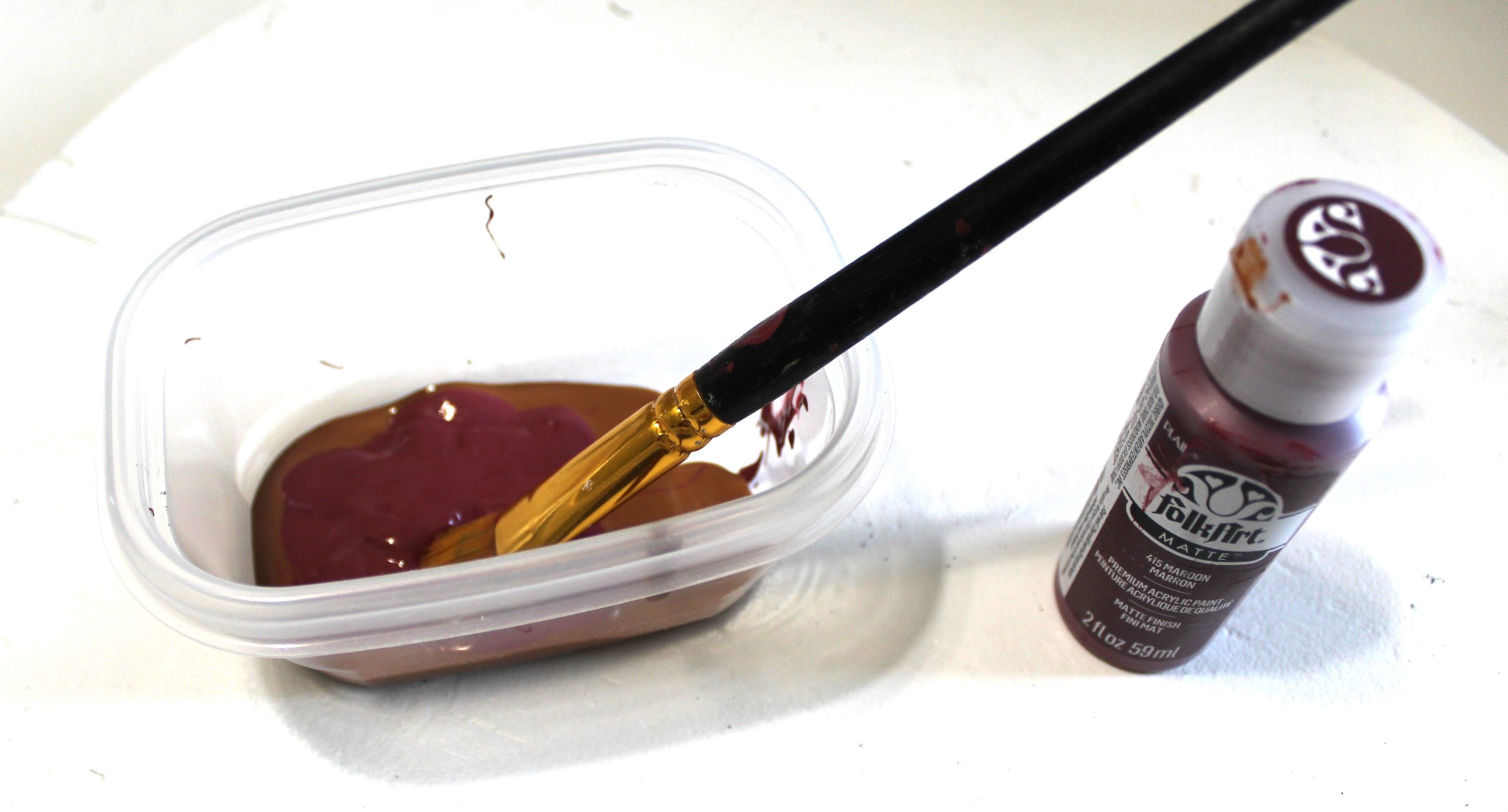 I mixed two matt finished craft paints together to create the color I wanted.  Folkart Maroon Maroon and Apple Barrel Nutmeg Brown.