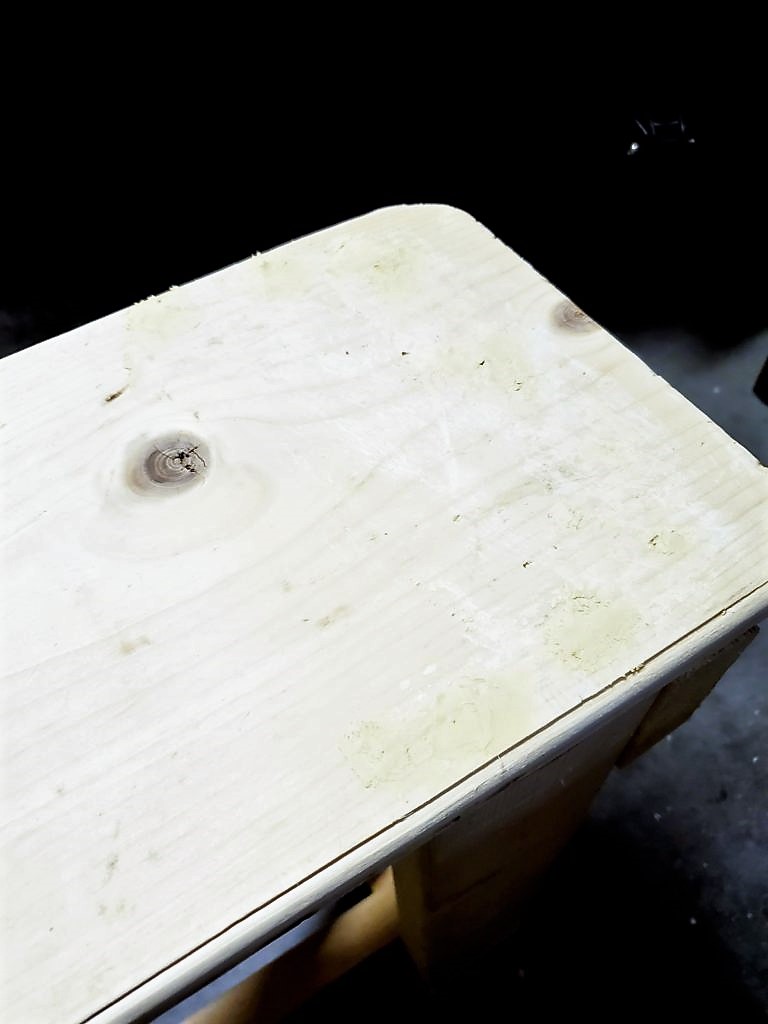 It’s starting to take shape. 🙂 The screws on the bench seat were raised above the surface so I had Mr. Tip screw them down into the wood.