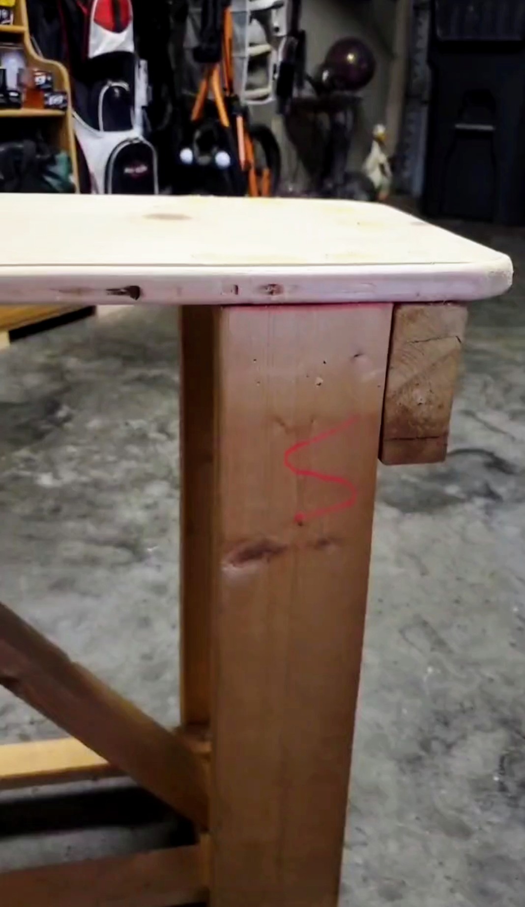 I didn’t like the extended base because it made the bench stick out from the wall too much. I took a circular saw and cut them evenly off on all four sides.