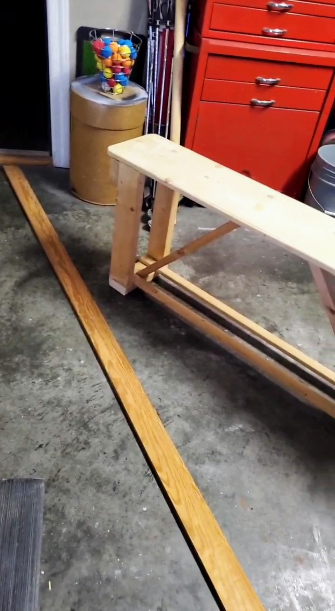 I didn’t like the unfinished front underneath the seat so I took a piece of baseboard we had in the shed and cut it to size and nailed it to the front and back of my bench.