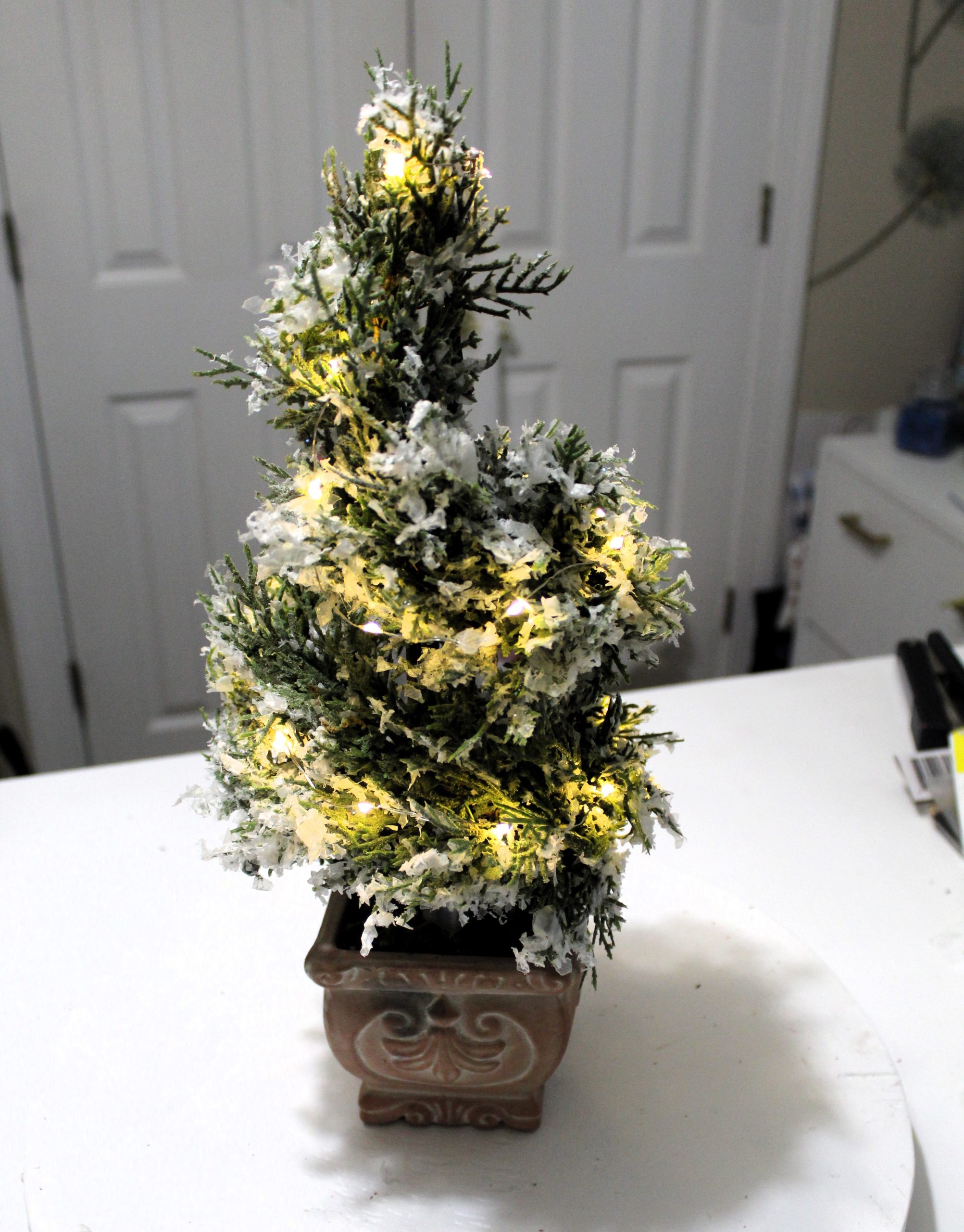 You just never know what you will find when in Goodwill. I was excited when I spotted this spiral potted evergreen topiary sitting on the shelf. I also found out it was senior citizen day, I received a discount on my entire purchase.